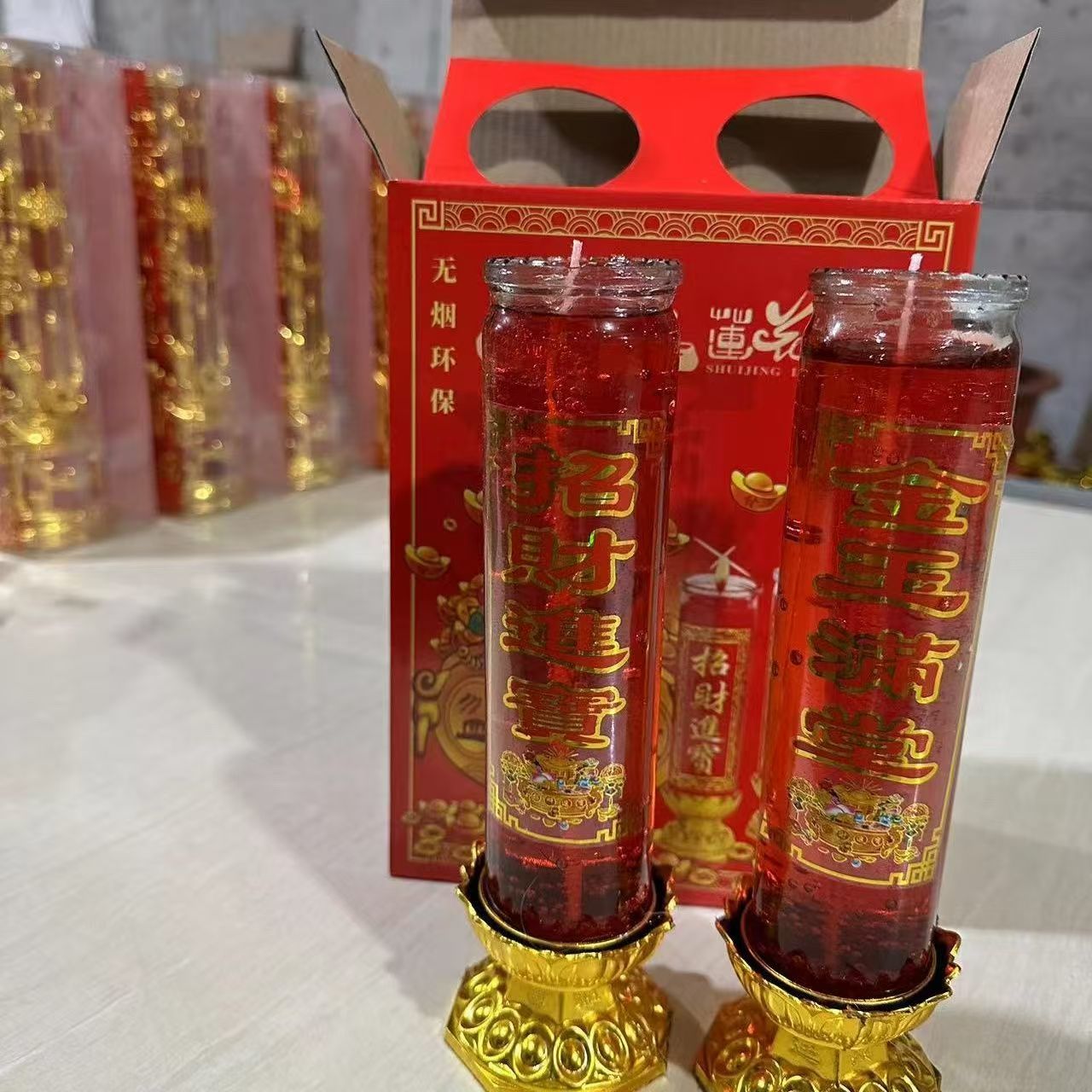 无烟蜡烛带铁质底座蜡烛圆柱中秋家用蜡烛春节乔迁结婚防风斗烛