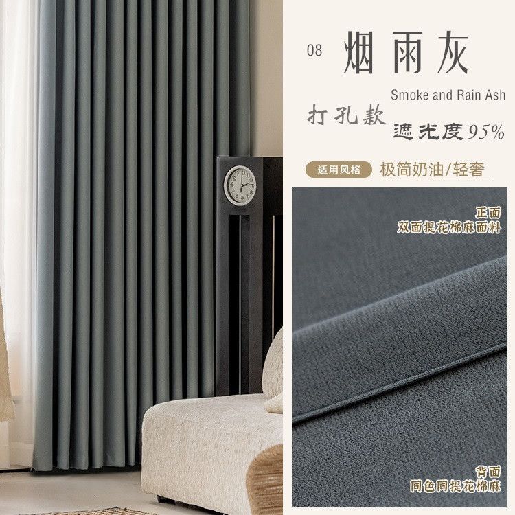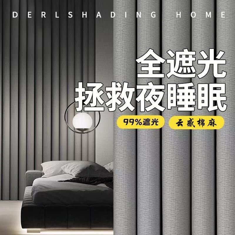 加厚款新款轻奢现代简约棉麻全遮光窗帘卧室客厅卧室阳台遮阳挂钩