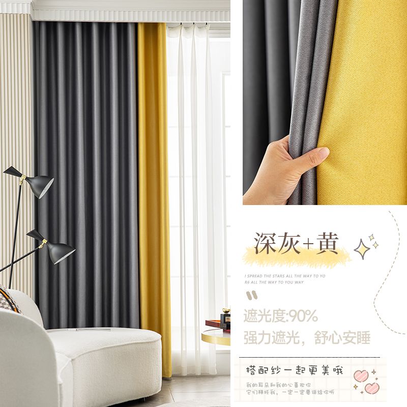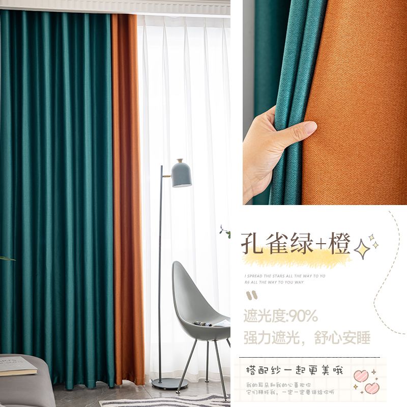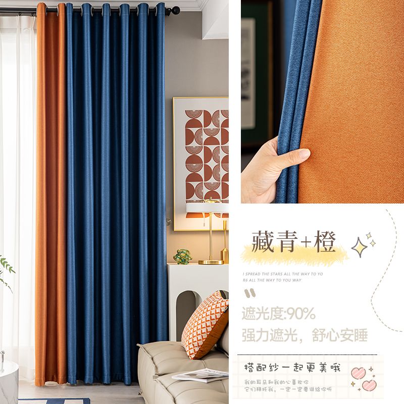 2024新款窗帘加厚阳台客厅卧室遮阳飘窗遮光隔热防晒简约拼色窗帘