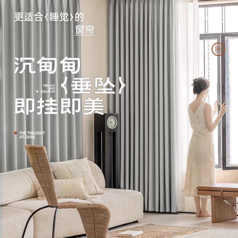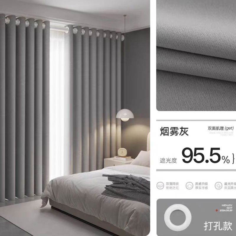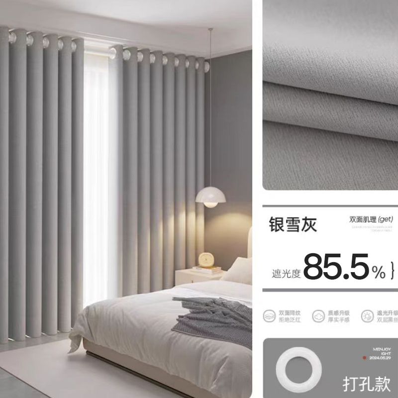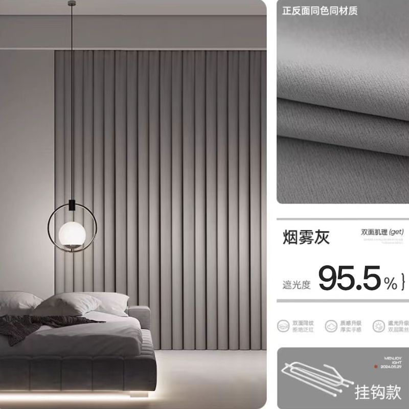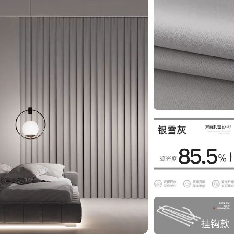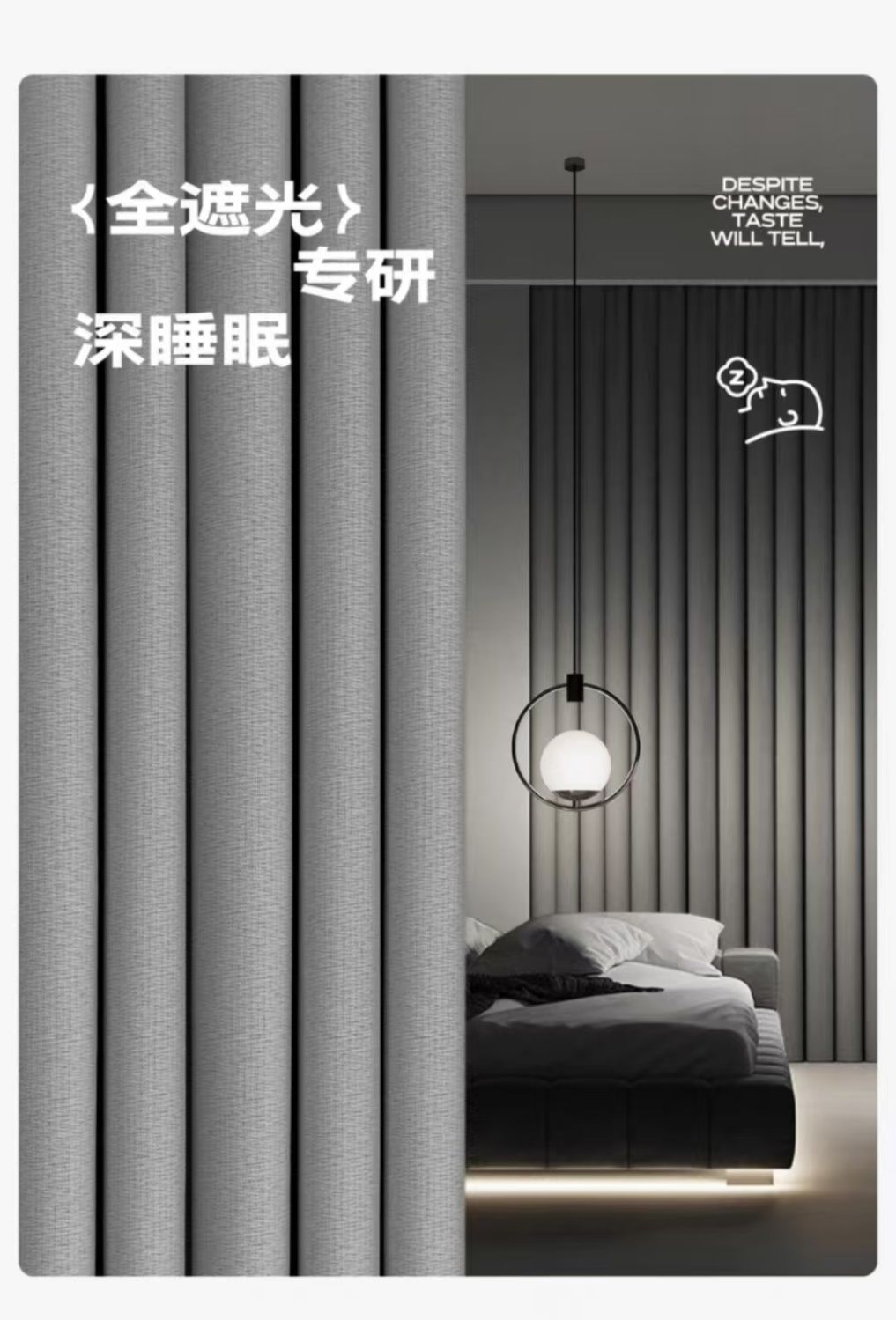 2024新款轻奢现代简约加厚灰色遮光窗帘卧室隔热客厅卧室阳台遮阳