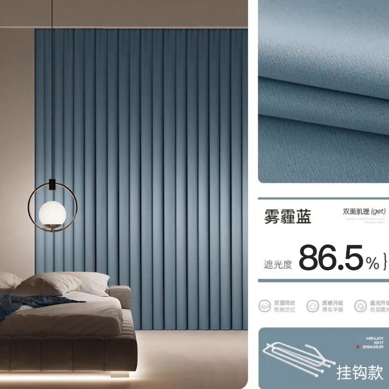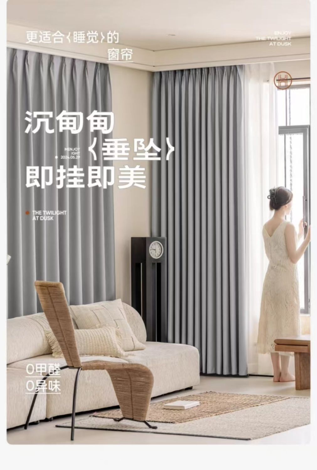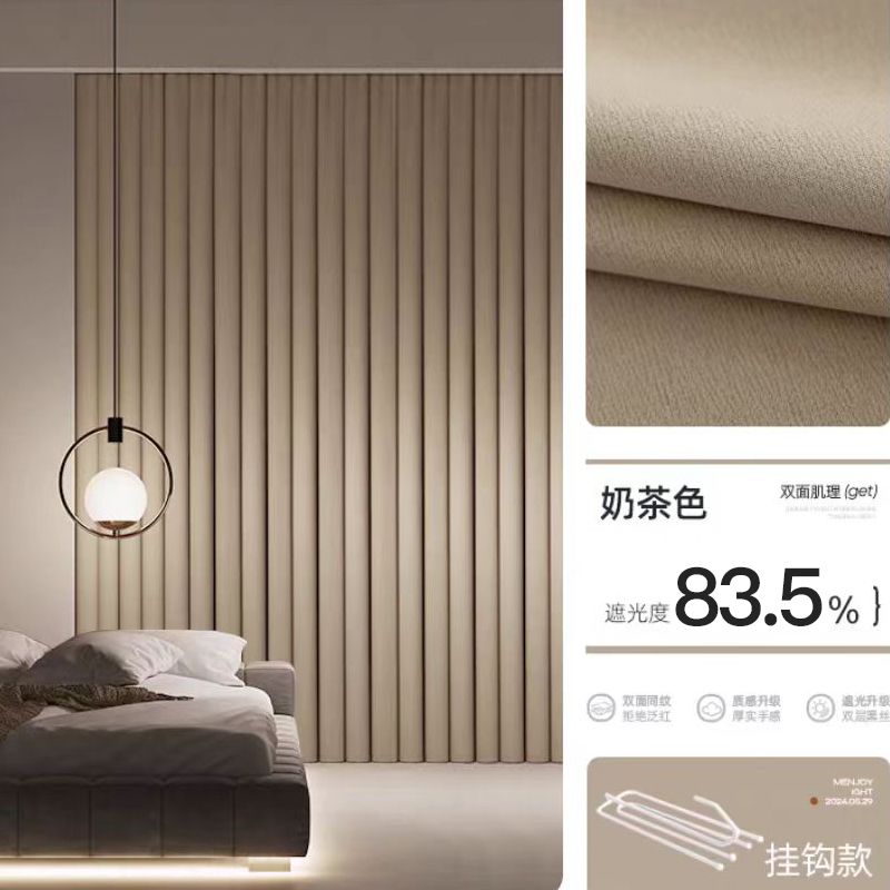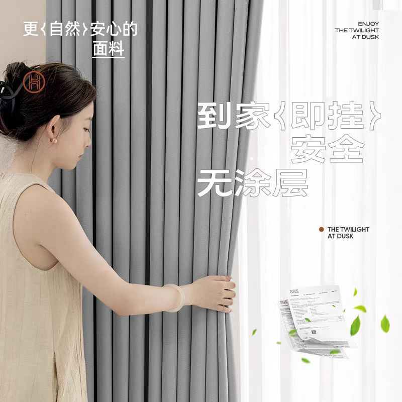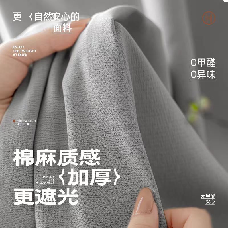 2024新款轻奢现代简约加厚灰色遮光窗帘卧室隔热客厅卧室阳台遮阳
