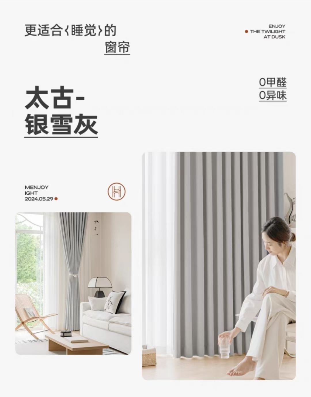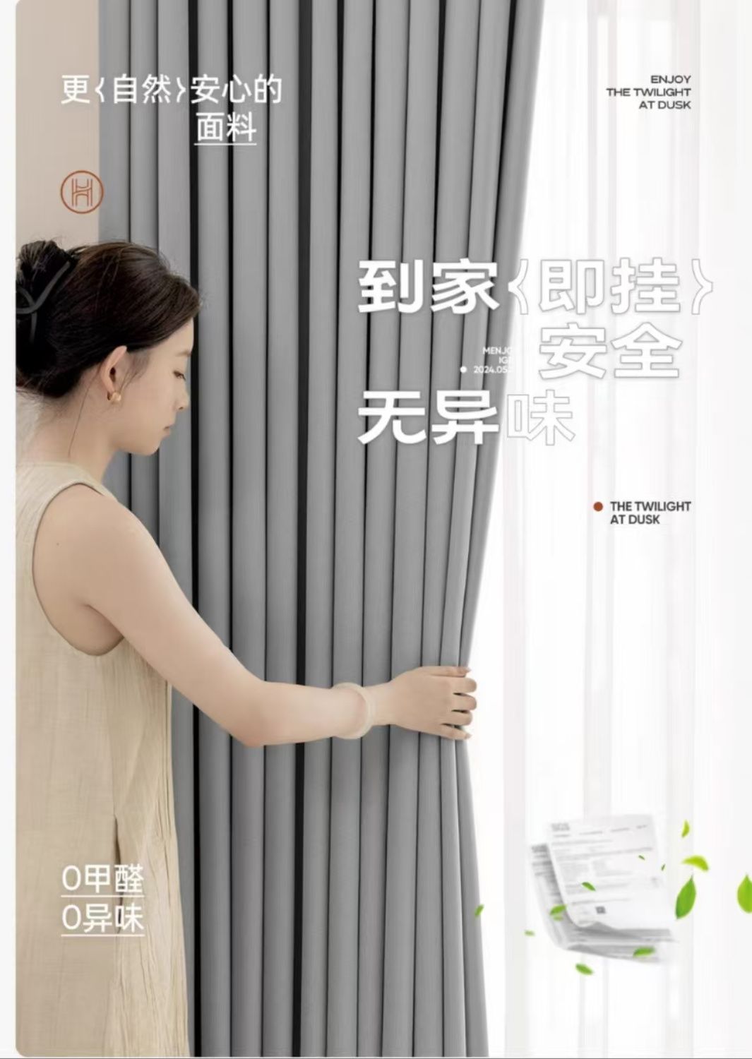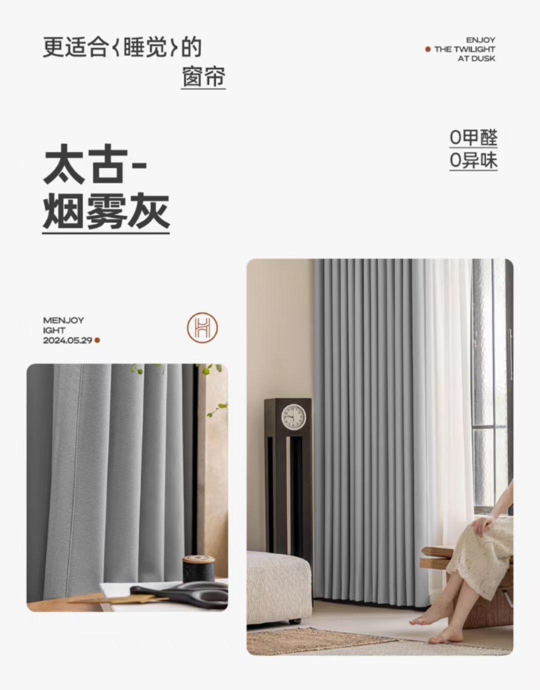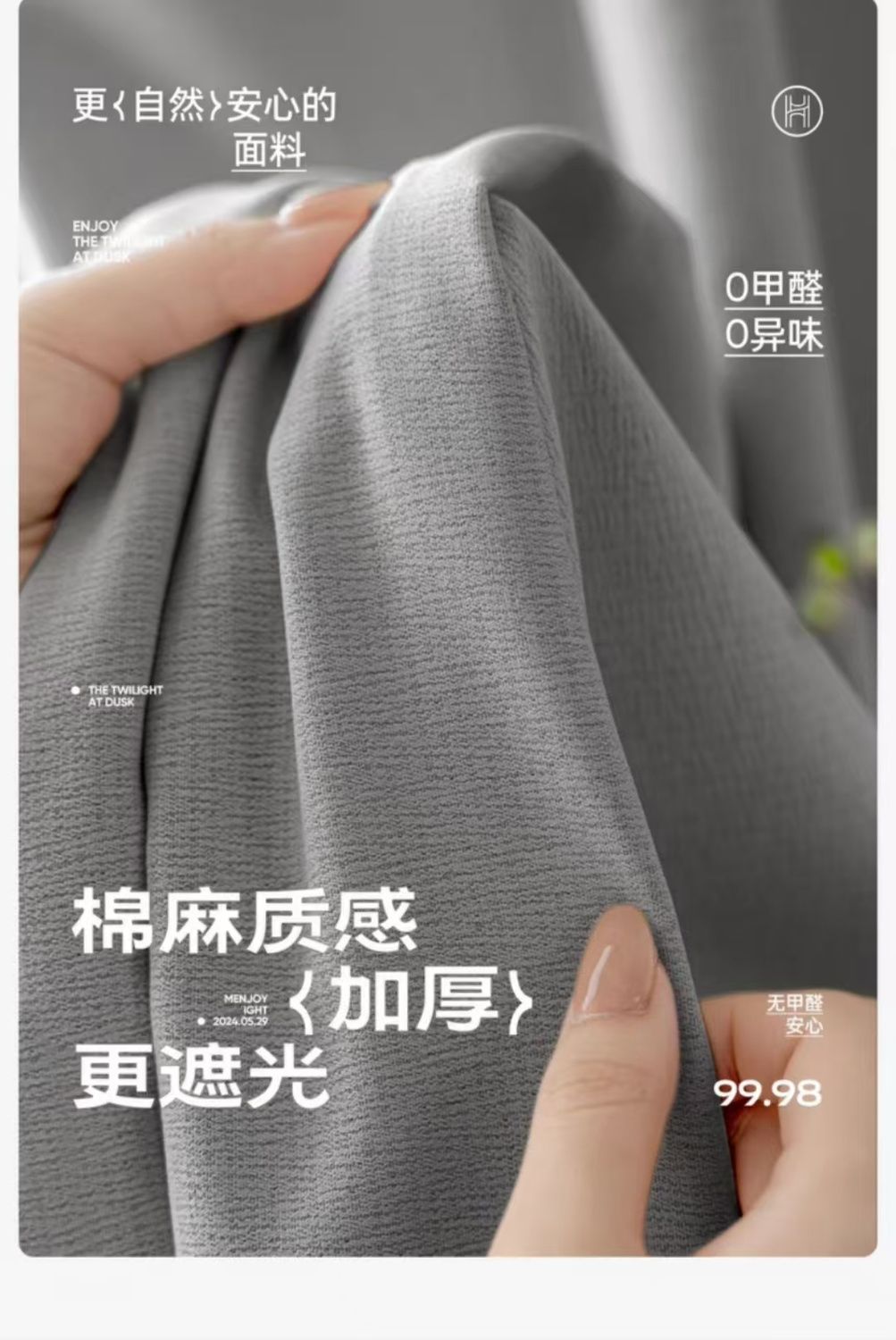 2024新款轻奢现代简约加厚灰色遮光窗帘卧室隔热客厅卧室阳台遮阳