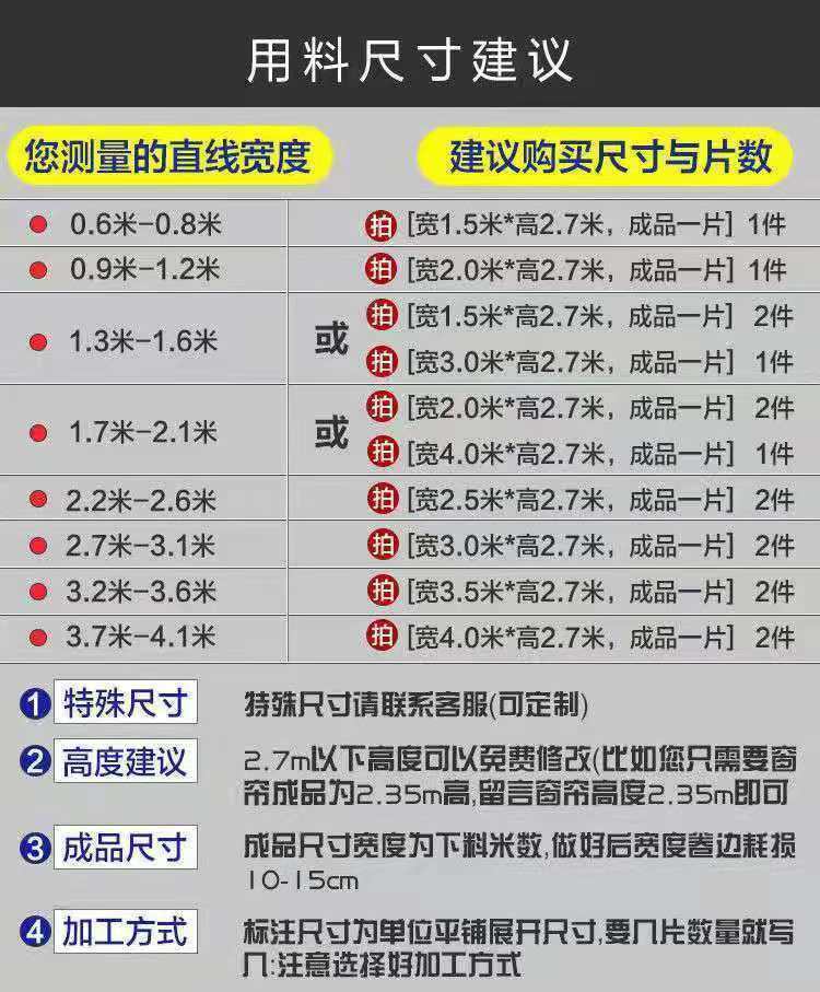 | 3.01 m single open [applicable width 1.3 m-1.7 m] 2.71 m high(3.01米单开【适用宽度1.3米-1.7米】高2.71米) | USD $16.83 | 999999 piece available |
