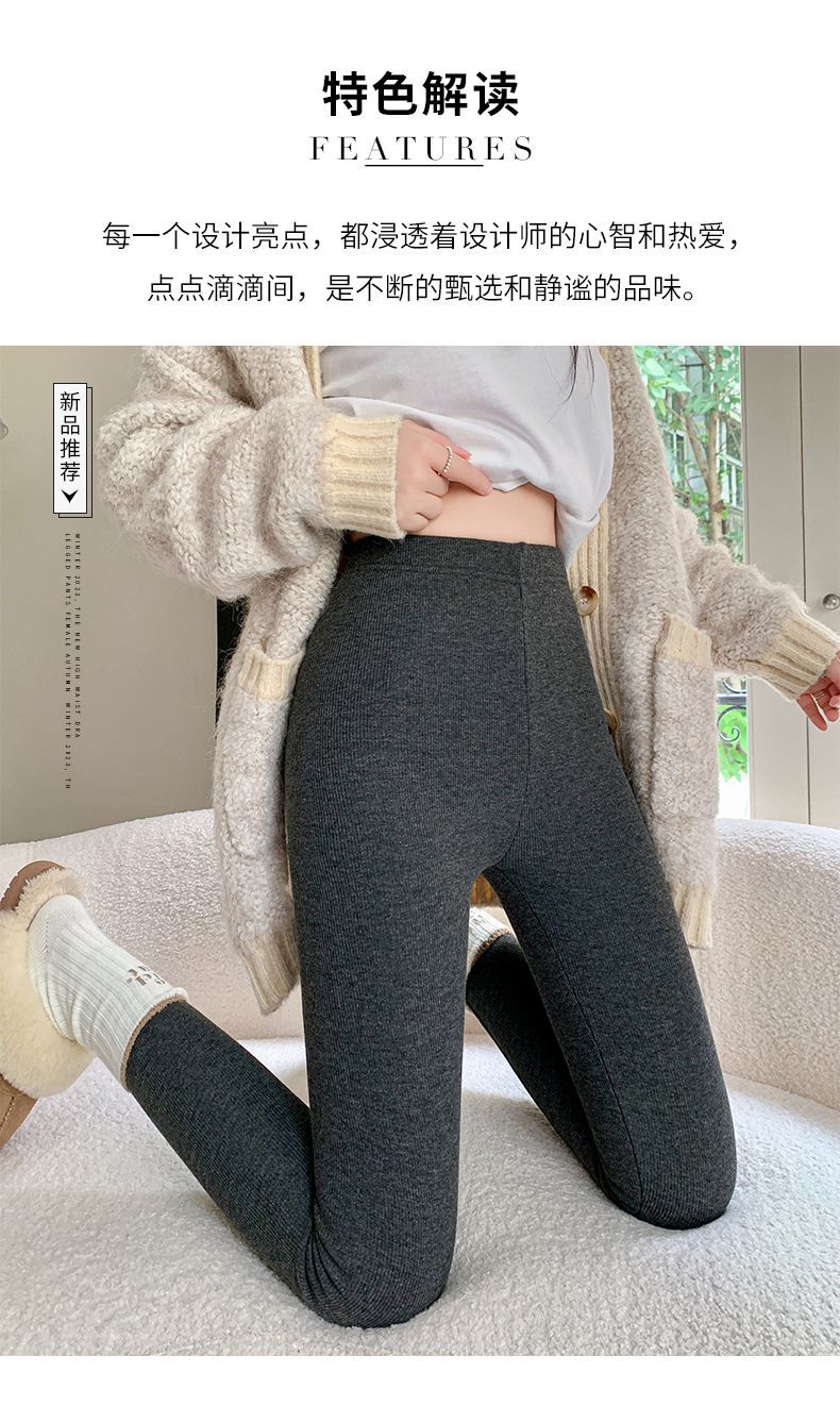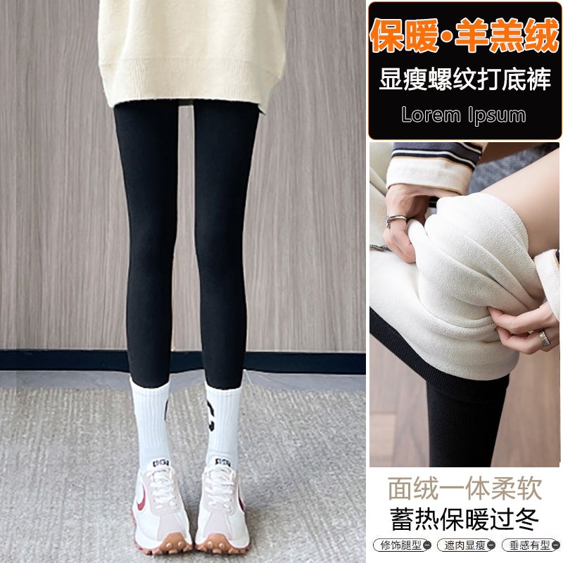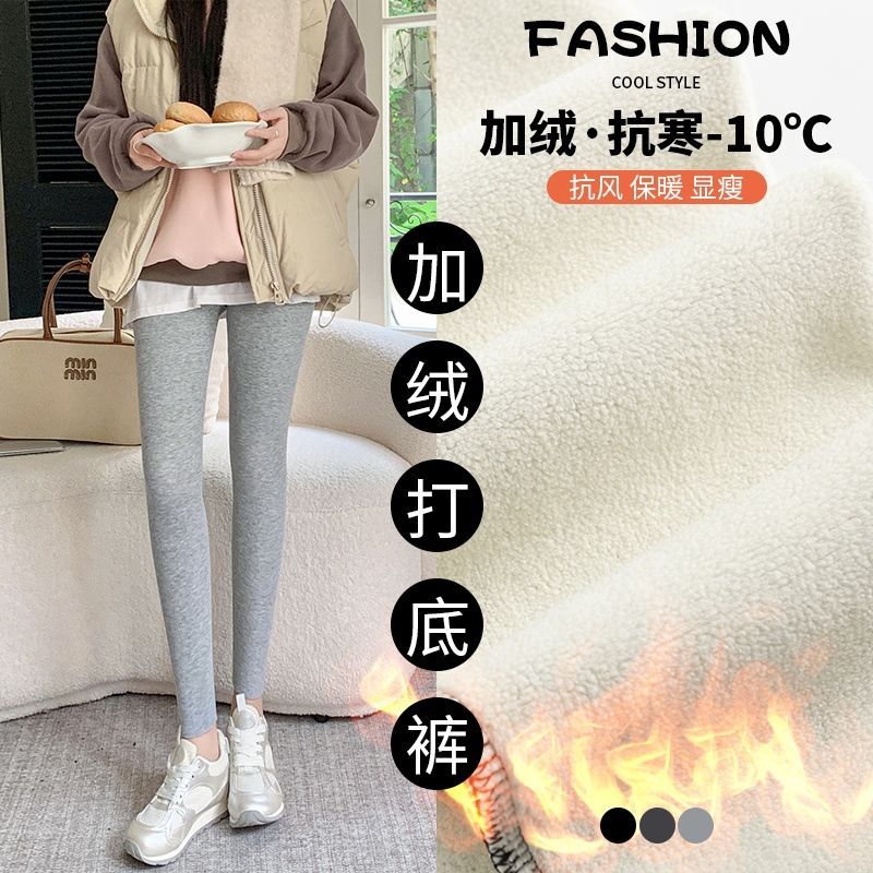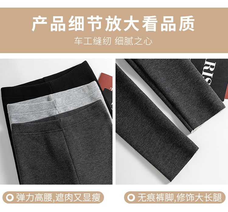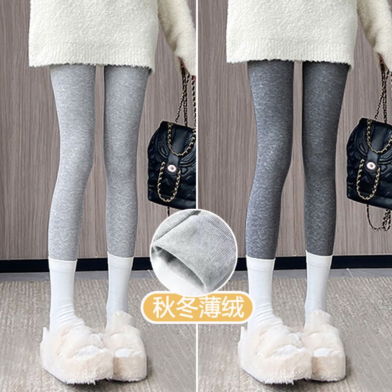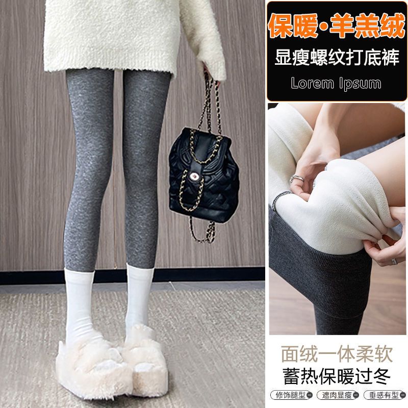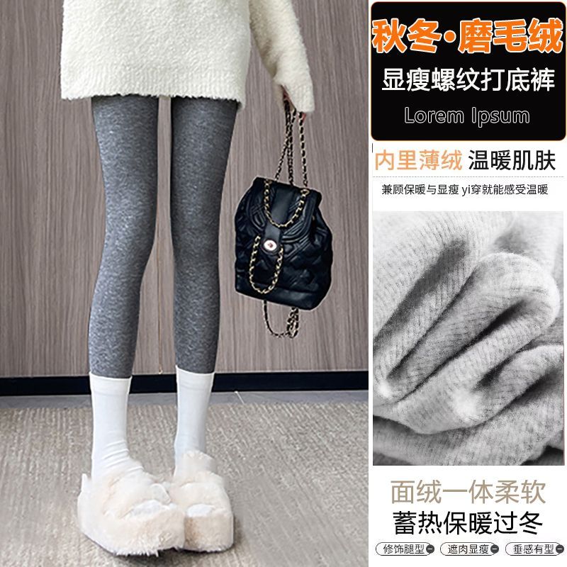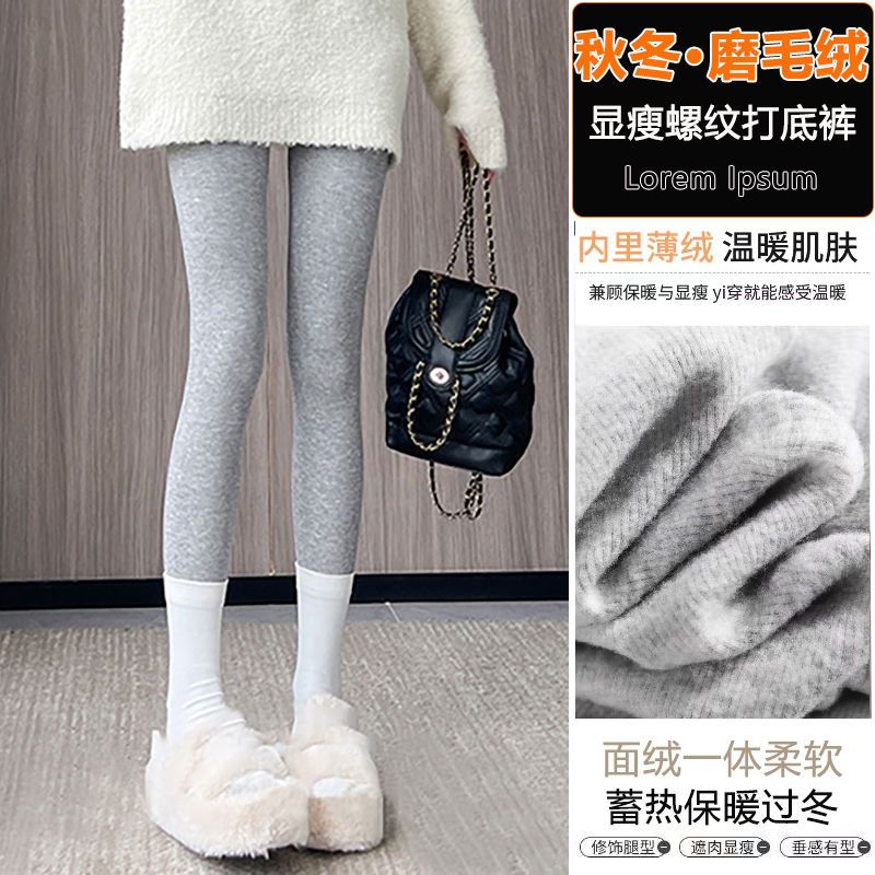 灰色螺纹打底裤女外穿秋冬加绒加厚羊羔绒保暖裤显瘦磨毛薄绒秋裤