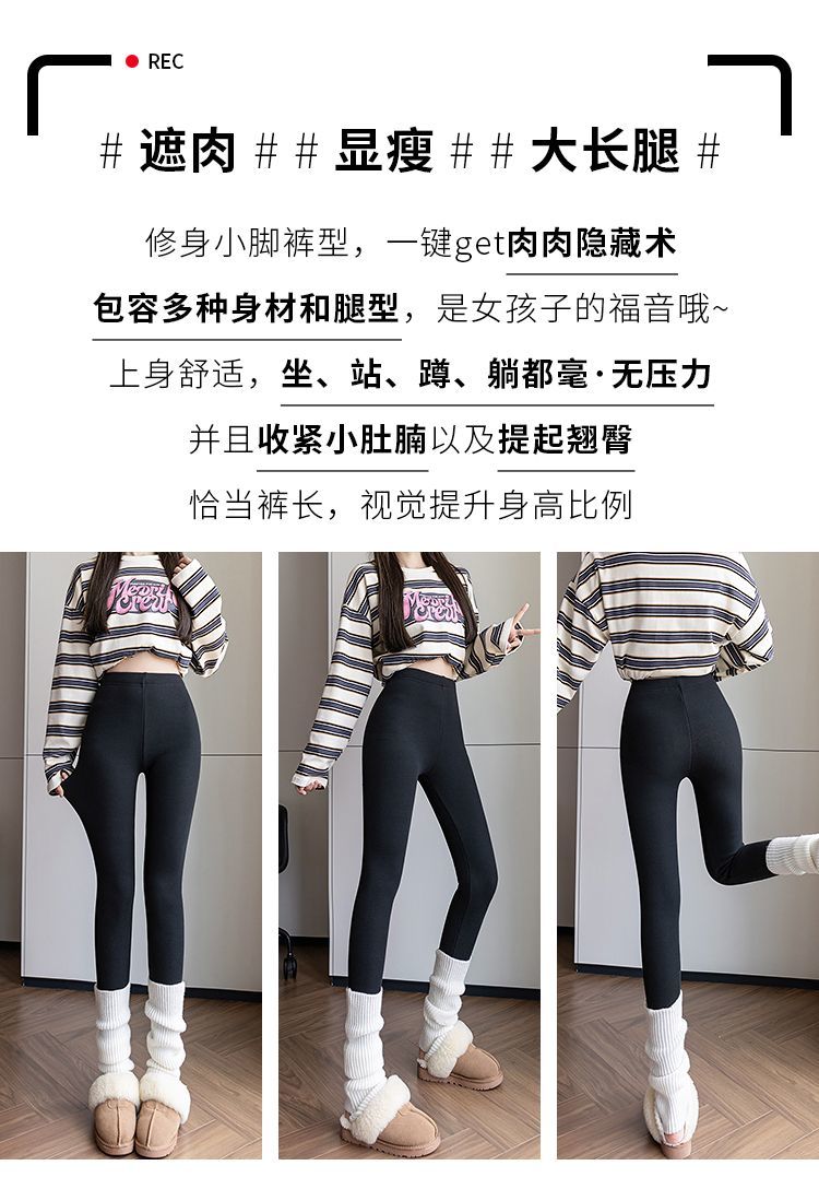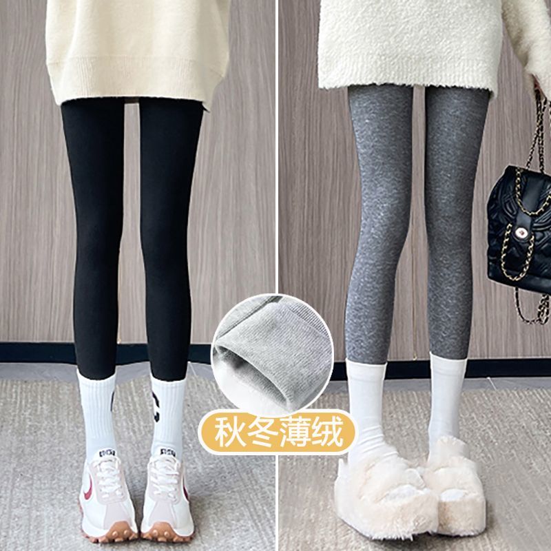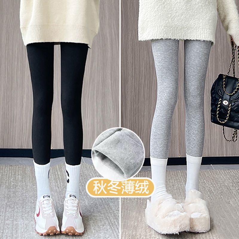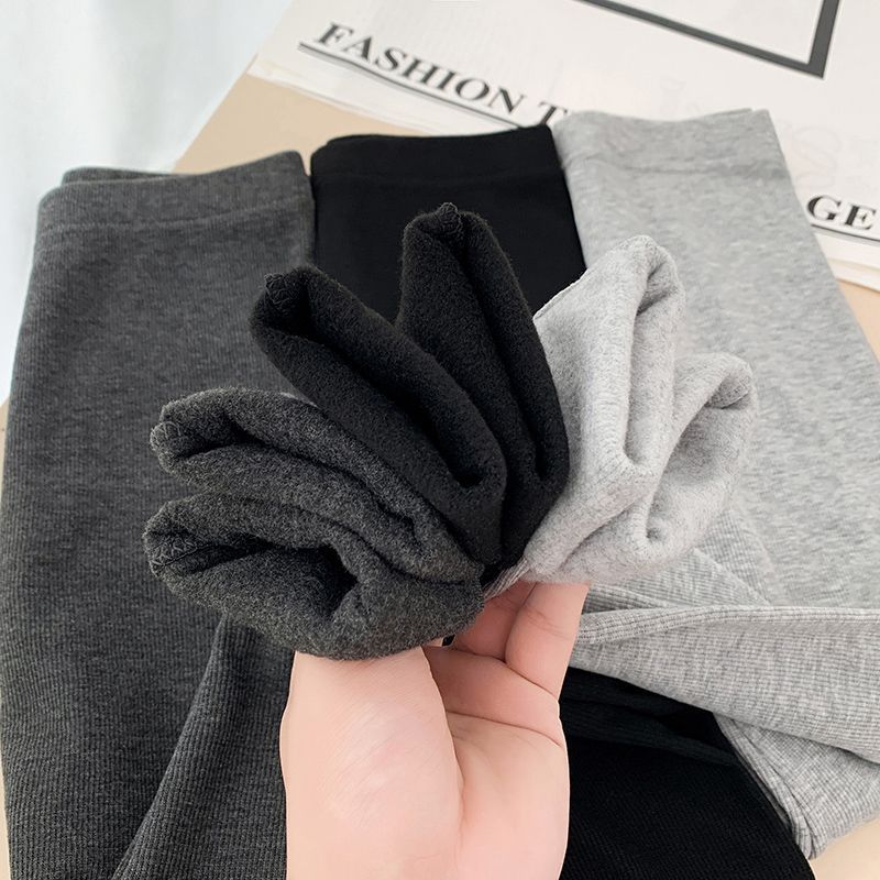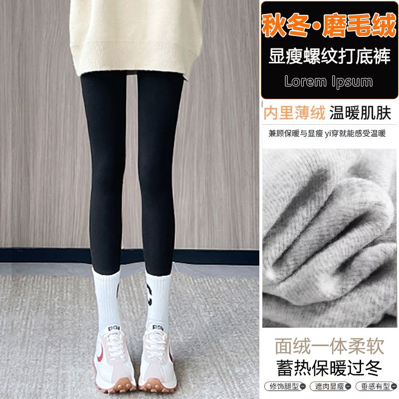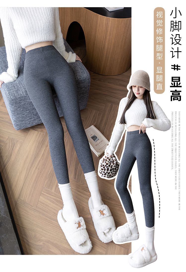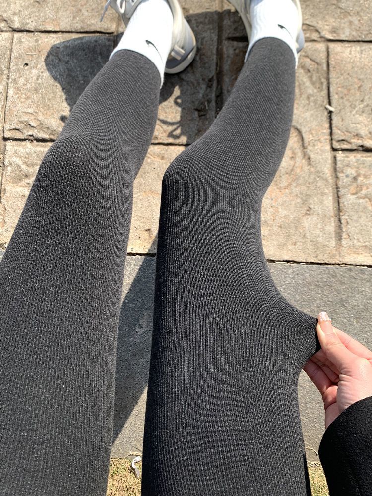 灰色螺纹打底裤女外穿秋冬加绒加厚羊羔绒保暖裤显瘦磨毛薄绒秋裤