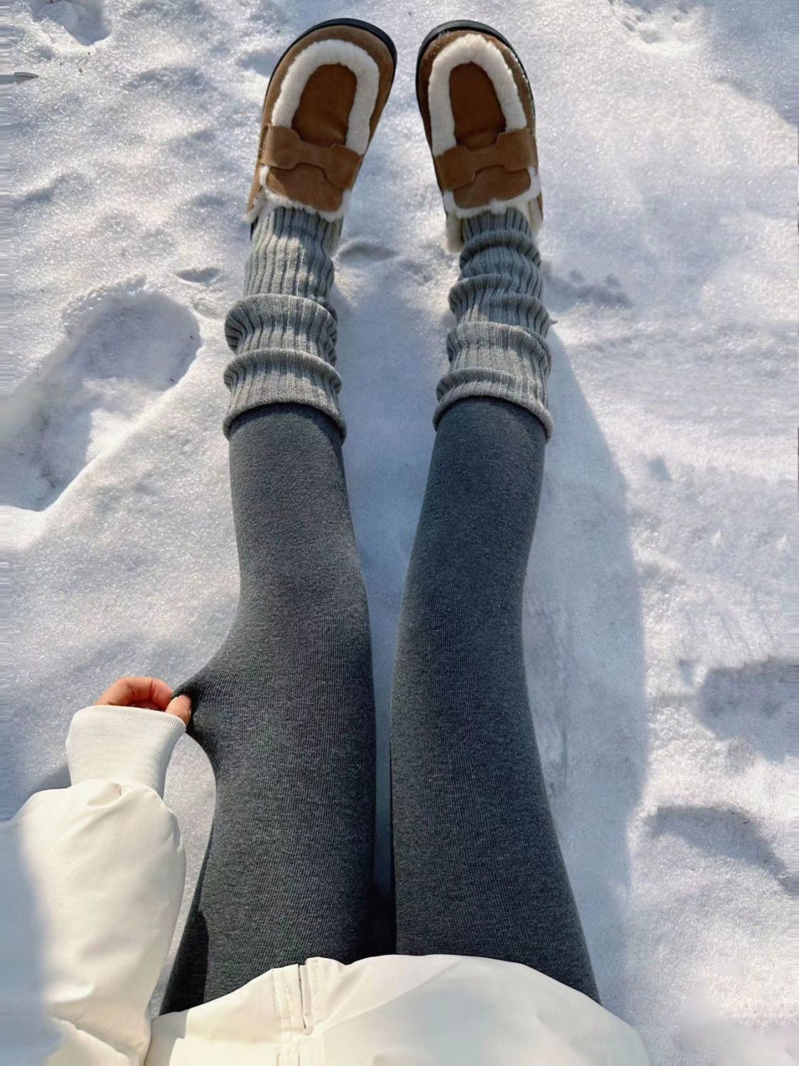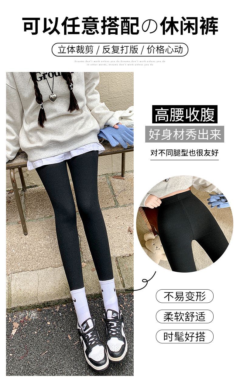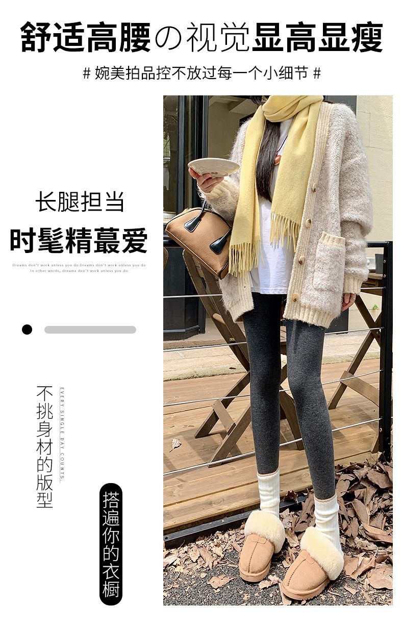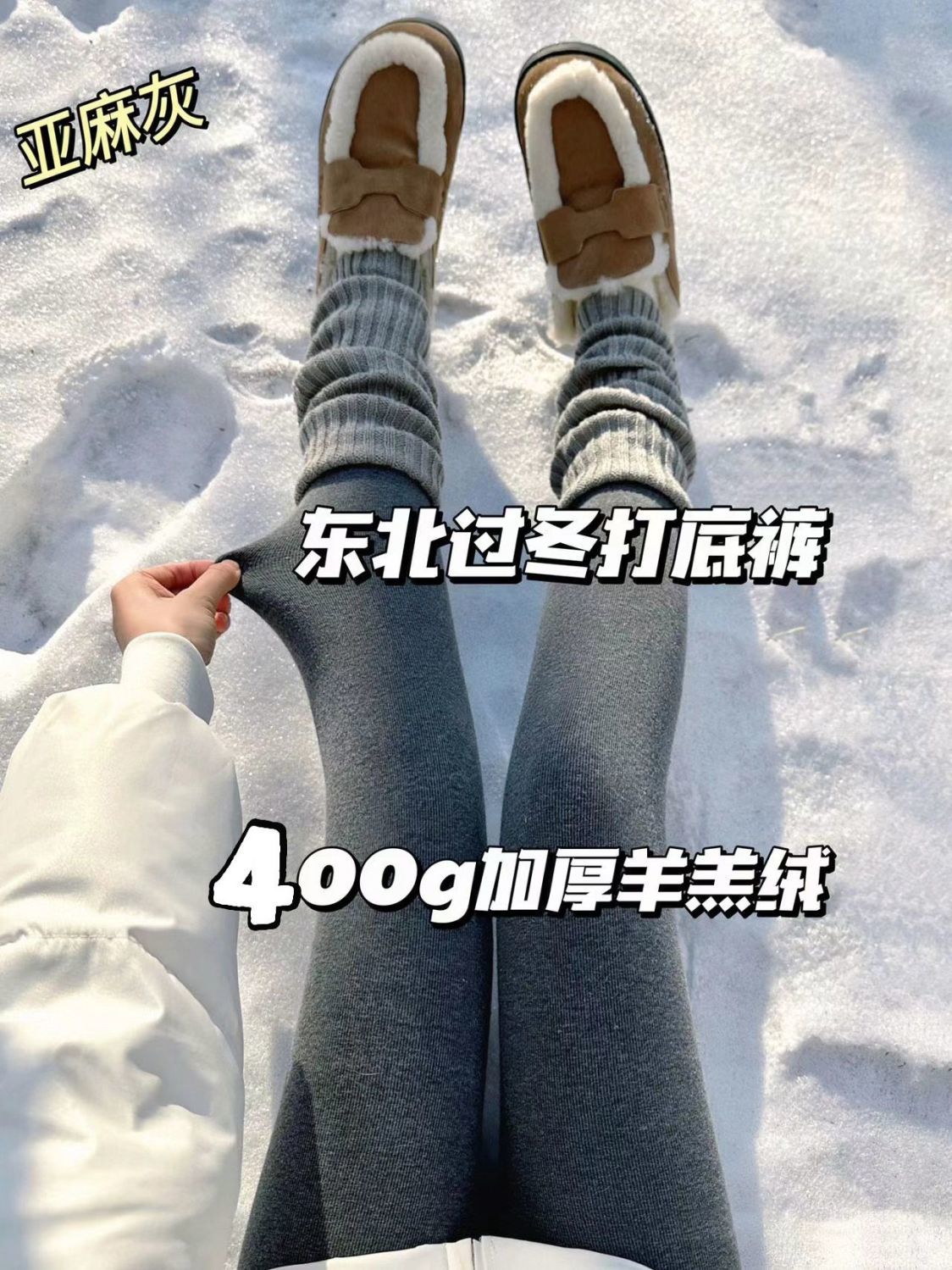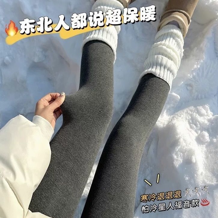 灰色螺纹打底裤女外穿秋冬加绒加厚羊羔绒保暖裤显瘦磨毛薄绒秋裤