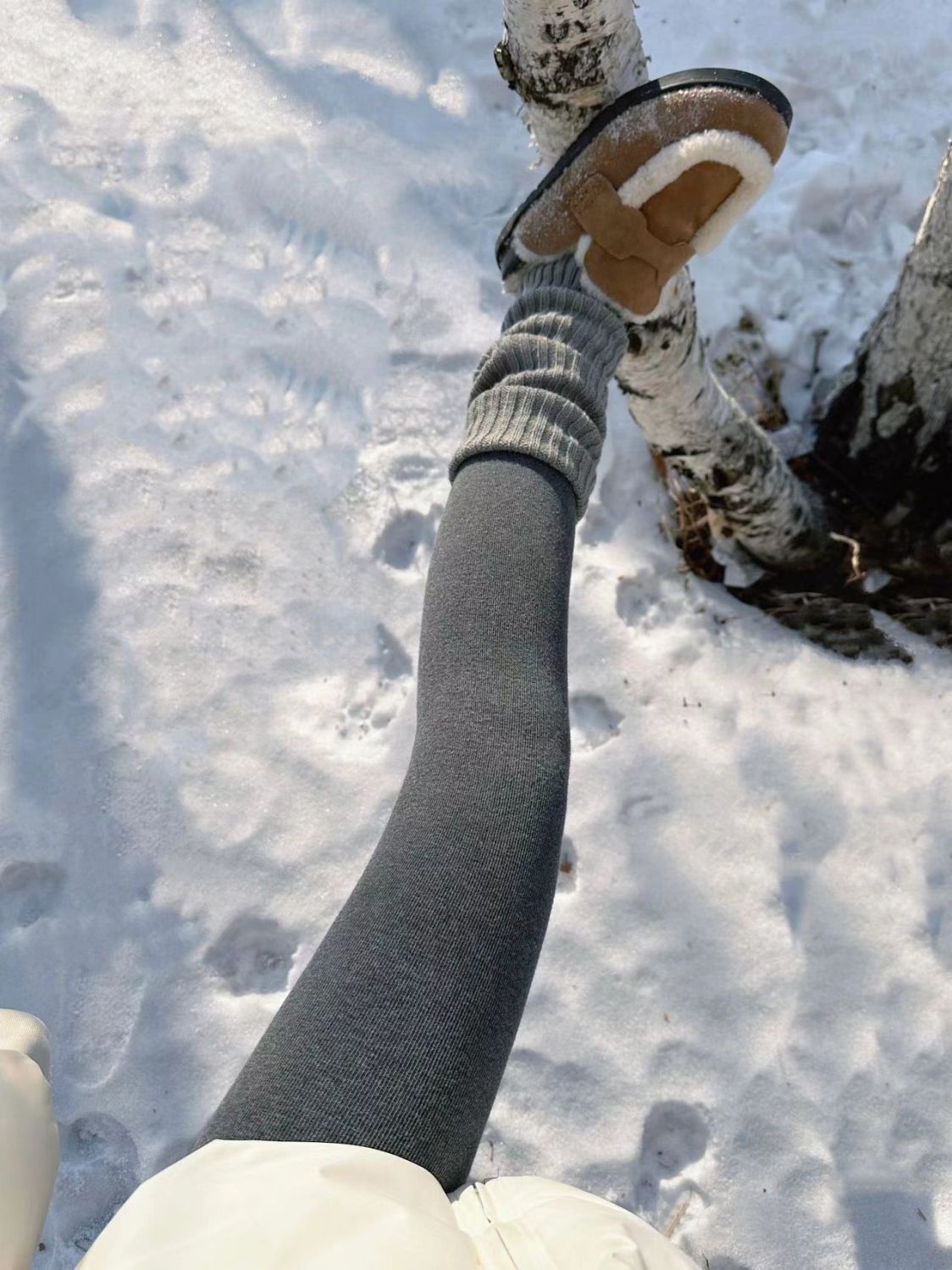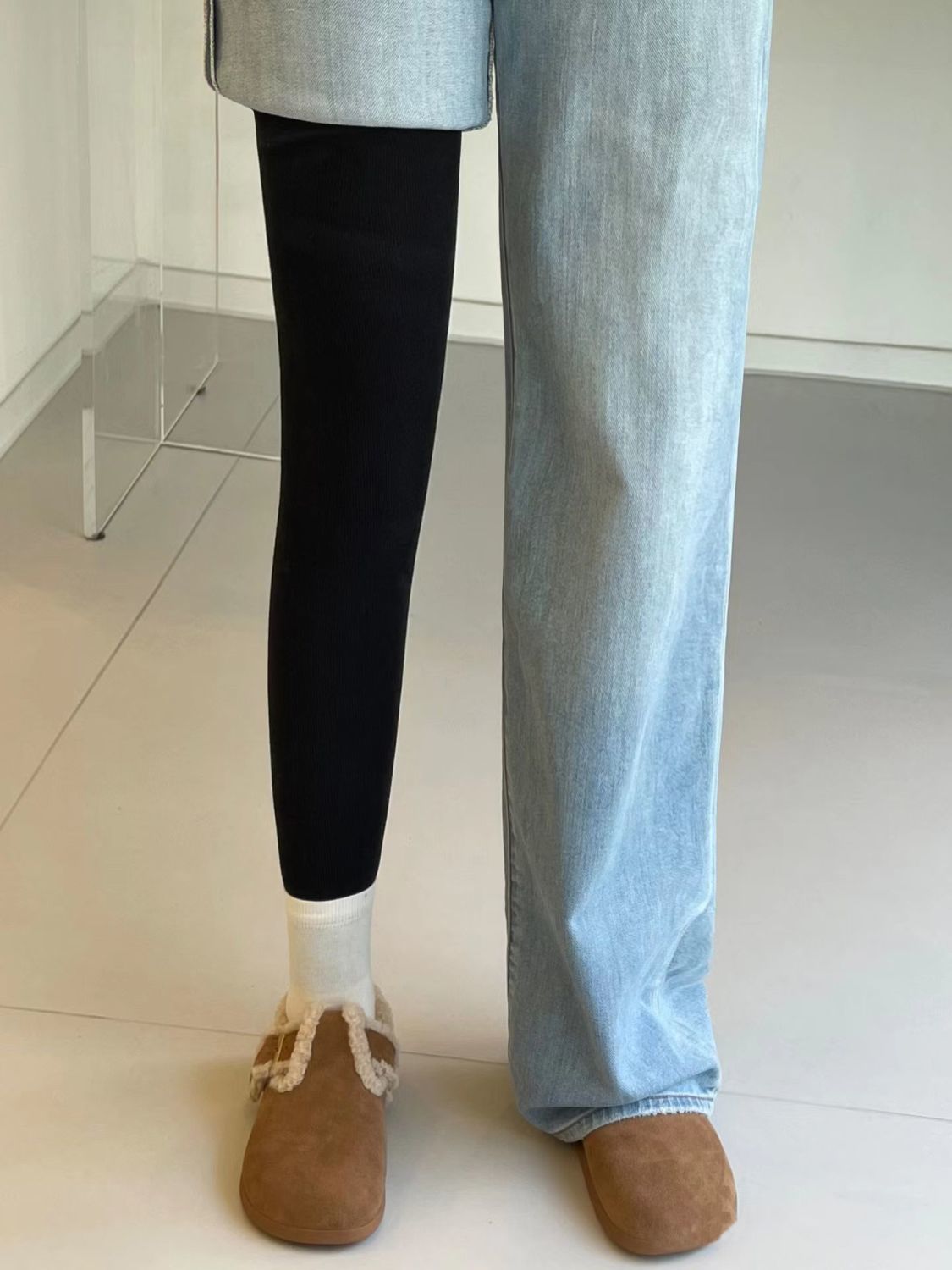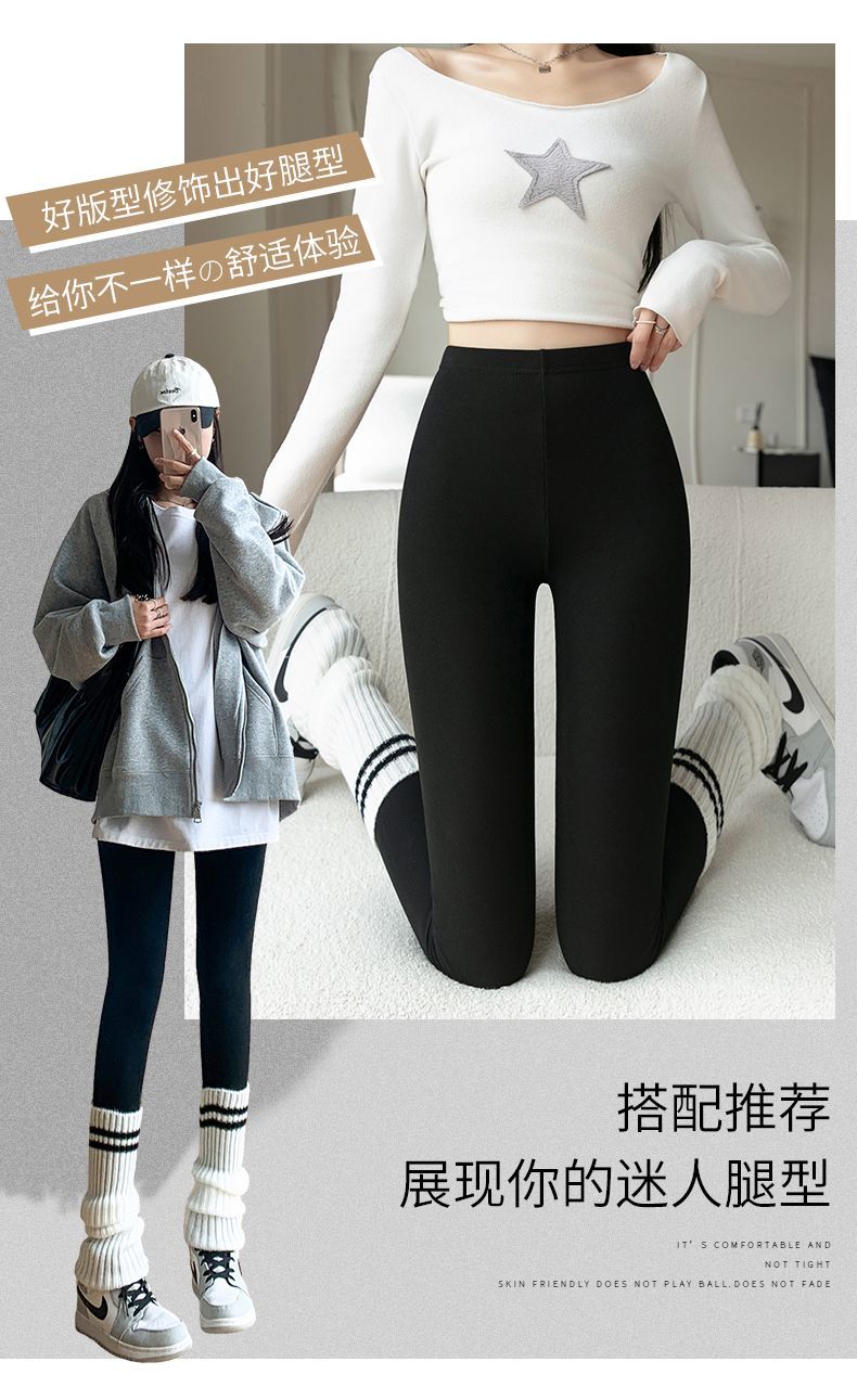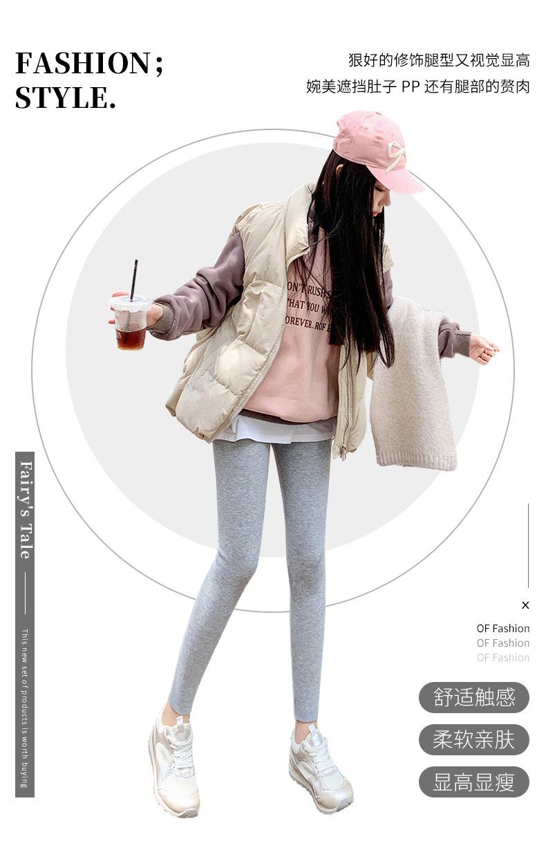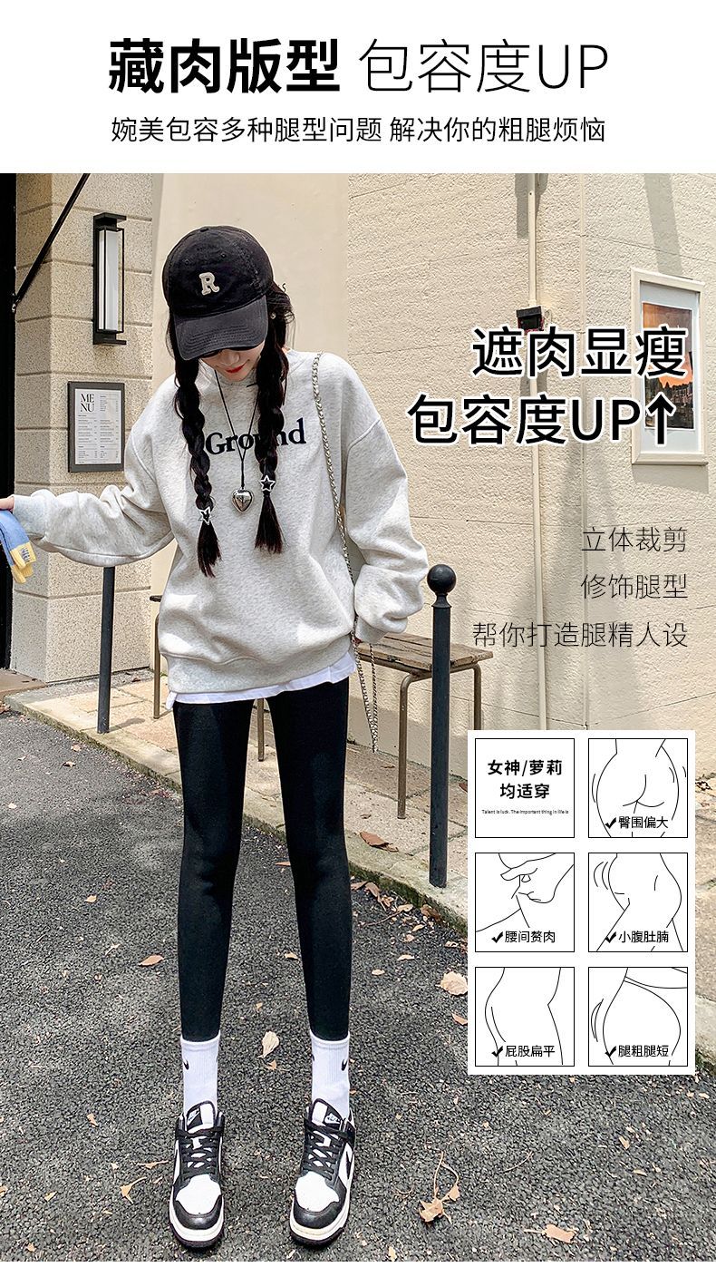 灰色螺纹打底裤女外穿秋冬加绒加厚羊羔绒保暖裤显瘦磨毛薄绒秋裤