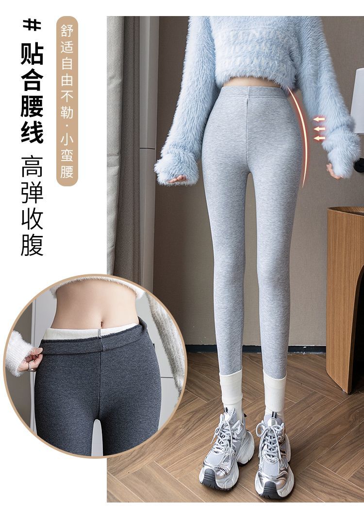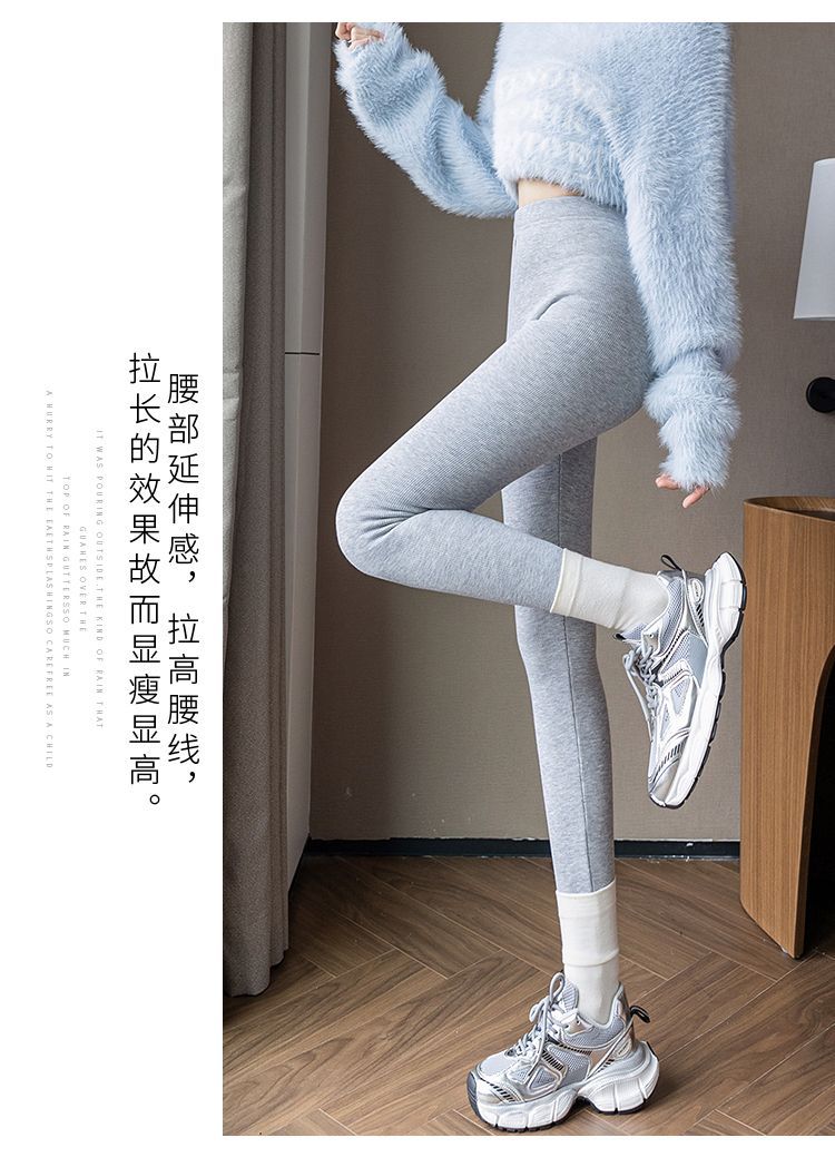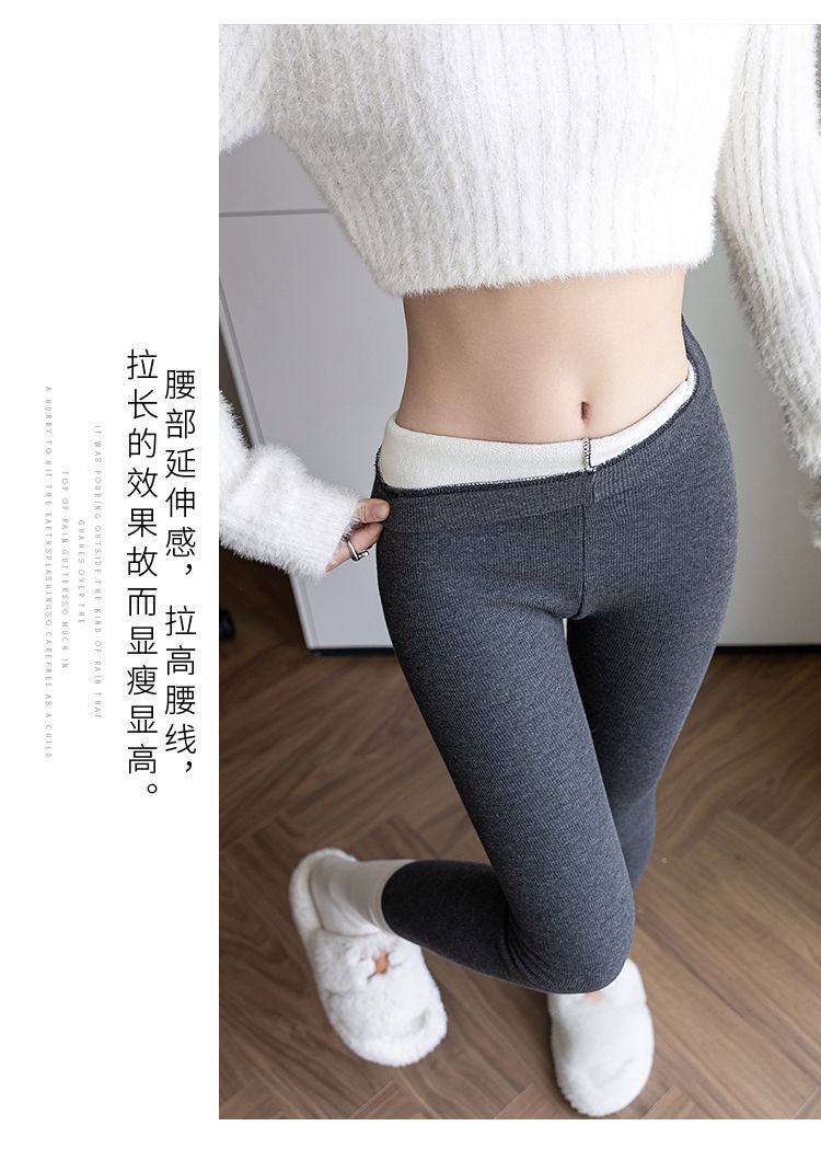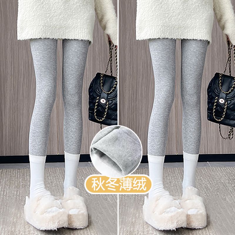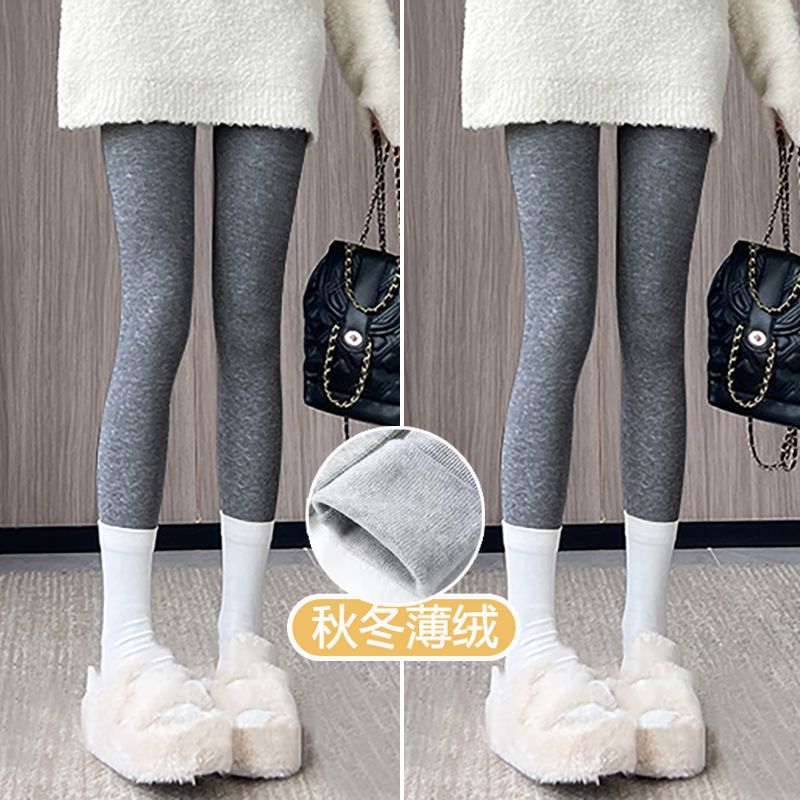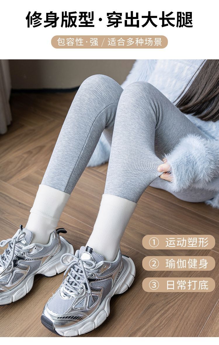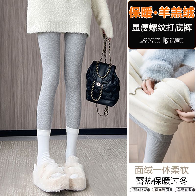 灰色螺纹打底裤女外穿秋冬加绒加厚羊羔绒保暖裤显瘦磨毛薄绒秋裤