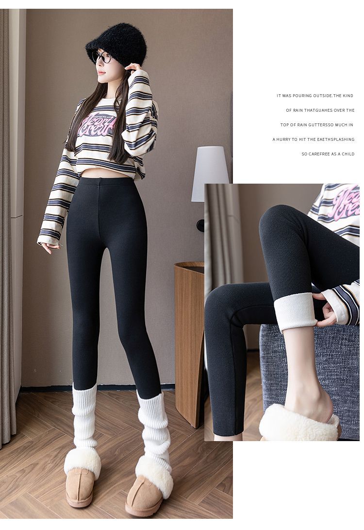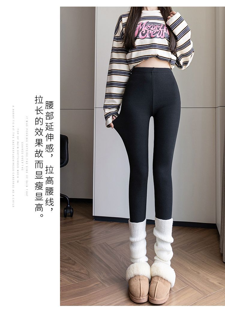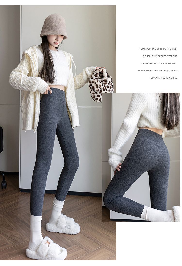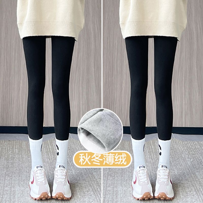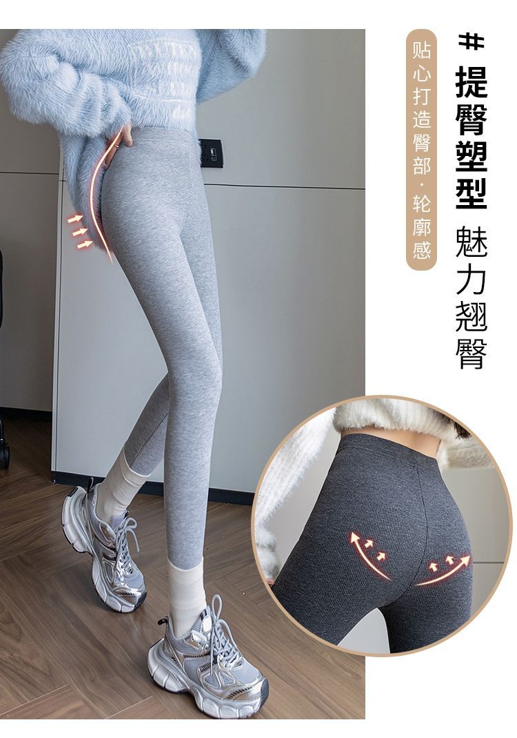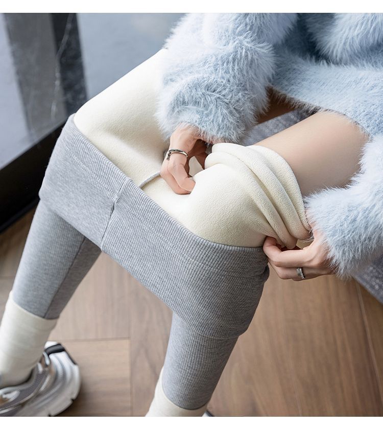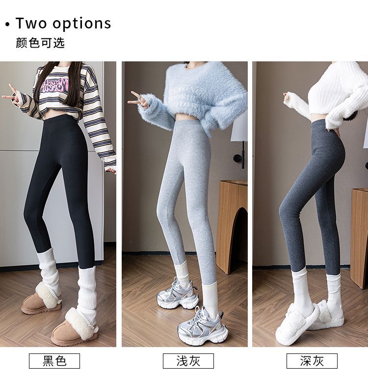 灰色螺纹打底裤女外穿秋冬加绒加厚羊羔绒保暖裤显瘦磨毛薄绒秋裤