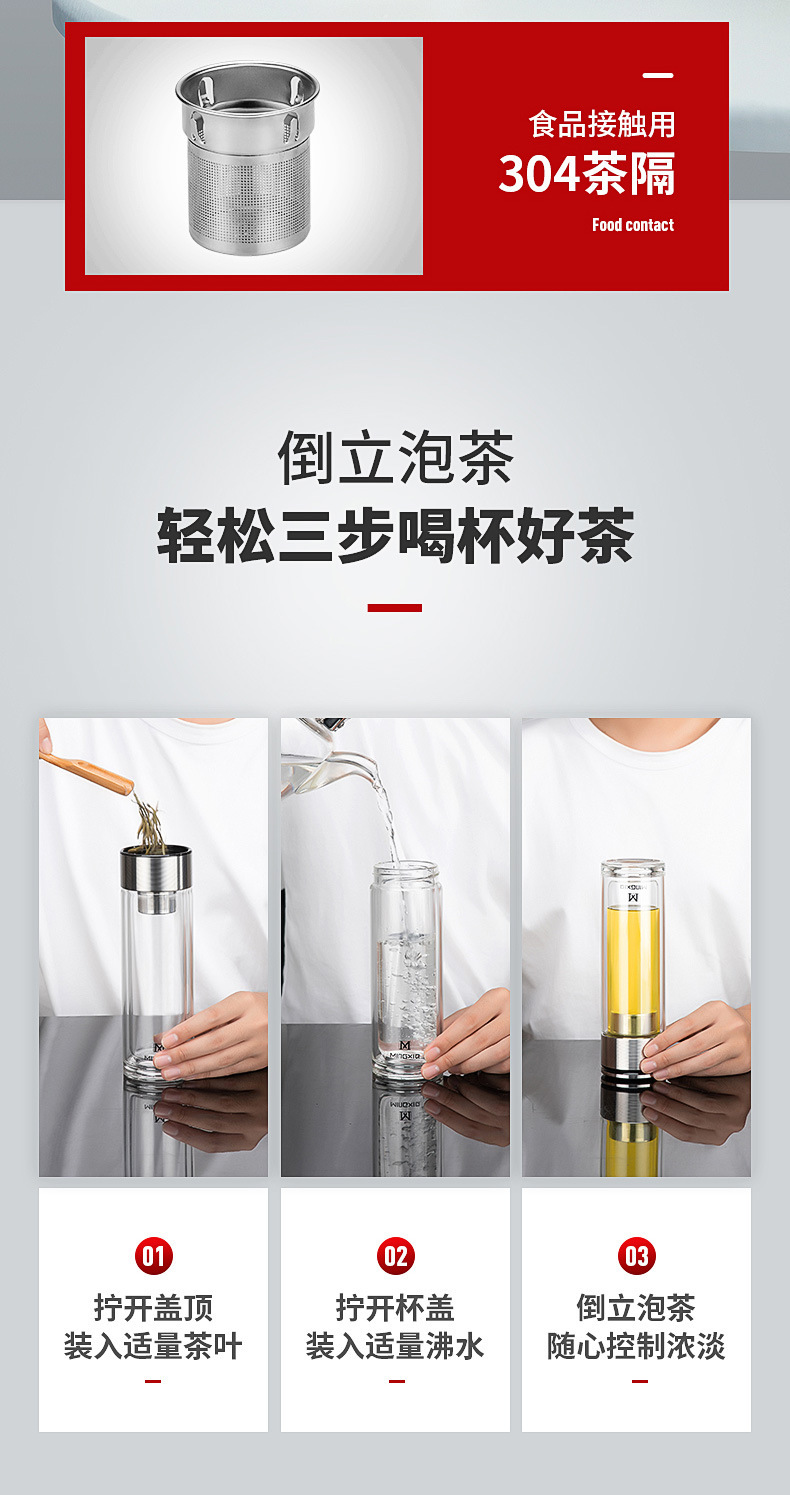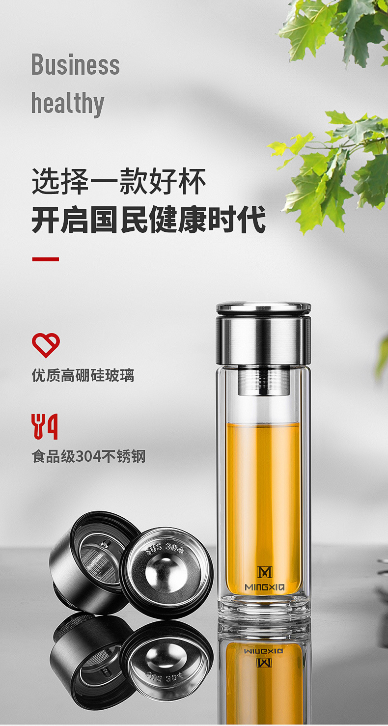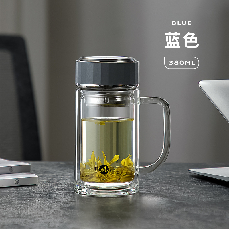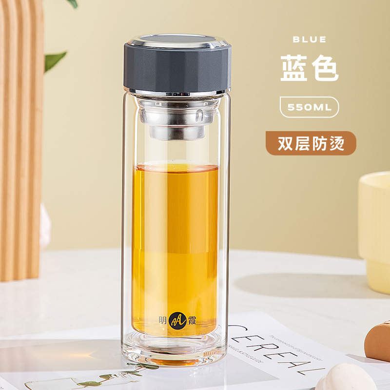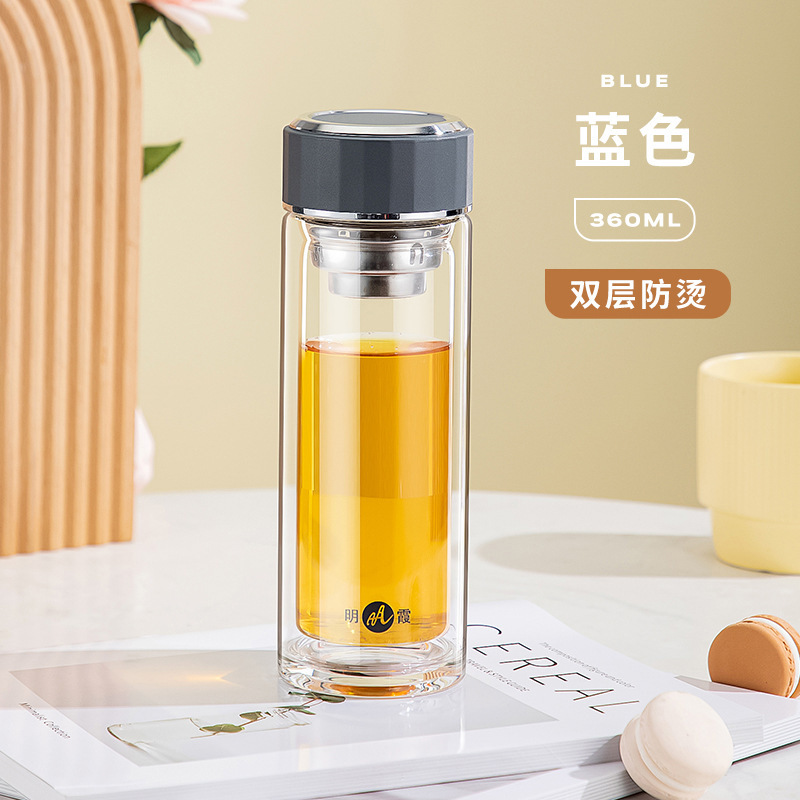 明霞双层玻璃杯茶水分离泡茶杯便携办公家用水杯子开业礼品杯印字
