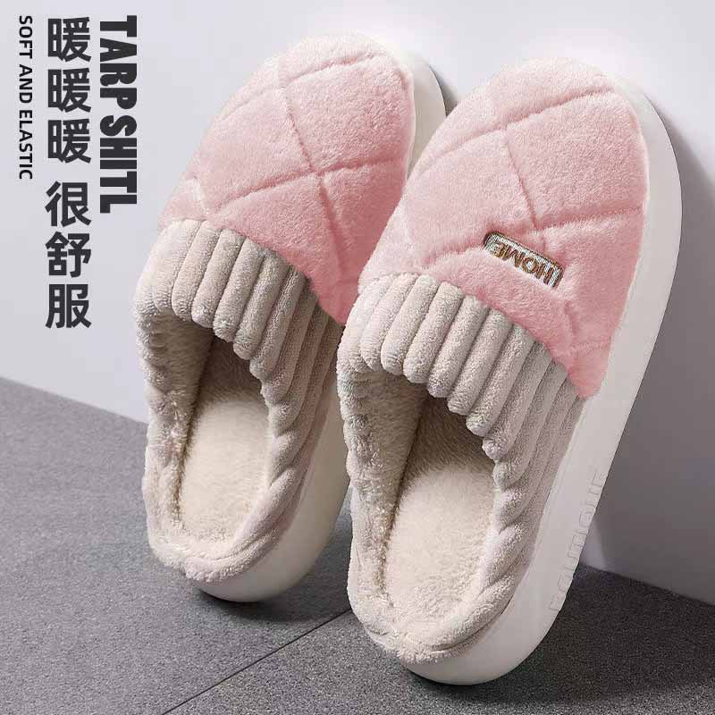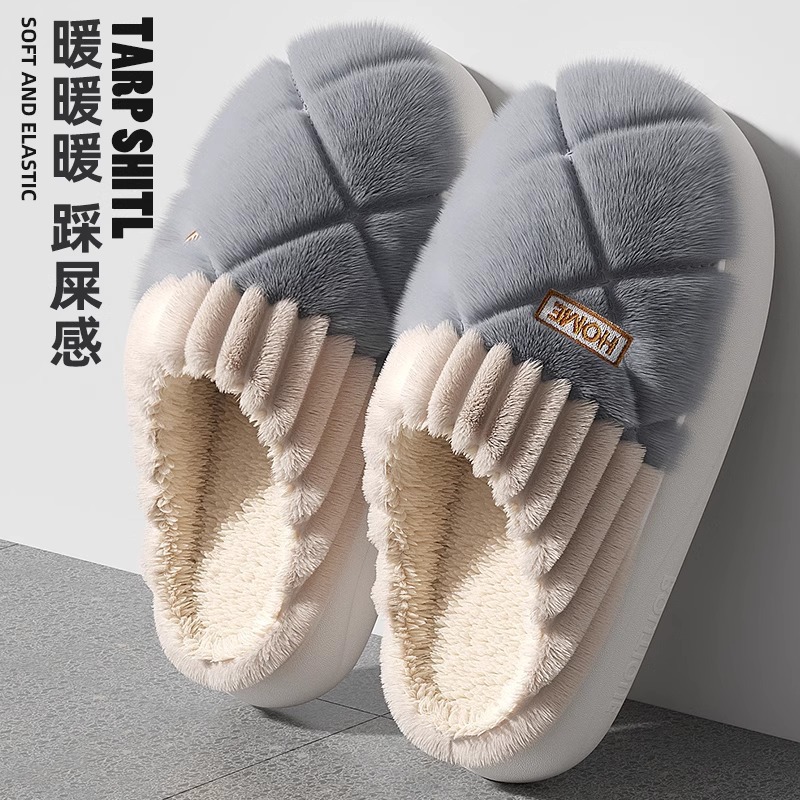 棉拖鞋男士2024冬季新款室内家居防滑厚底加绒毛保暖棉拖男款外穿
