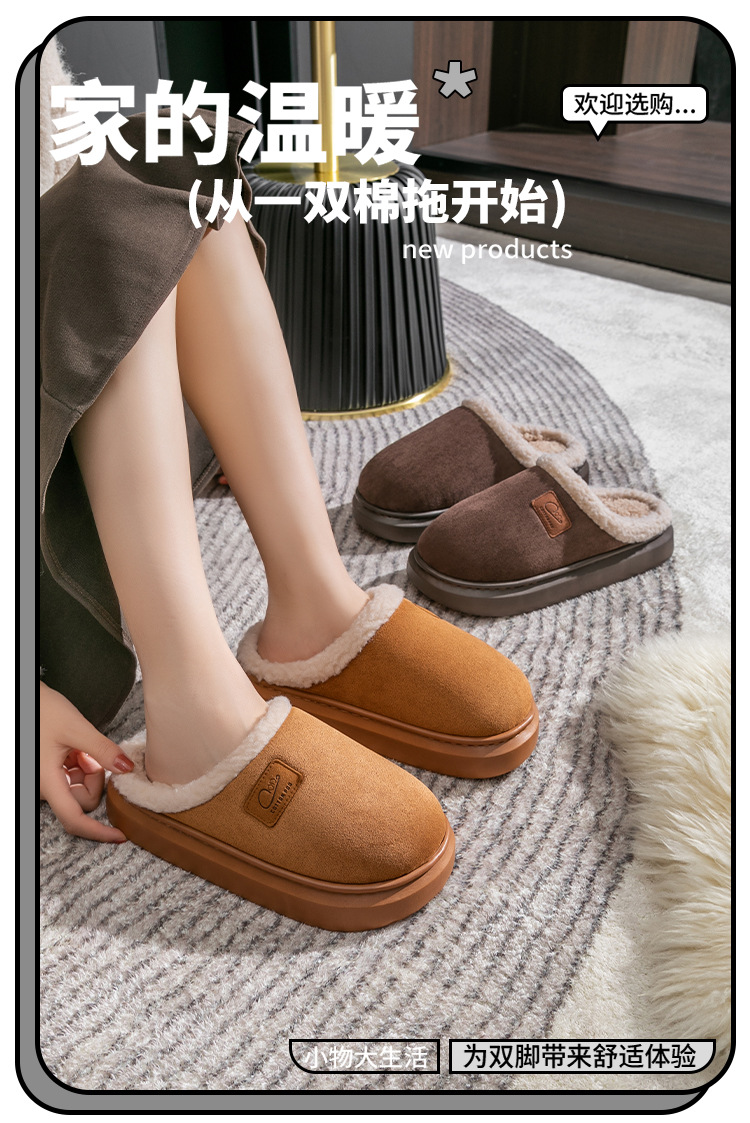 跨境新品棉拖鞋厚底防滑秋冬季保暖居家情侣舒适暖脚加绒冬天拖鞋