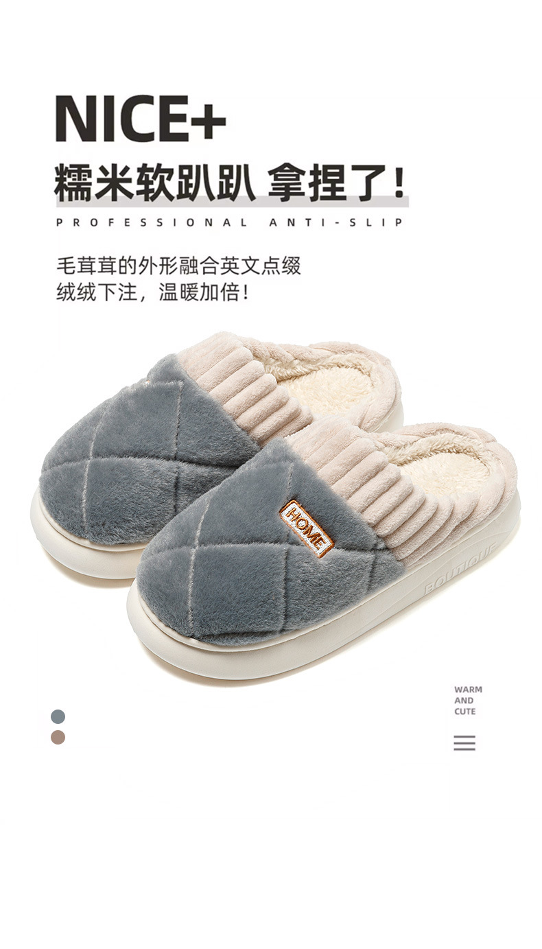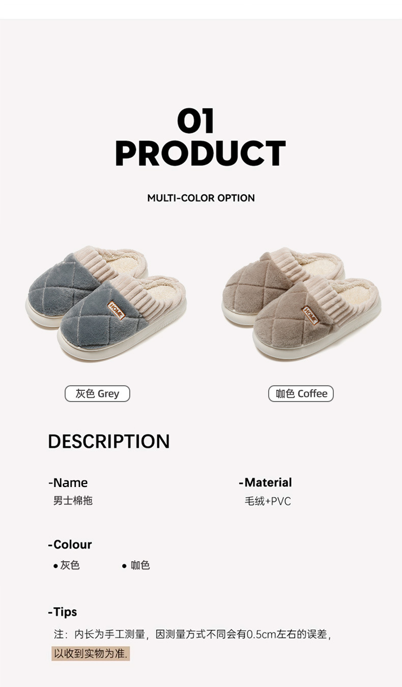 男士棉拖鞋秋季厚底毛毛绒2025新款室内居家防滑情侣棉鞋宿舍学生
