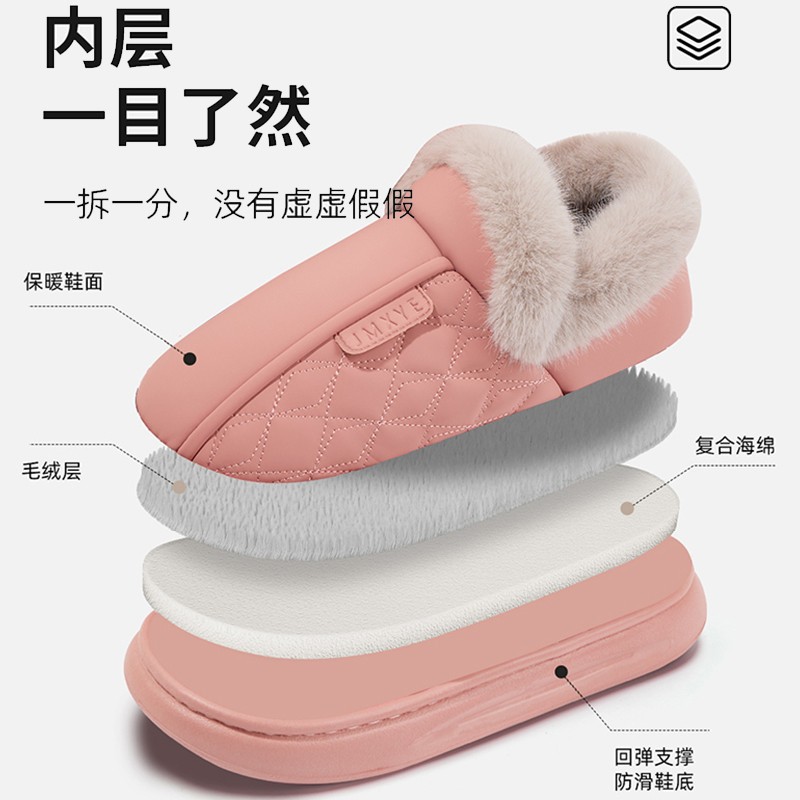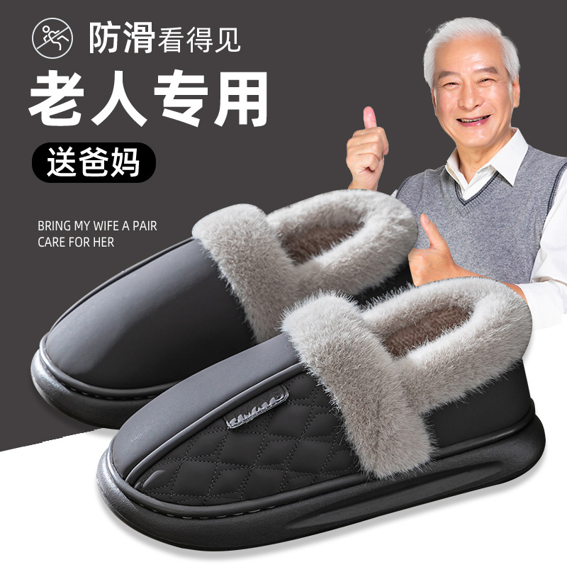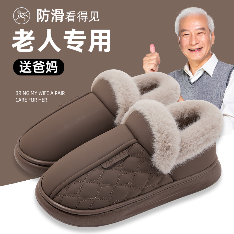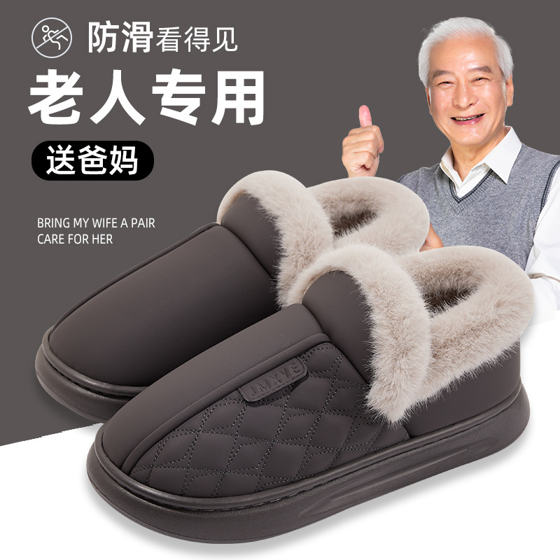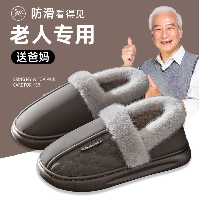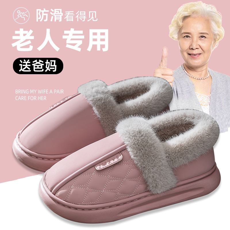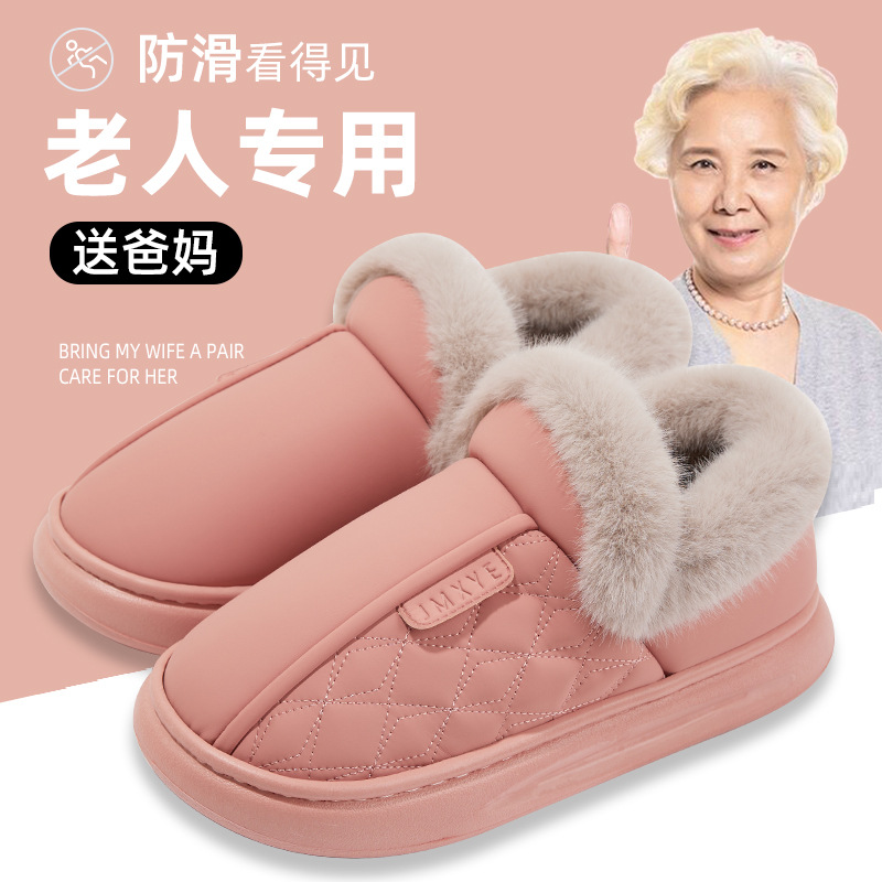 防水棉拖鞋女士冬季2024新款室内家居老人防滑棉鞋包跟女外穿冬天