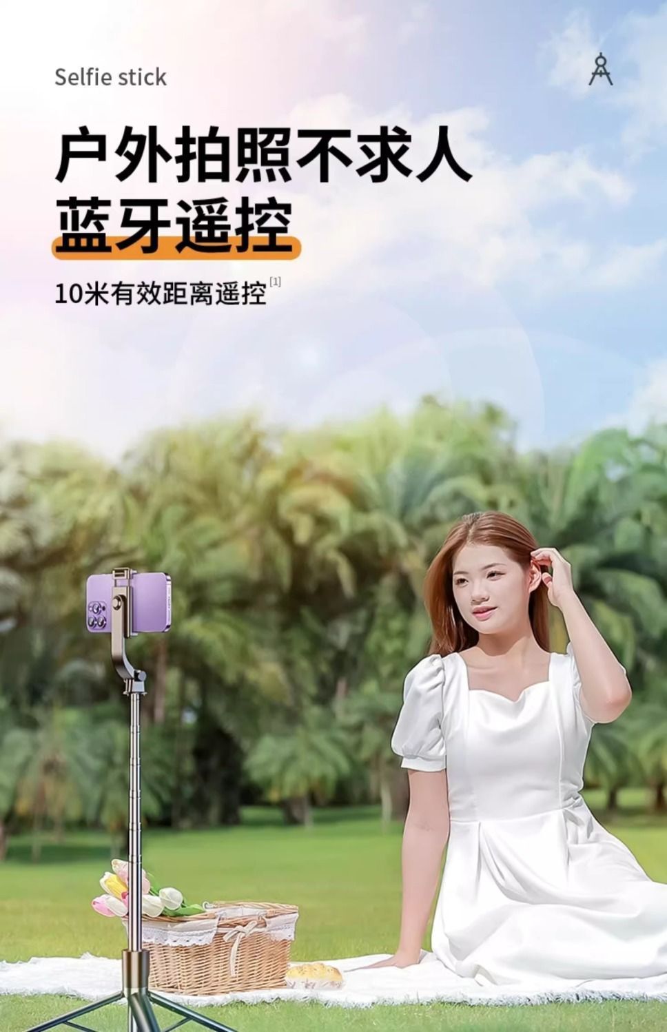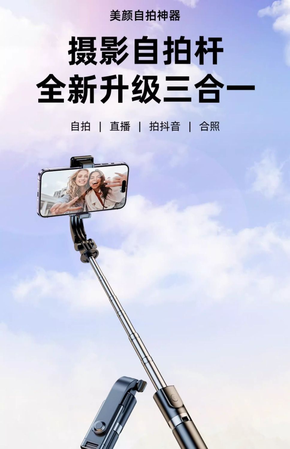 2024新款手机自拍杆三角架手持落地折叠旅行蓝牙遥控自拍神器便携