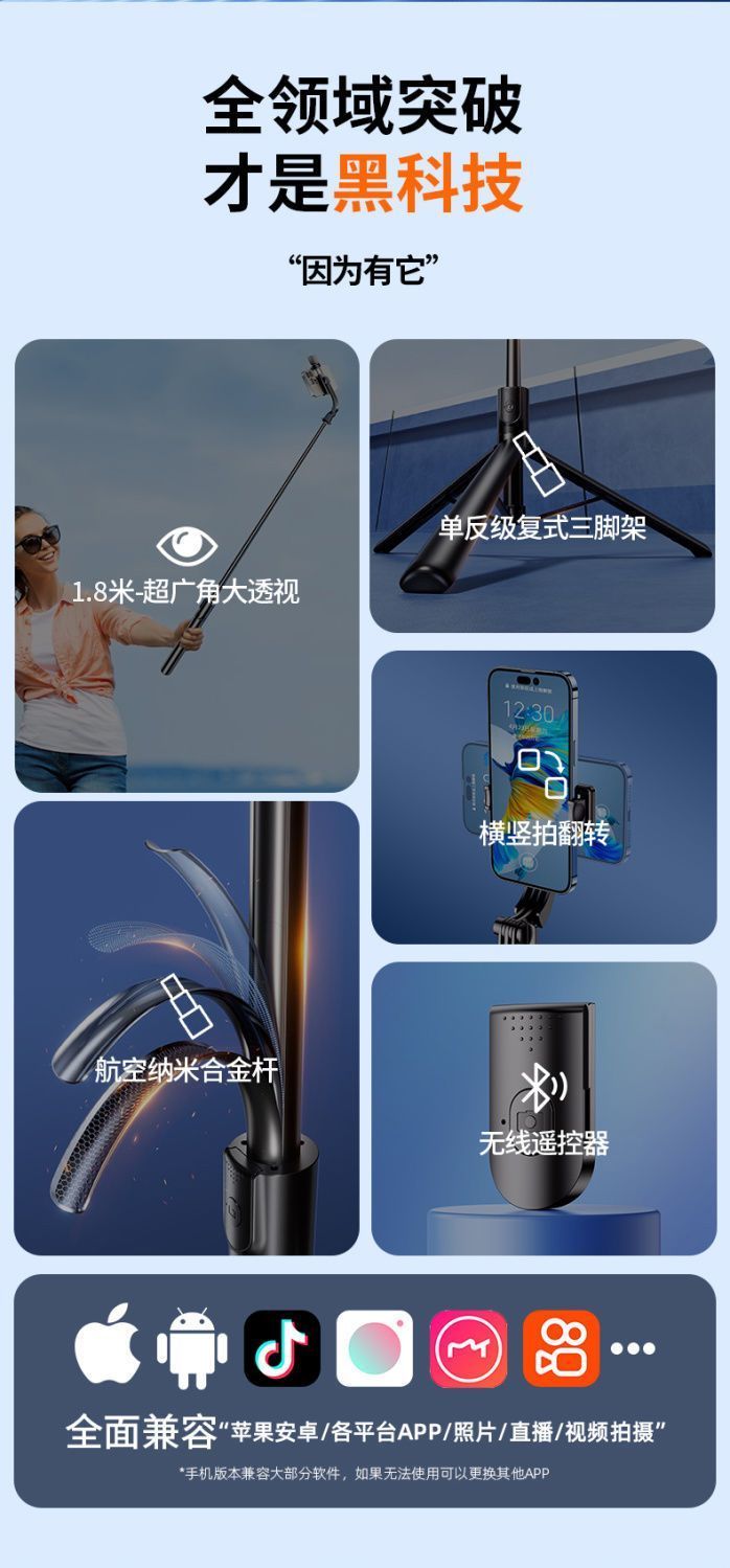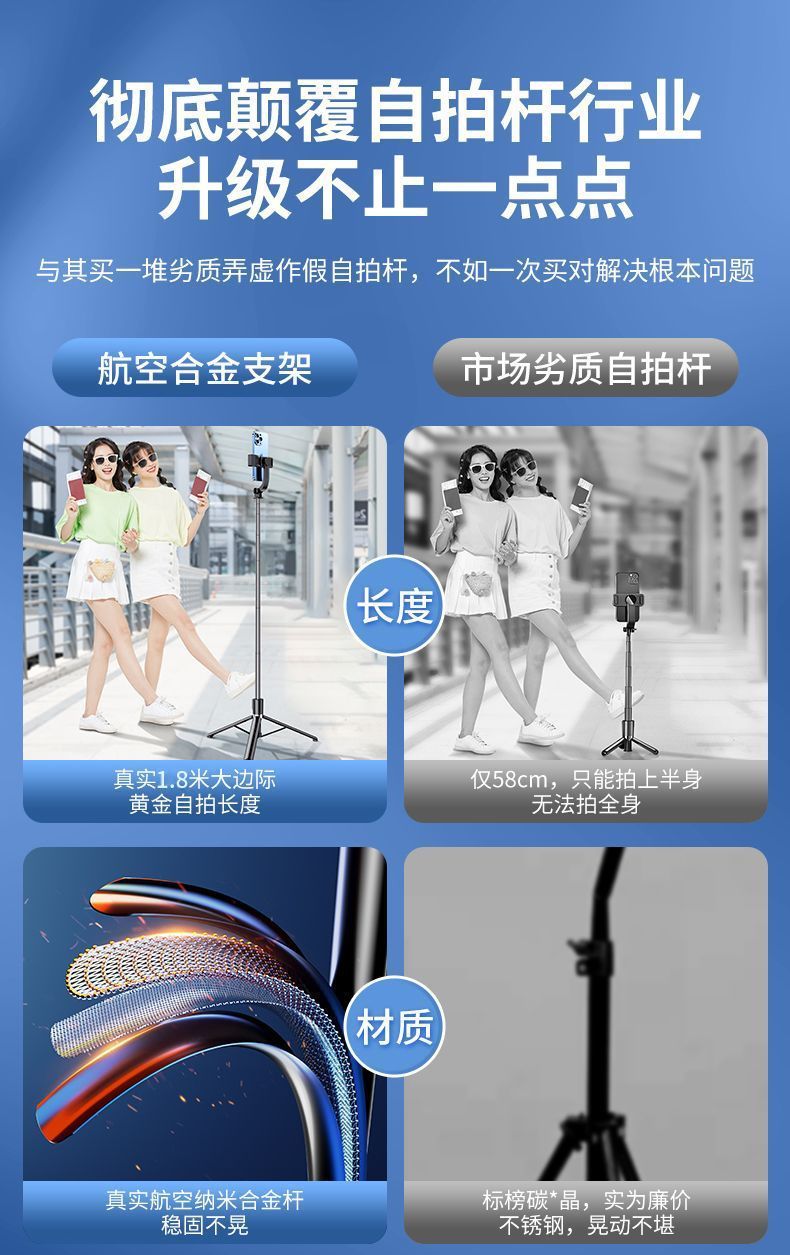 2024新款自拍杆手机通用拍摄支架360度旋转旅游便携式照防抖专用