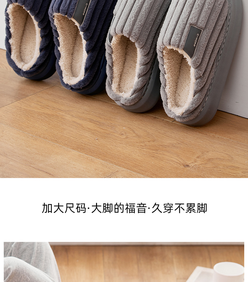 男士棉拖鞋加大码厚底家用秋冬室内居家加绒保暖大码拖鞋男款冬天