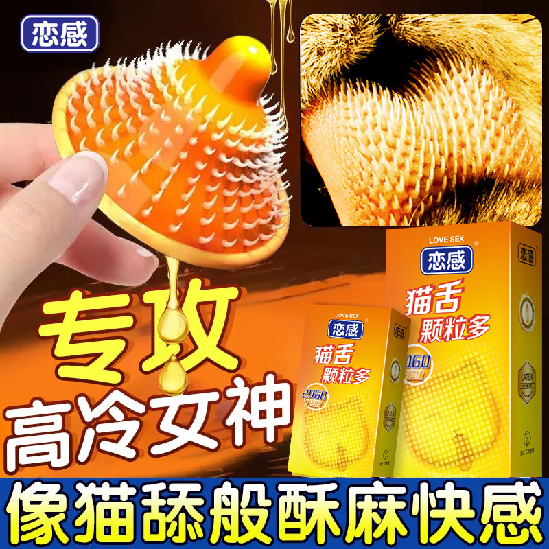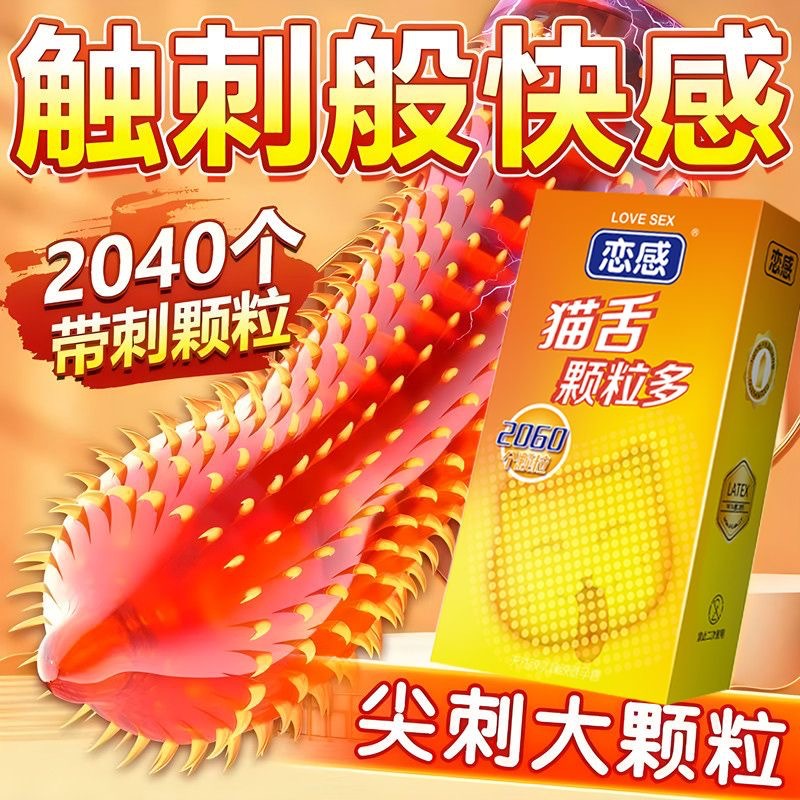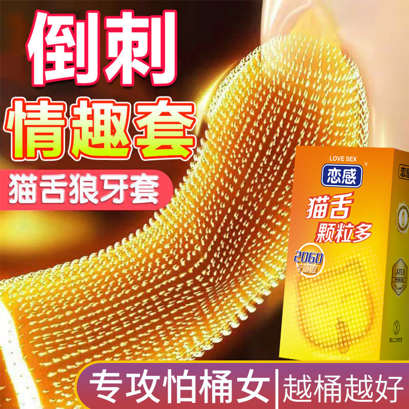 恋感玻尿酸超薄避孕套2只装猫舌狼牙带刺男大颗粒安全套计生用品