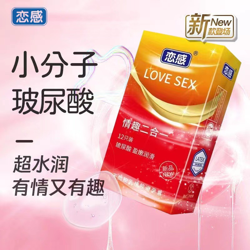 恋感12只装玻尿酸超薄避孕套颗粒螺纹男女情趣安全套成人计生用品