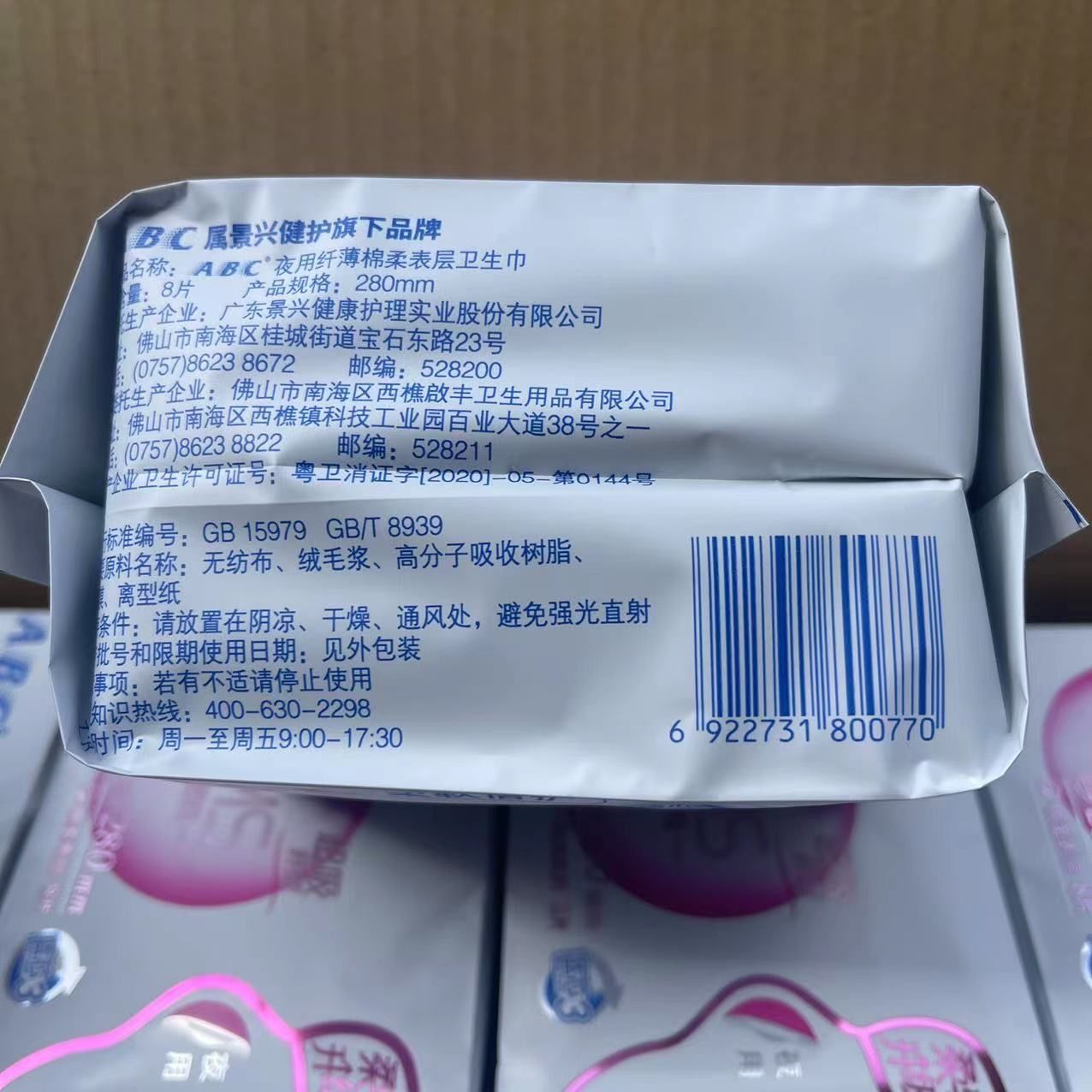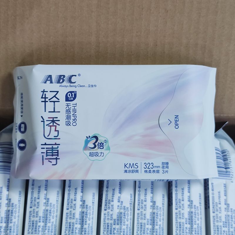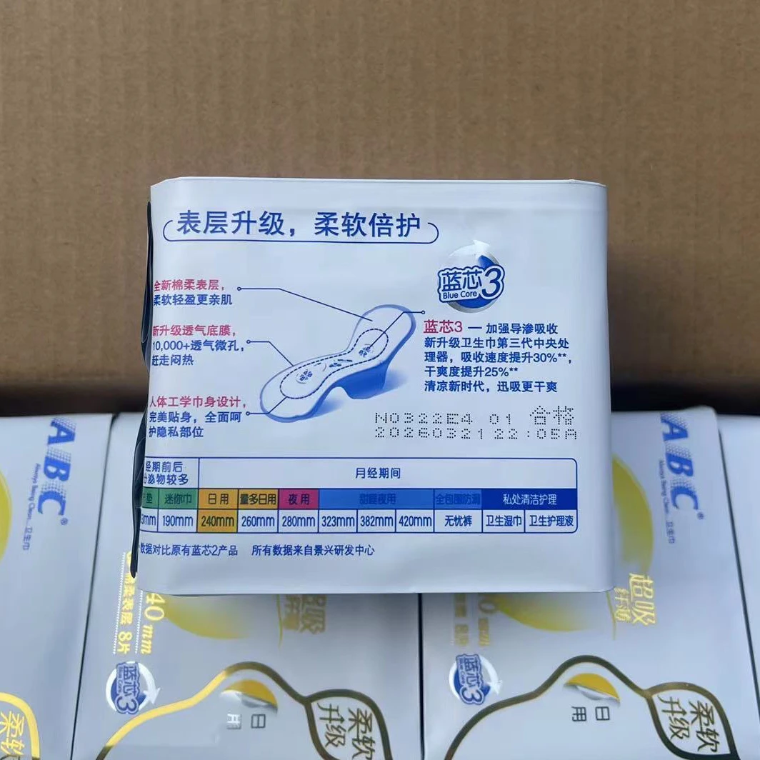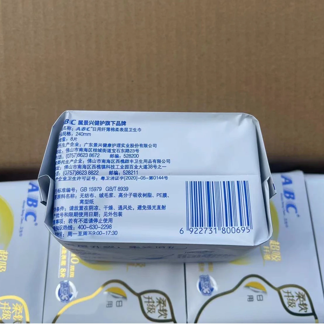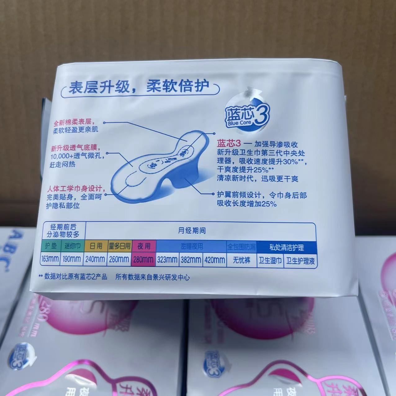 ABC卫生巾 日夜组合日用240mm夜用280纤薄超吸棉柔姨妈巾整箱批发