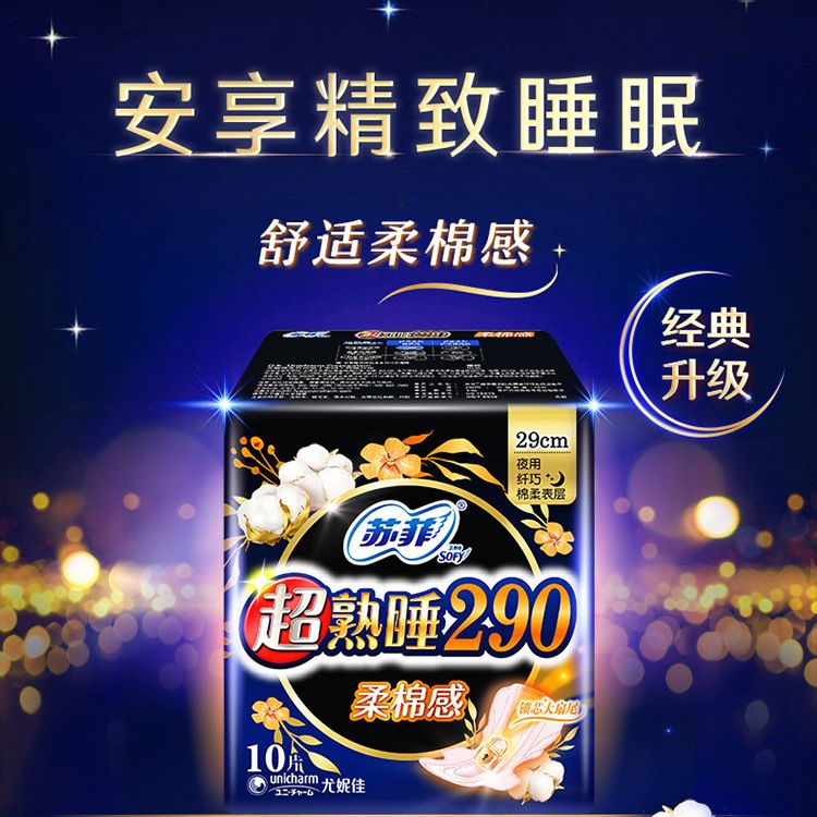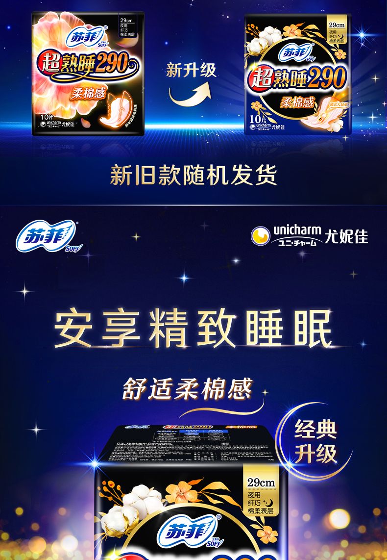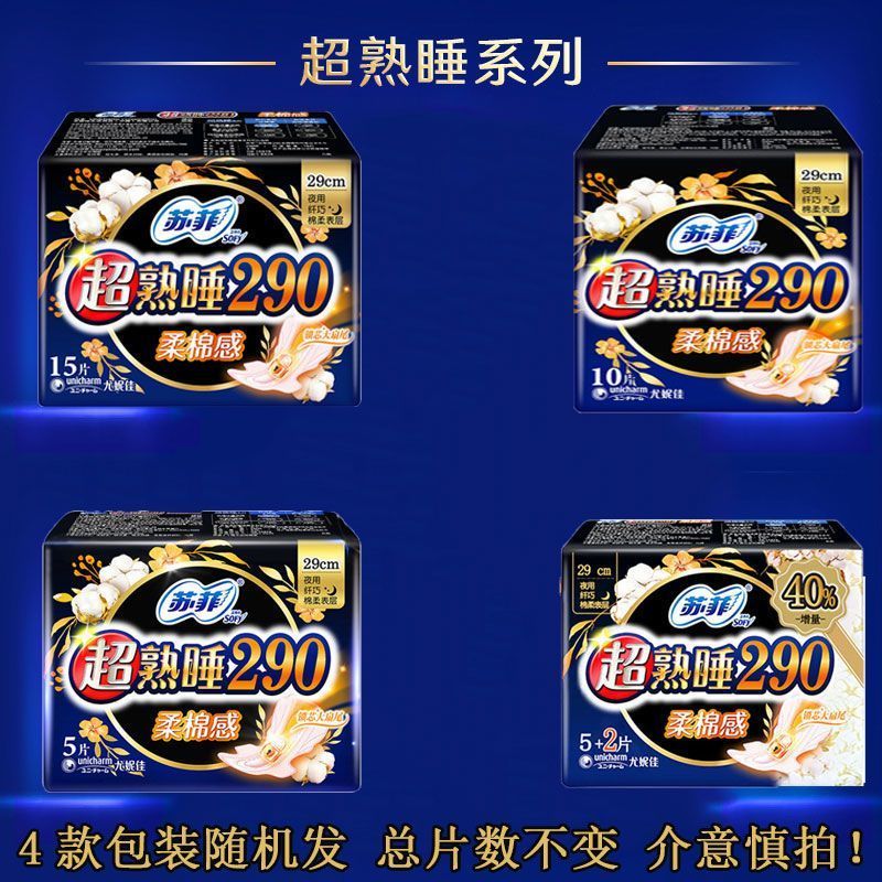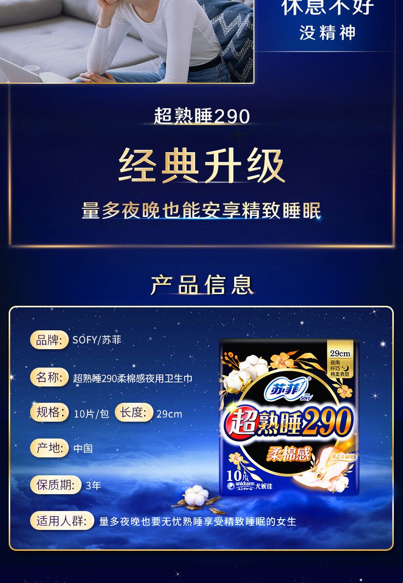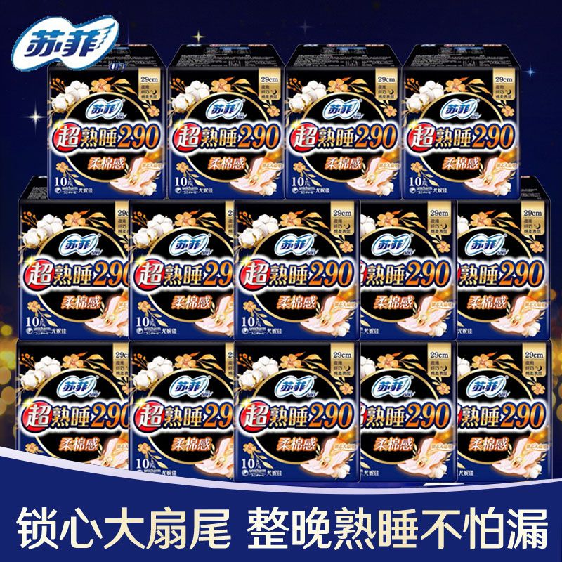 Sofy/苏菲卫生巾量大防漏夜用超熟睡柔棉感290mm姨妈巾女整箱组合
