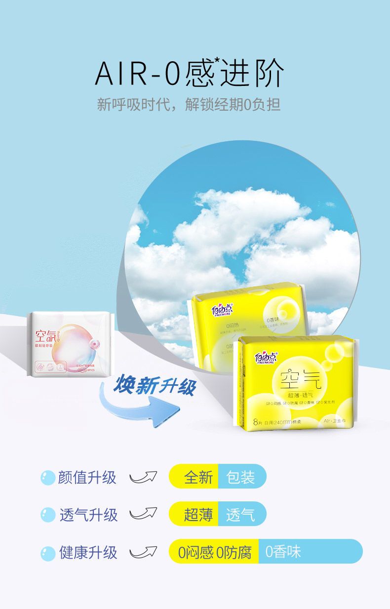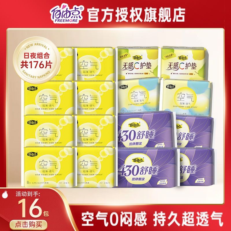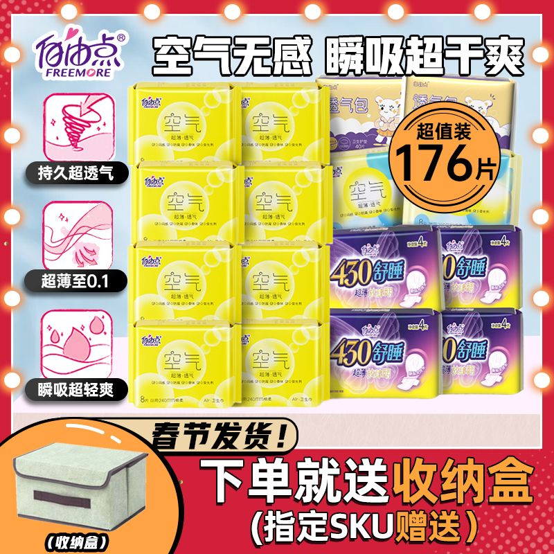 自由点空气卫生巾姨妈巾学生日夜组合一箱宿舍超长夜用批发价