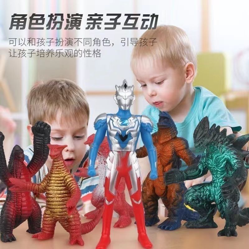 大号软胶人偶奥特曼迪迦赛罗怪兽儿童银河超人泽塔捷德玩具套装男
