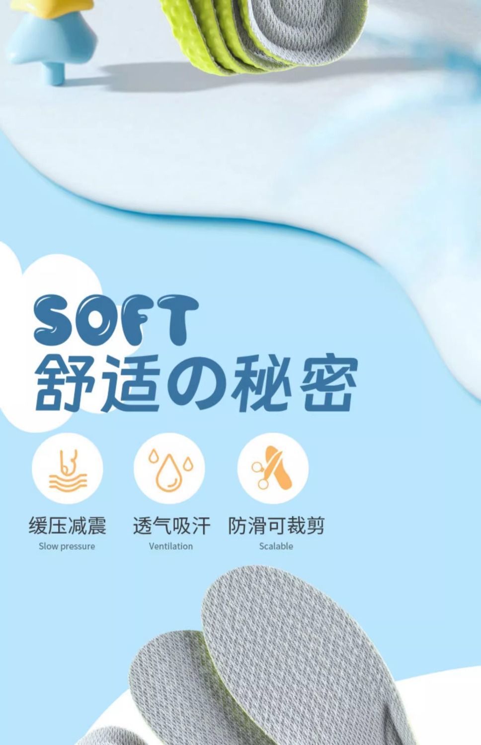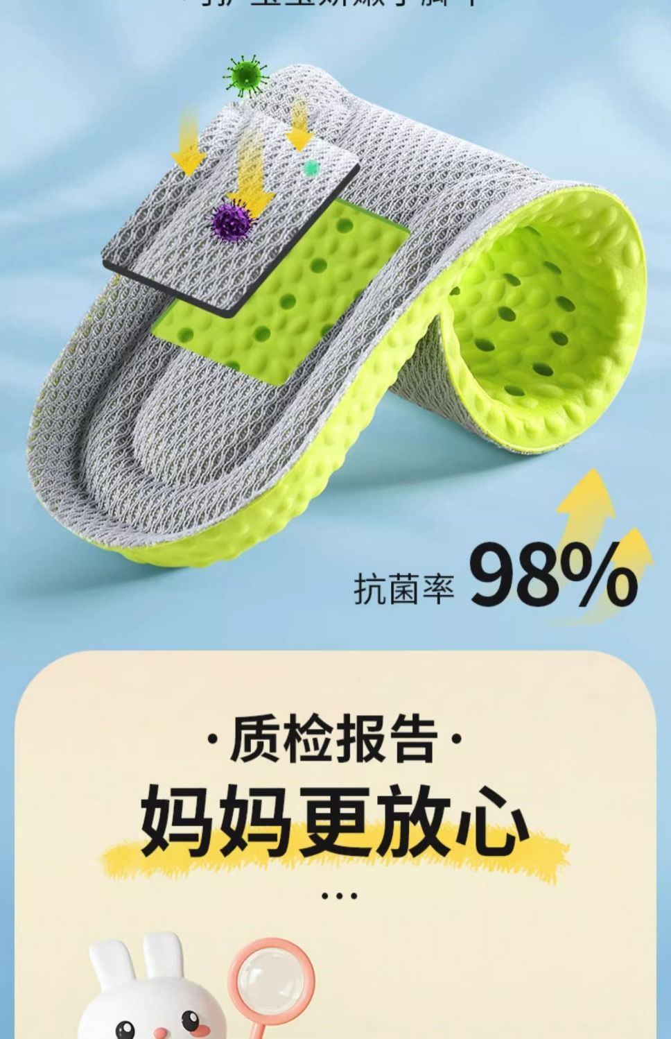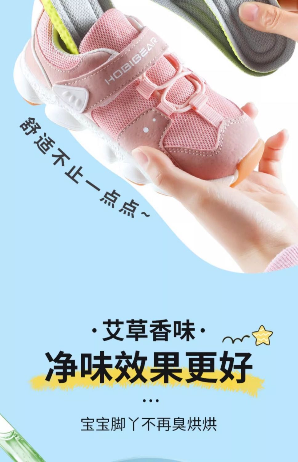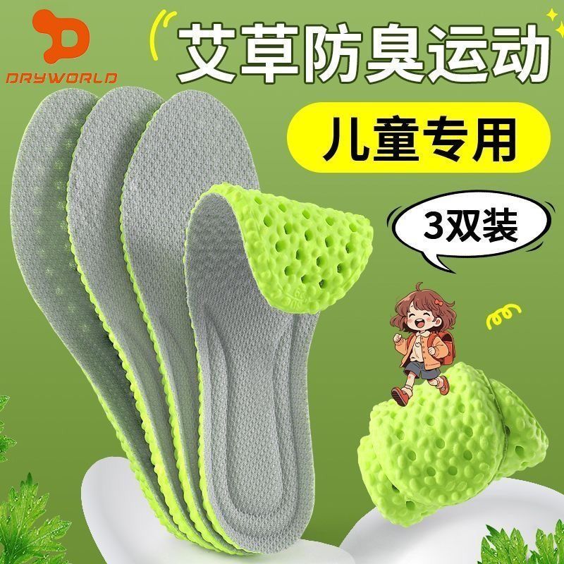 巨沃德艾草除臭儿童运动鞋垫小孩专用吸汗透气防臭高弹运动减震