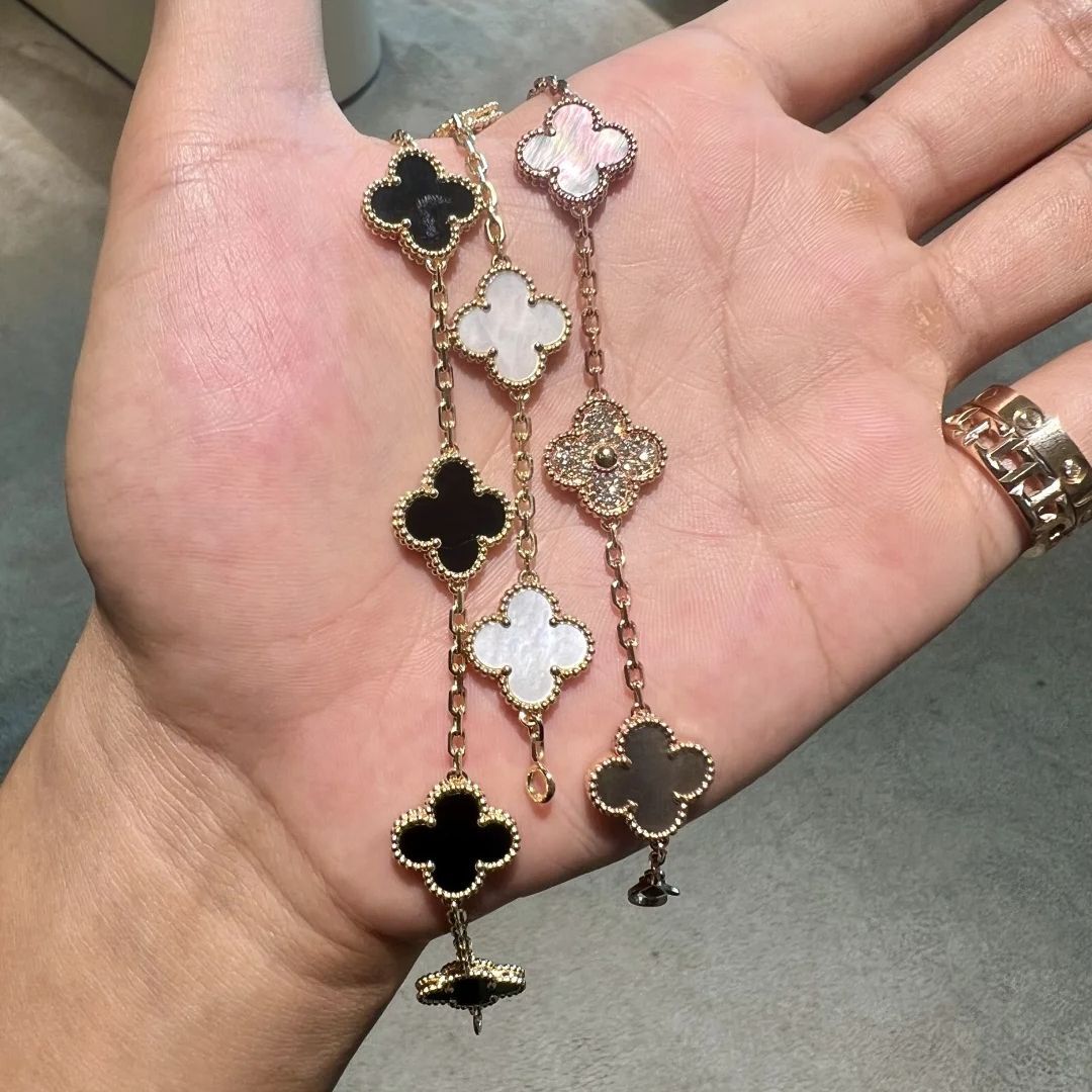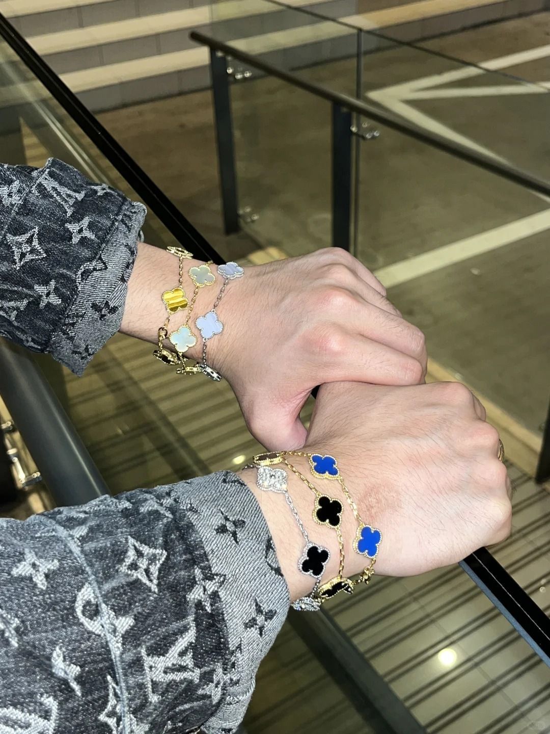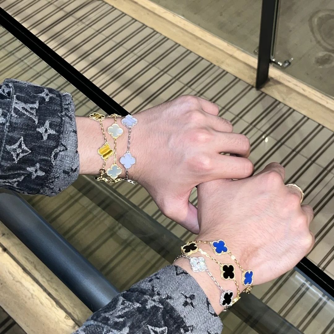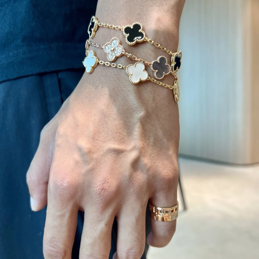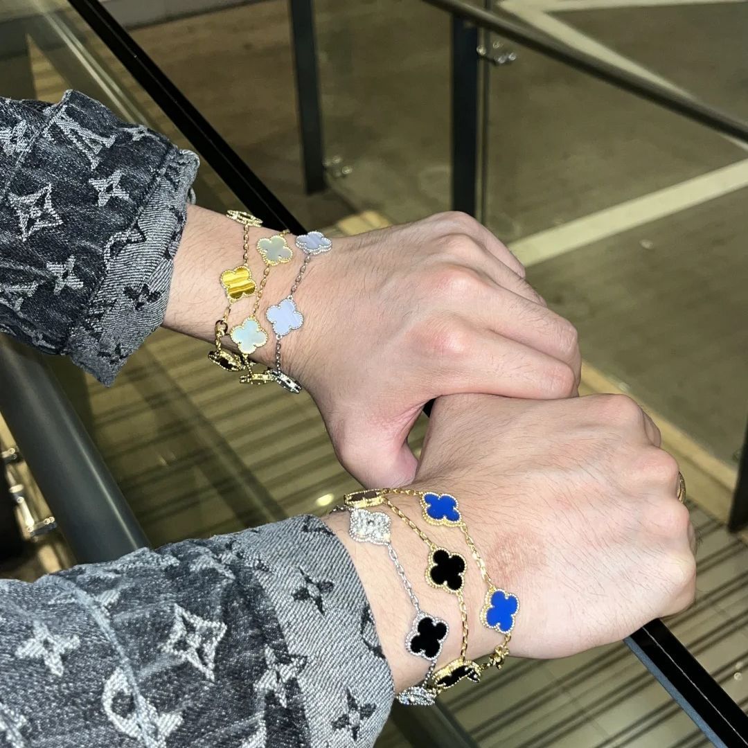 高版本幸运四叶草熊猫五花手链女玫金双面满钻智能手环送女友礼物