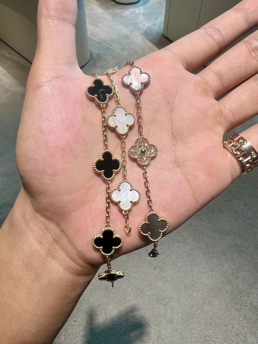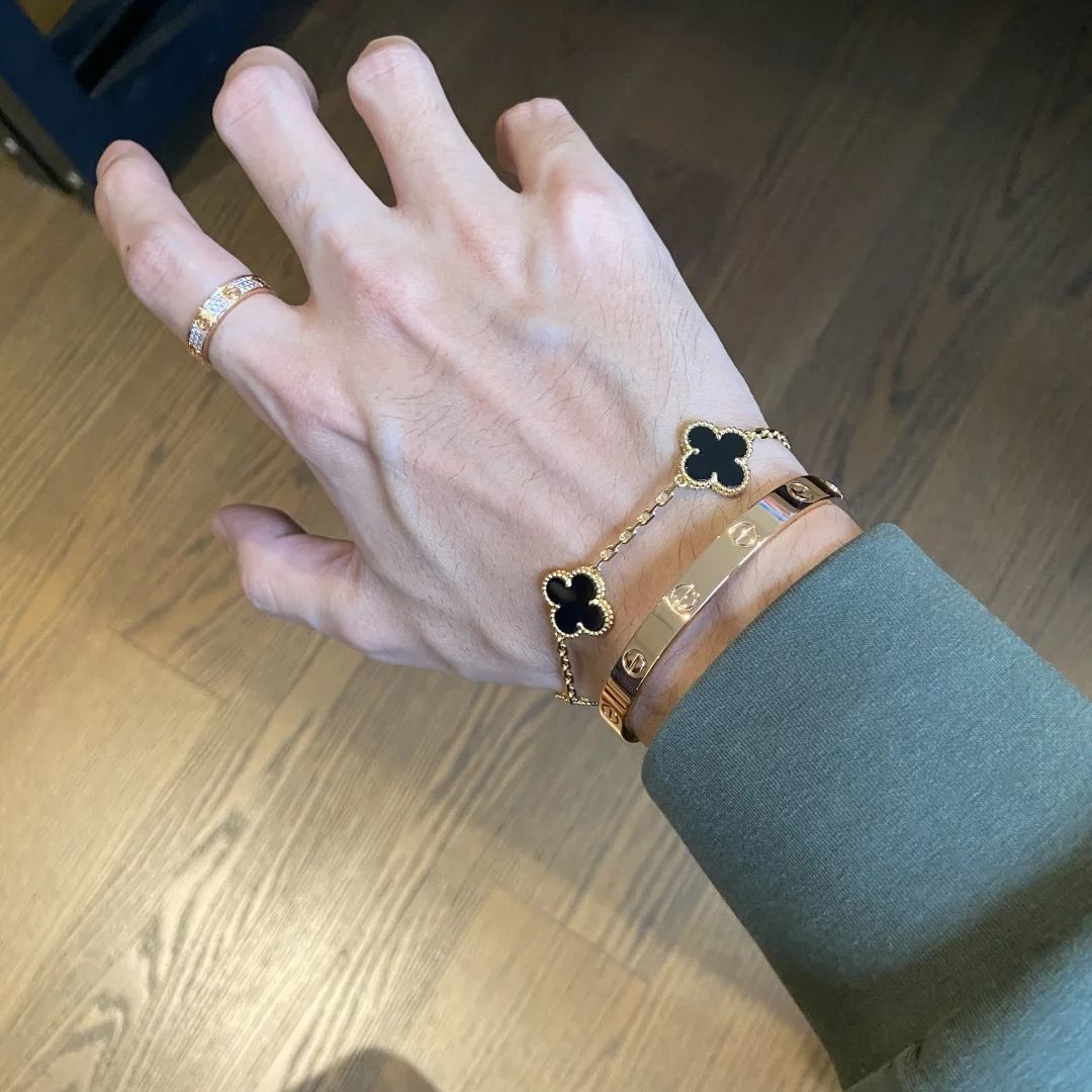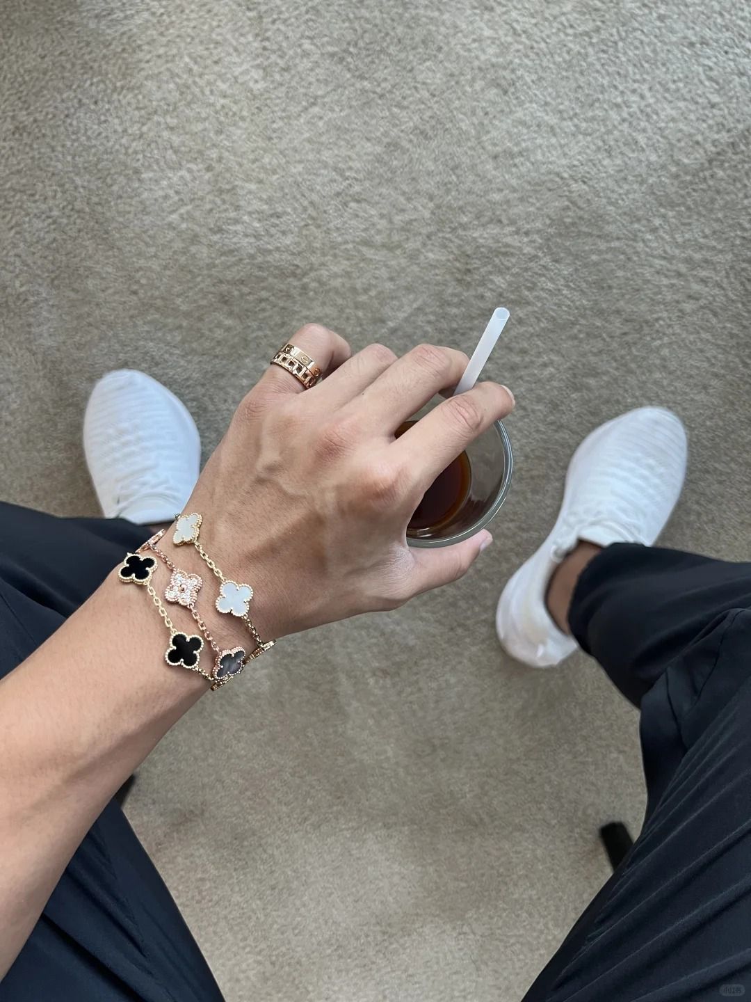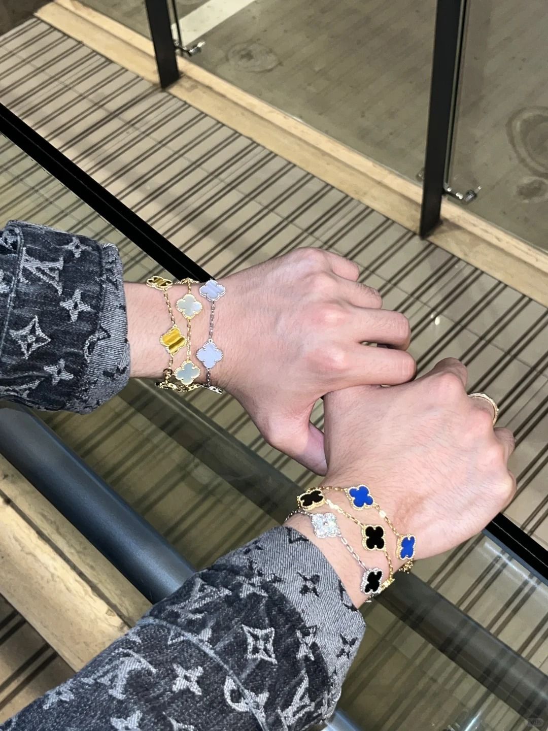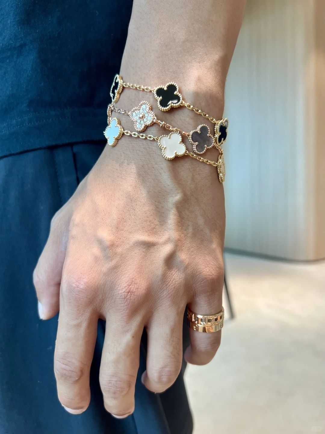 高版本幸运四叶草熊猫五花手链女玫金双面满钻智能手环送女友礼物