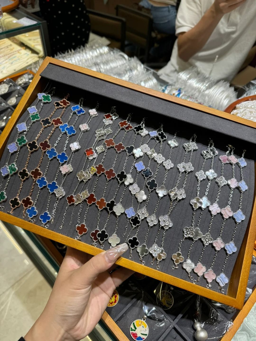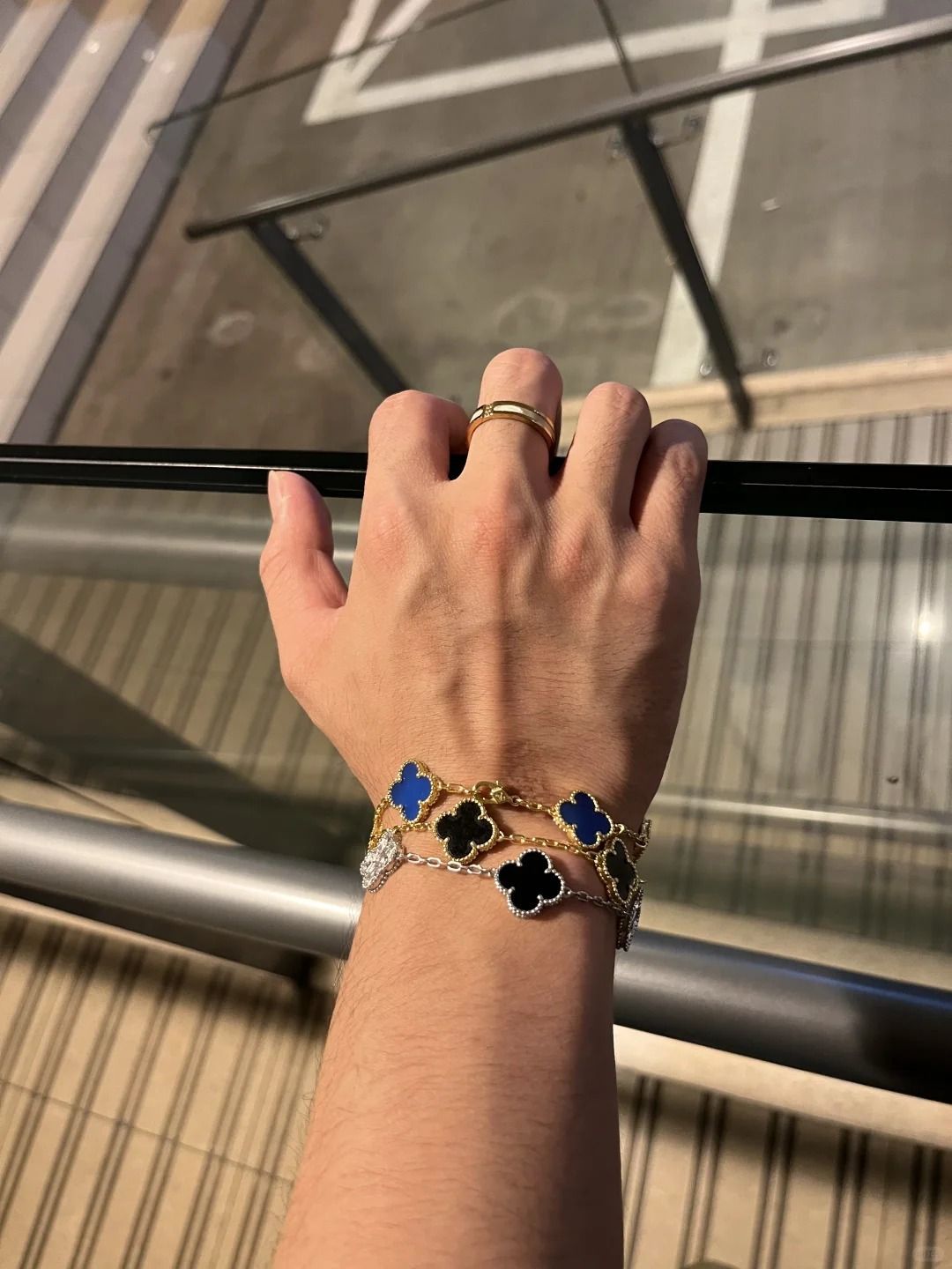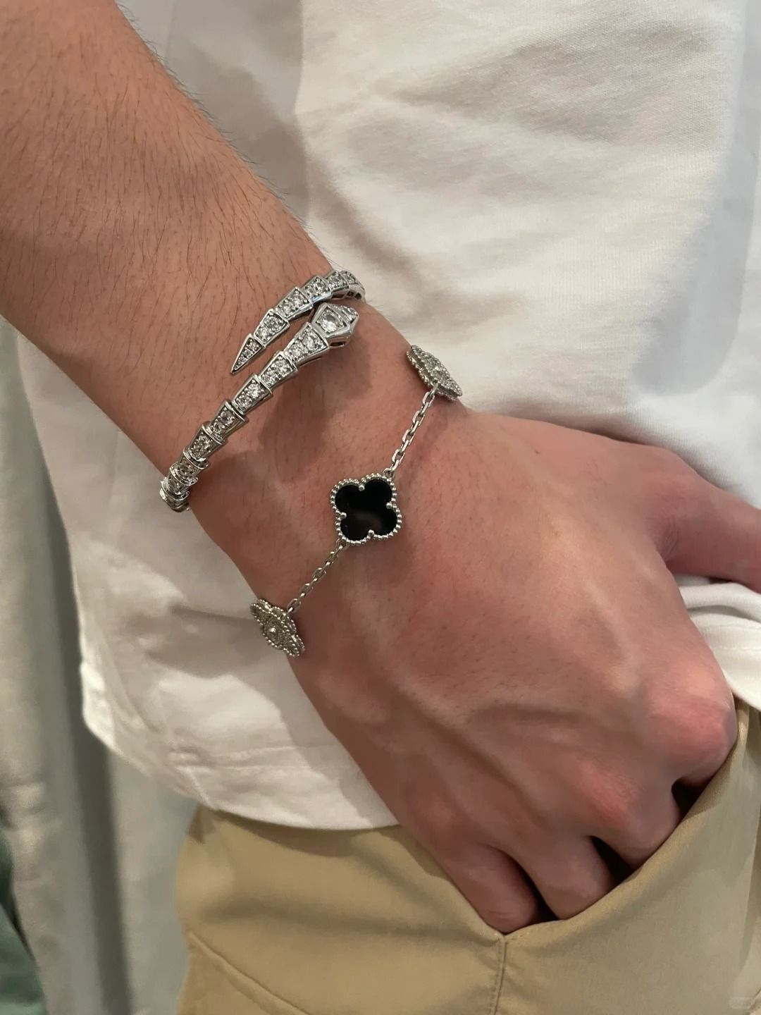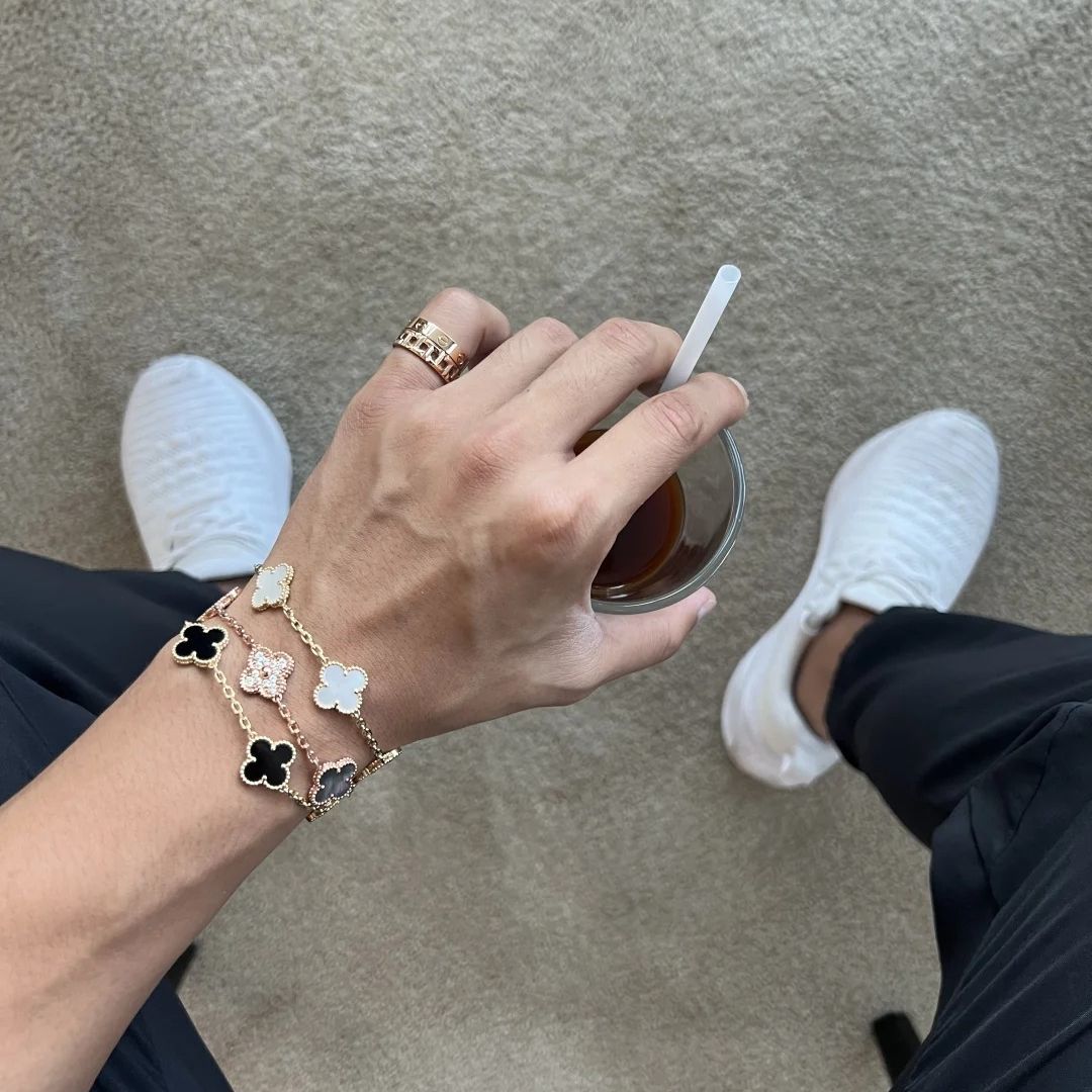 高版本幸运四叶草熊猫五花手链女玫金双面满钻智能手环送女友礼物