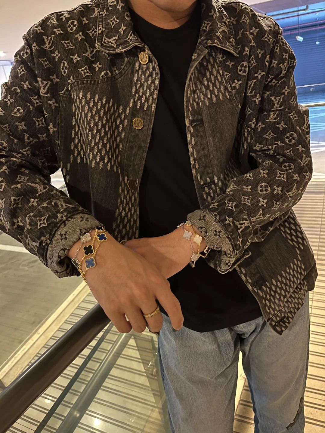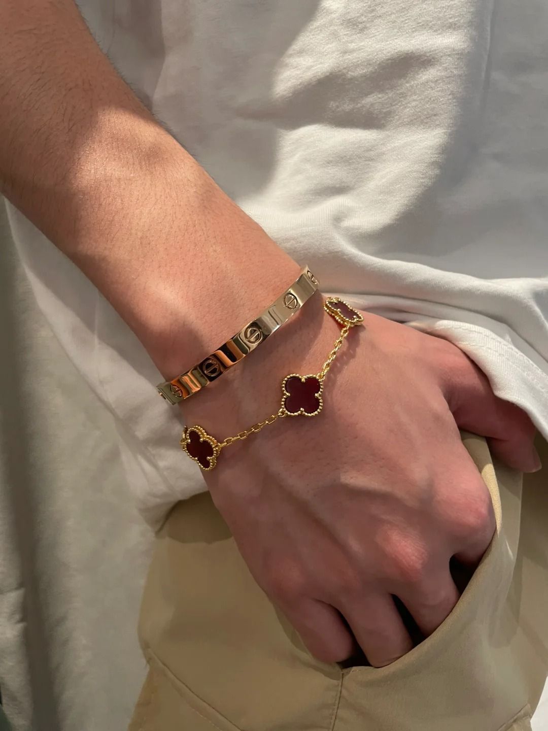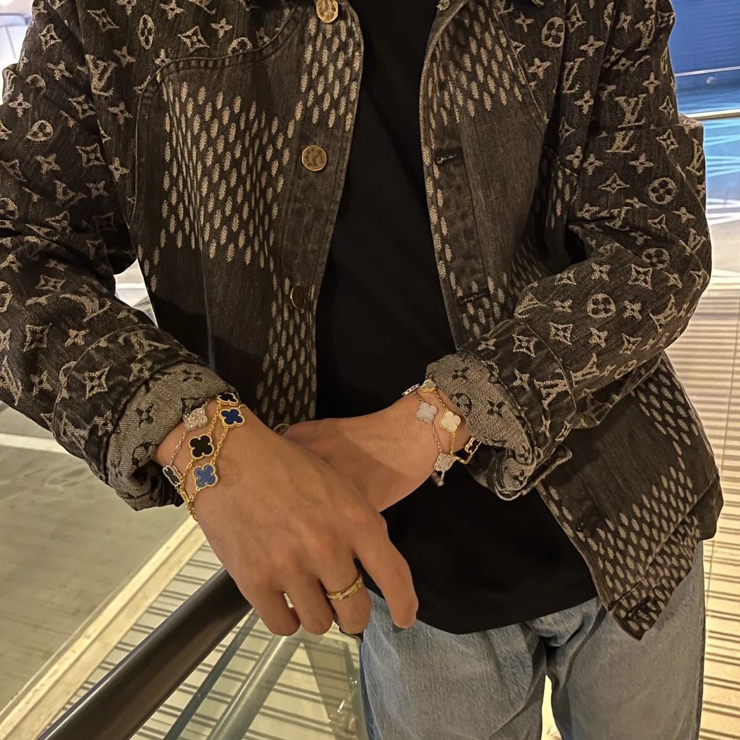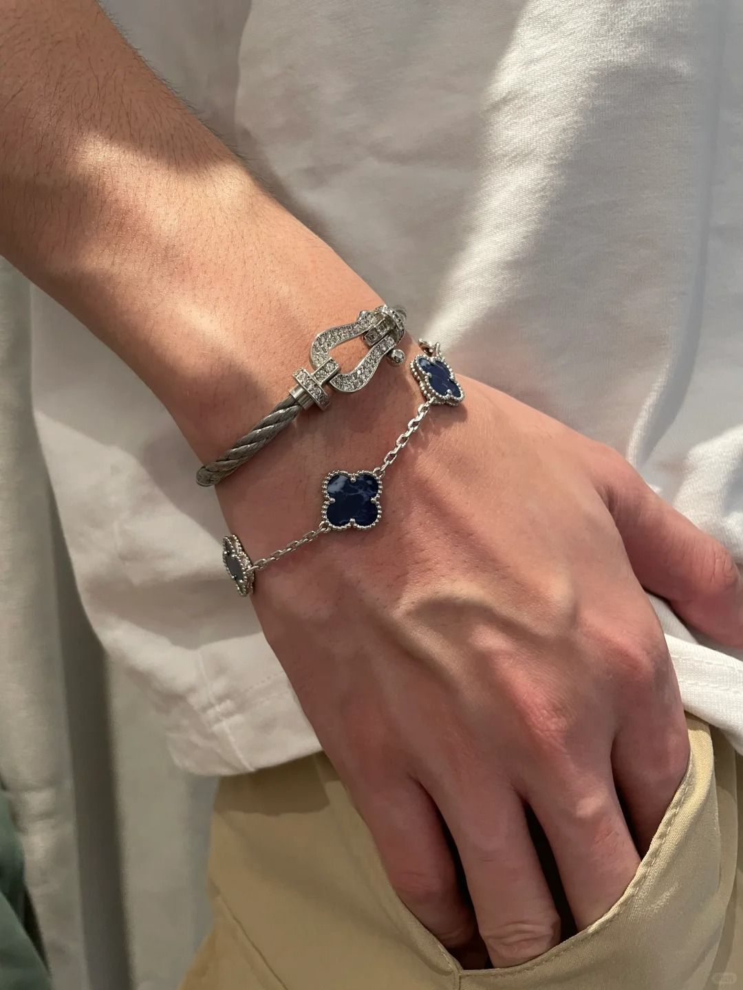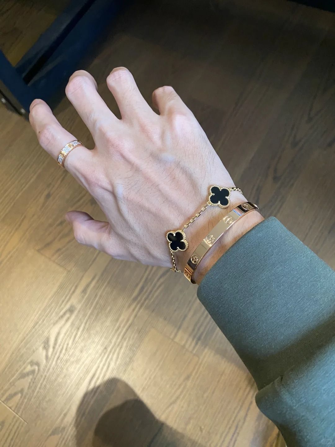 高版本幸运四叶草熊猫五花手链女玫金双面满钻智能手环送女友礼物
