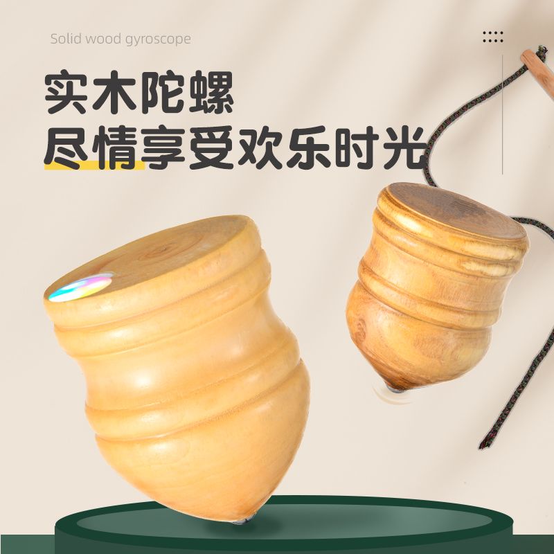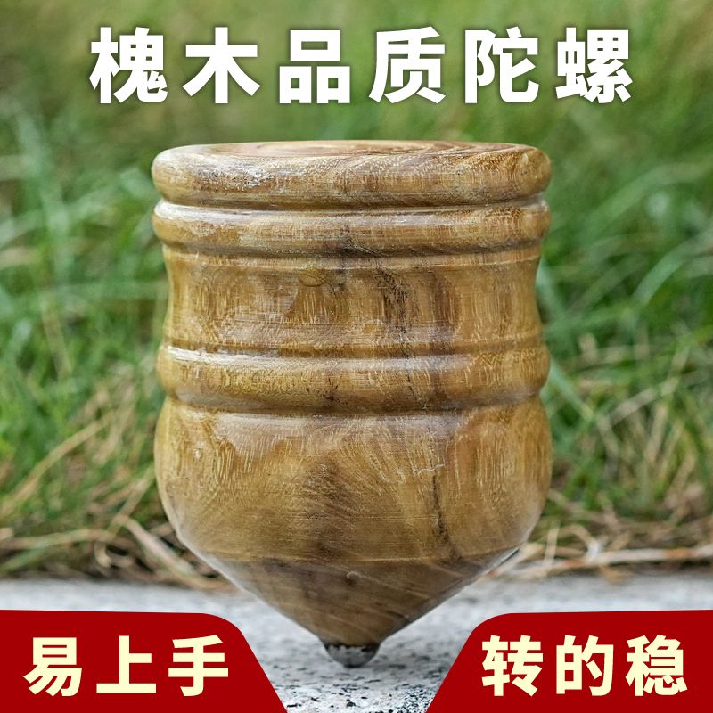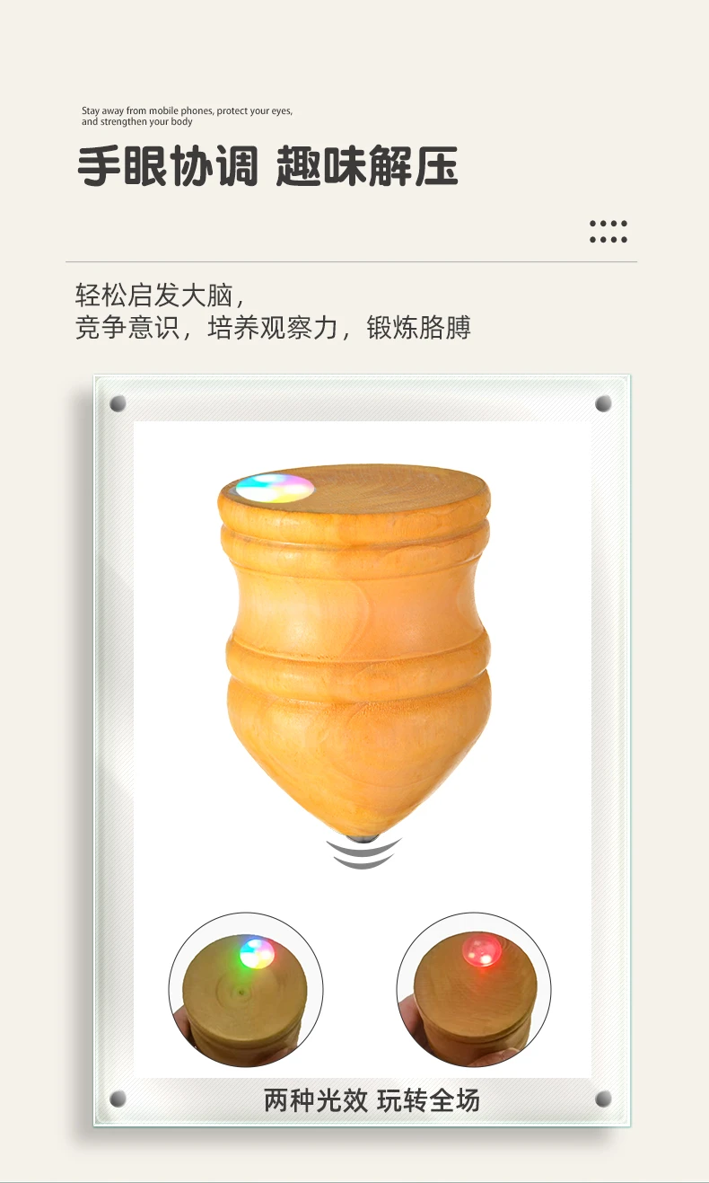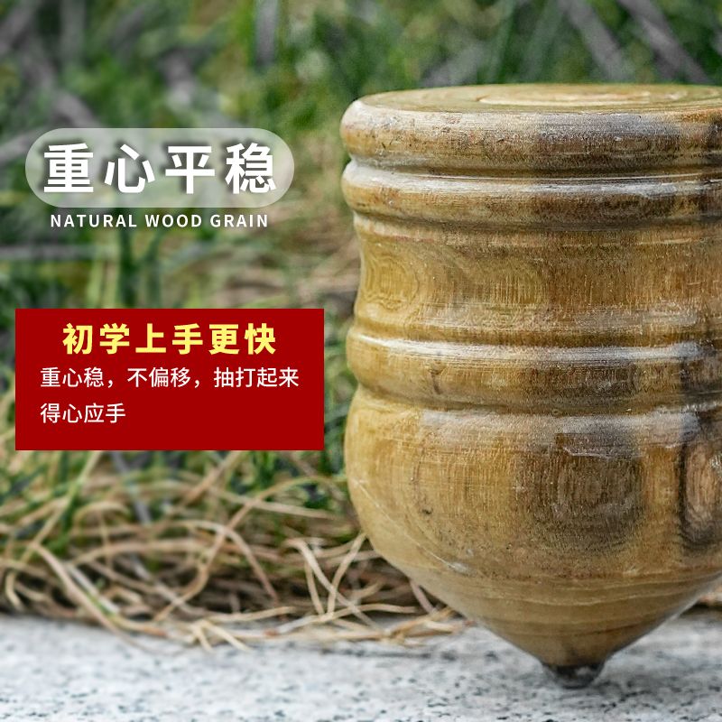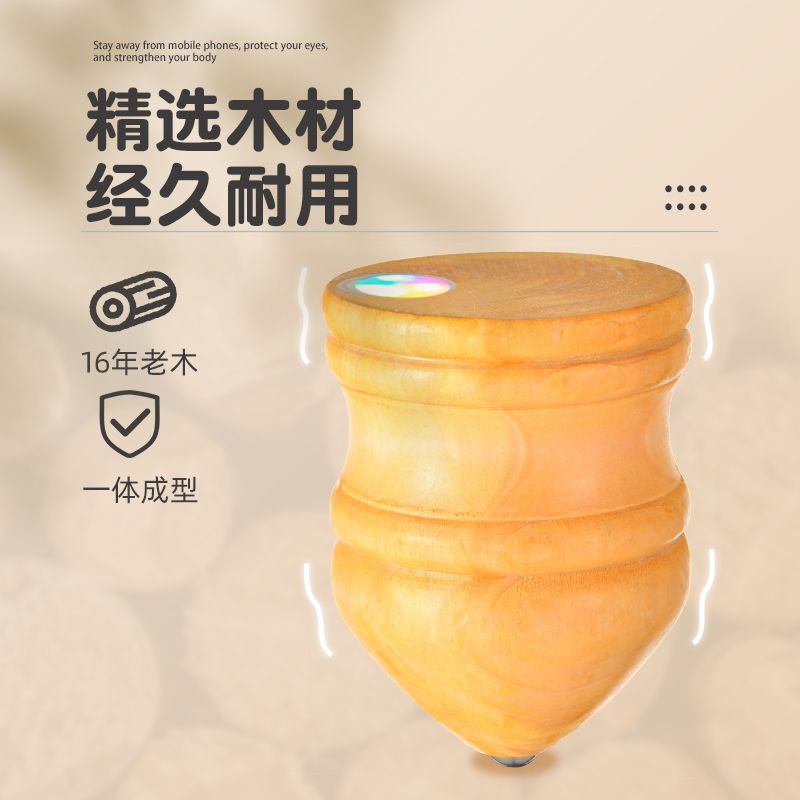 实木槐木发光陀螺儿童冰嘎鞭绳中老年成人健身80传统怀旧木质旋转