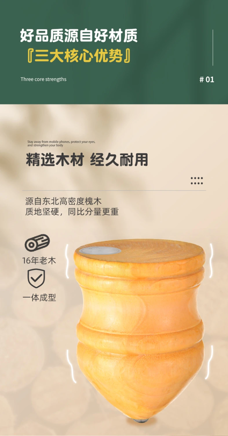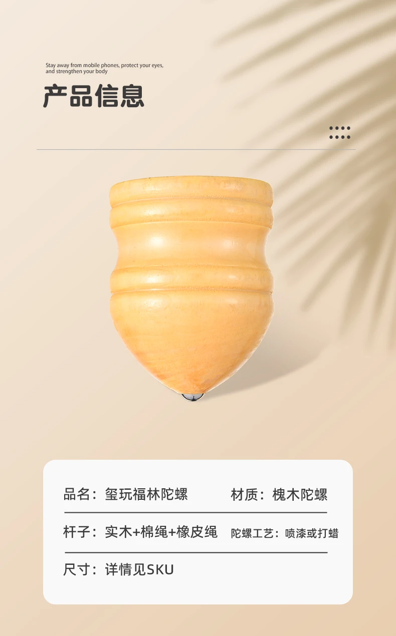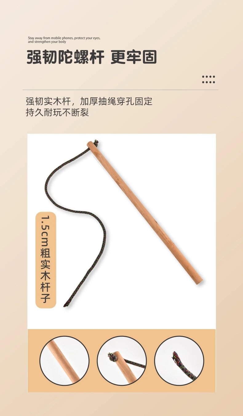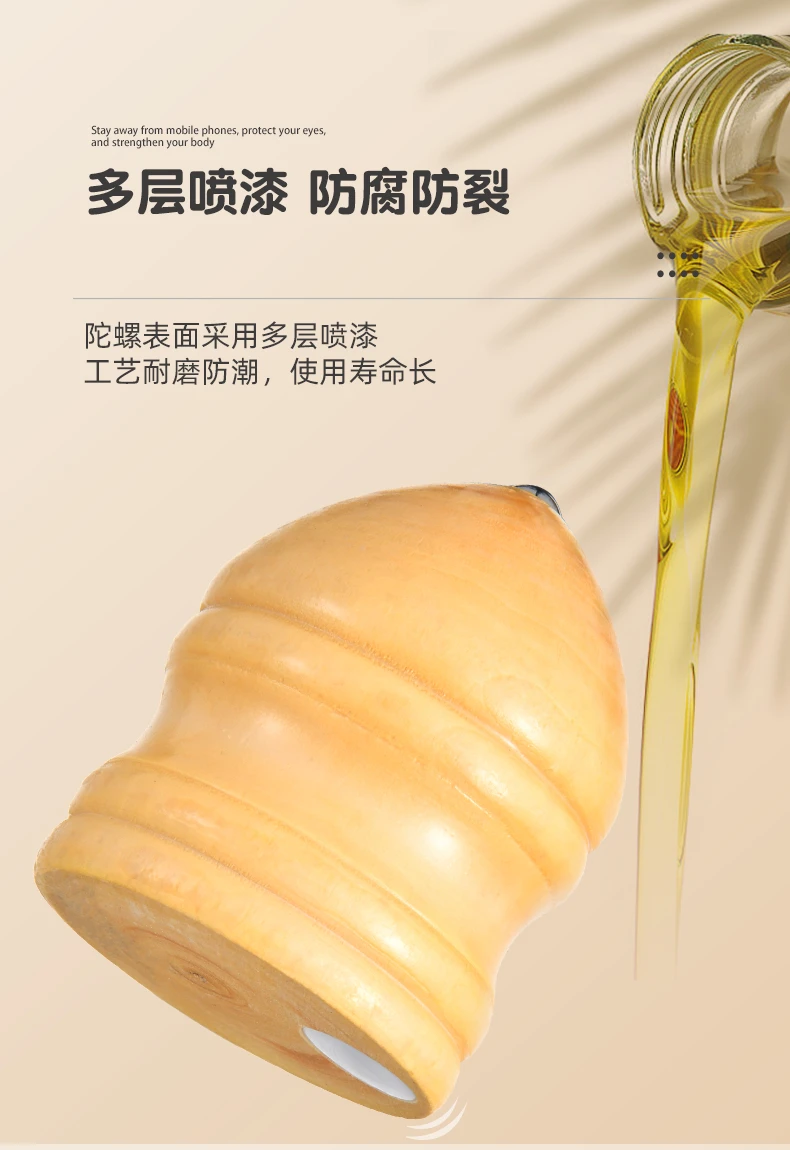 实木槐木发光陀螺儿童冰嘎鞭绳中老年成人健身80传统怀旧木质旋转
