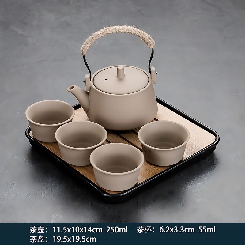 | stoneware hemp rope loop-handled teapot one pot four cups + black tea tray(粗陶麻绳提梁壶一壶四杯+黑茶盘) | USD $4.29 | 999999 piece available |