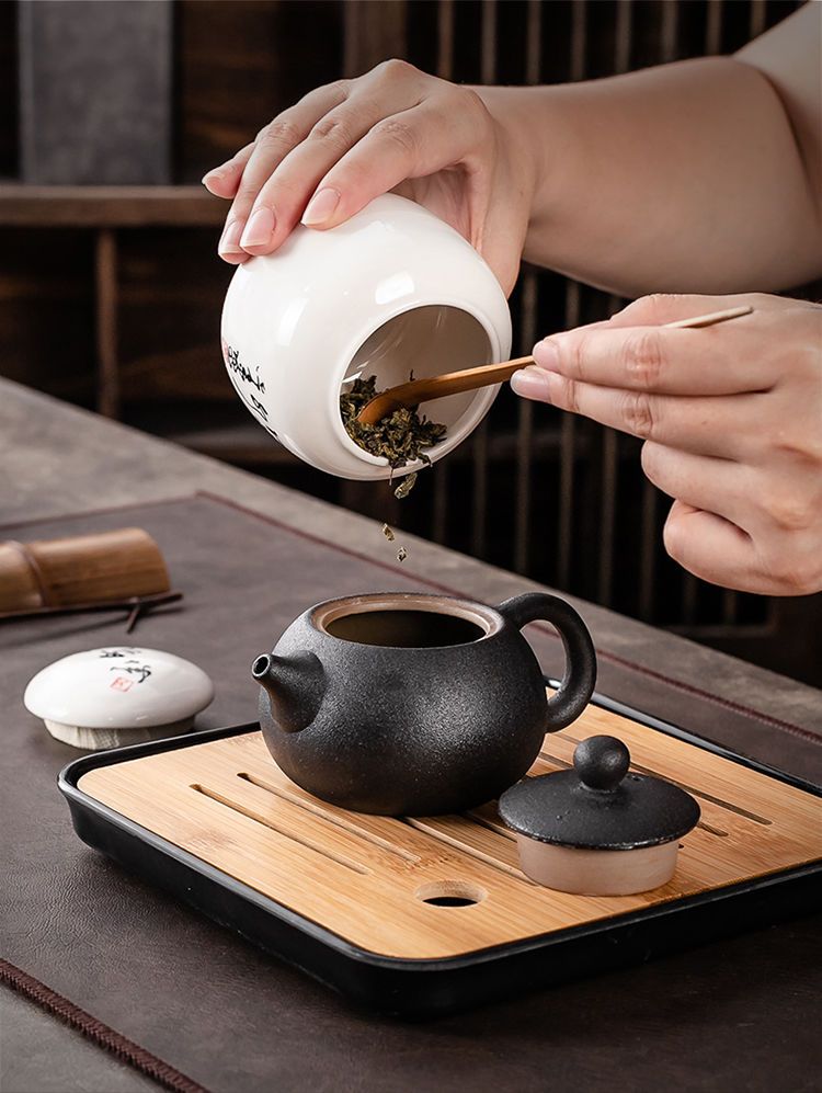 | zi-qing mei xi shi pot one pot four cups + cans + black plate + bag(梅子青西施壶一壶四杯+罐+黑盘+包) | USD $5.98 | 999999 piece available |