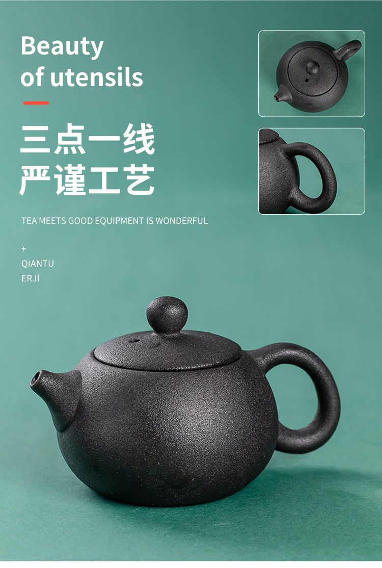 | black porcelain shipiao teapot one pot four cups + black and small square(黑陶石瓢壶一壶四杯+黑小正方) | USD $4.5 | 999999 piece available |