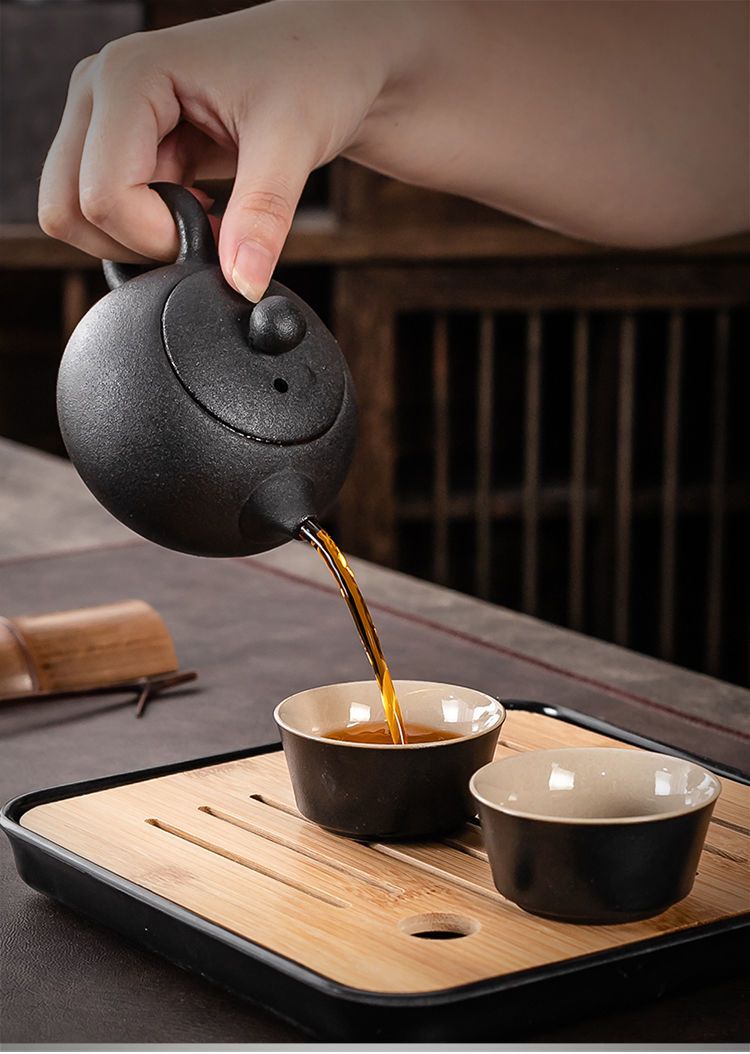 | black porcelain manhole pot one pot four cups + black small square plate(黑陶井栏壶一壶四杯+黑小正方盘) | USD $4.5 | 999999 piece available |