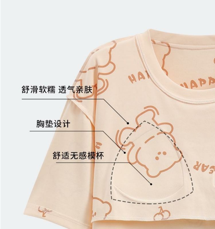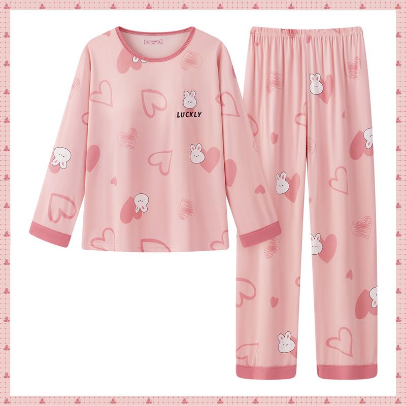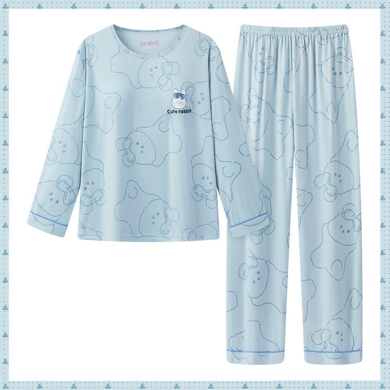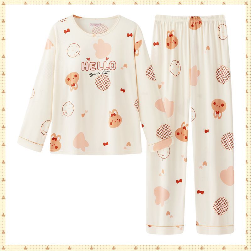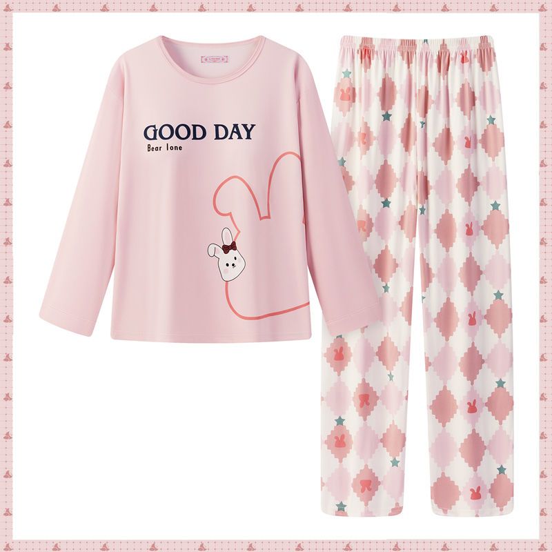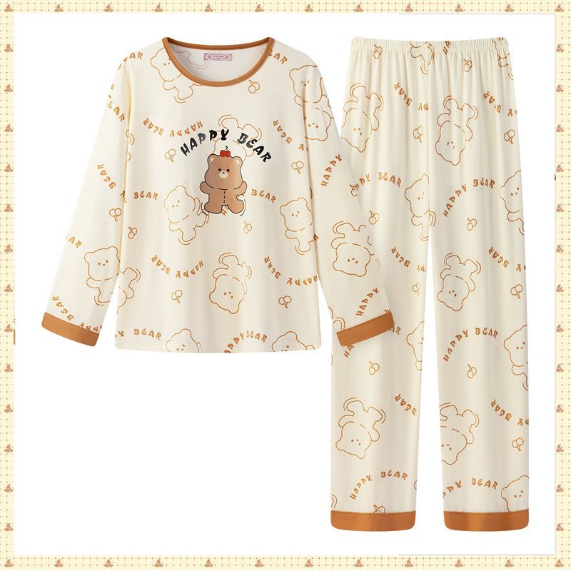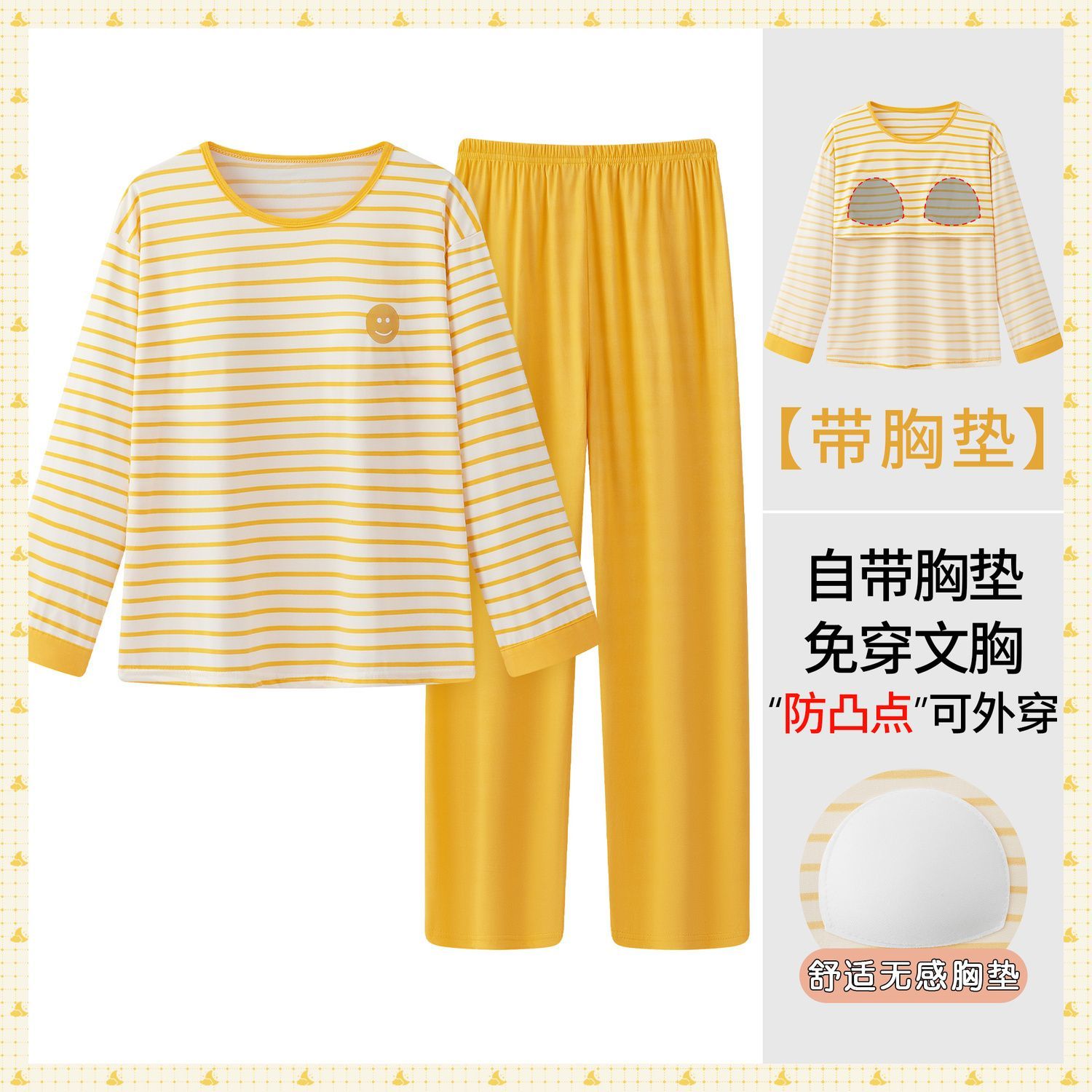纯棉睡衣女100%全棉带胸垫睡衣女秋冬长袖卡通学生宿舍家居服套装