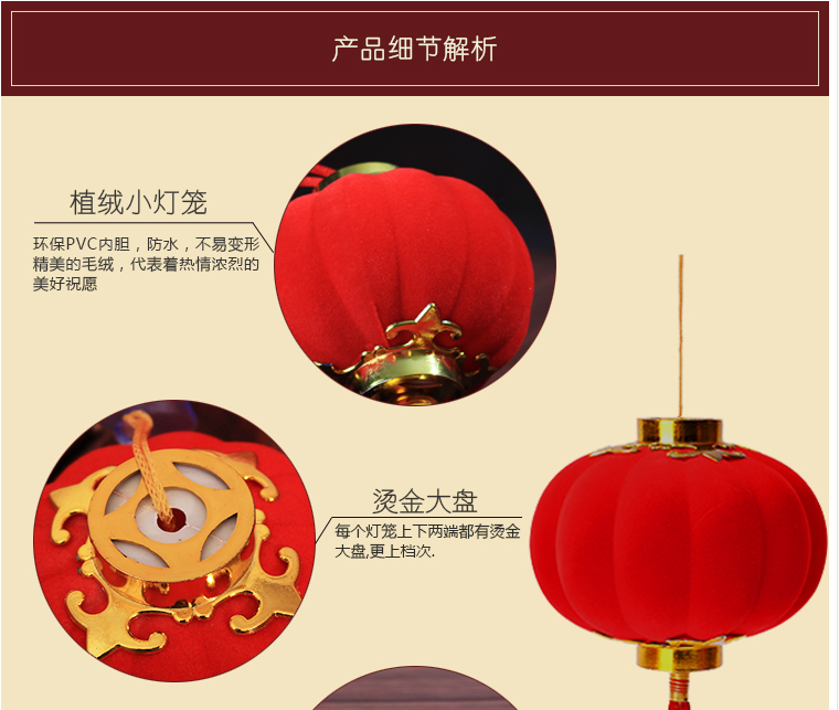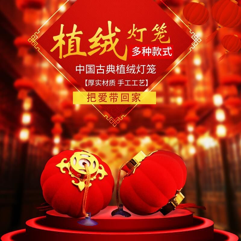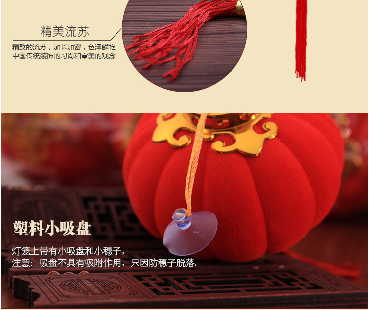 大红灯笼小灯笼挂饰户外盆景灯笼挂件中式节日喜庆结婚植绒灯笼