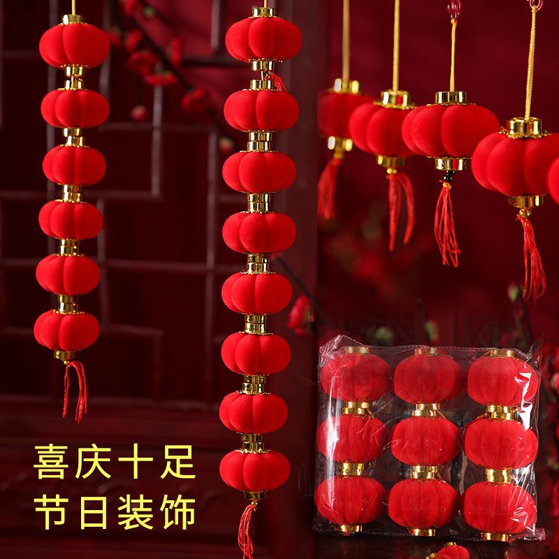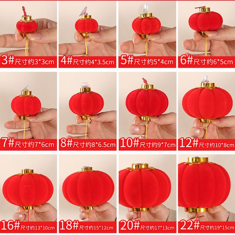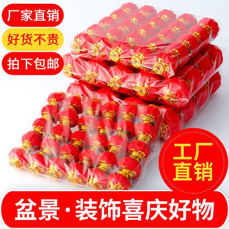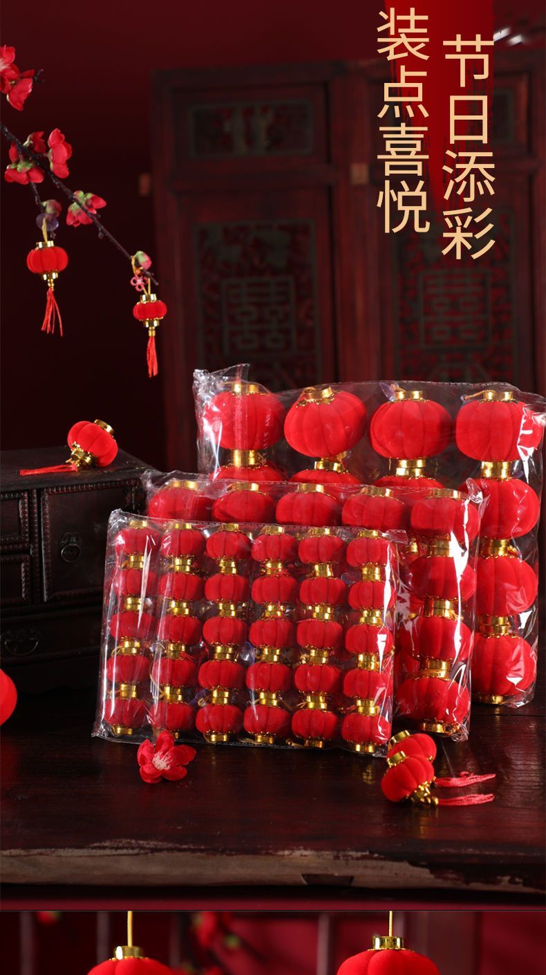 新年植绒小红灯笼树上盆景灯笼挂件小饰品春节室内阳台小灯笼批发