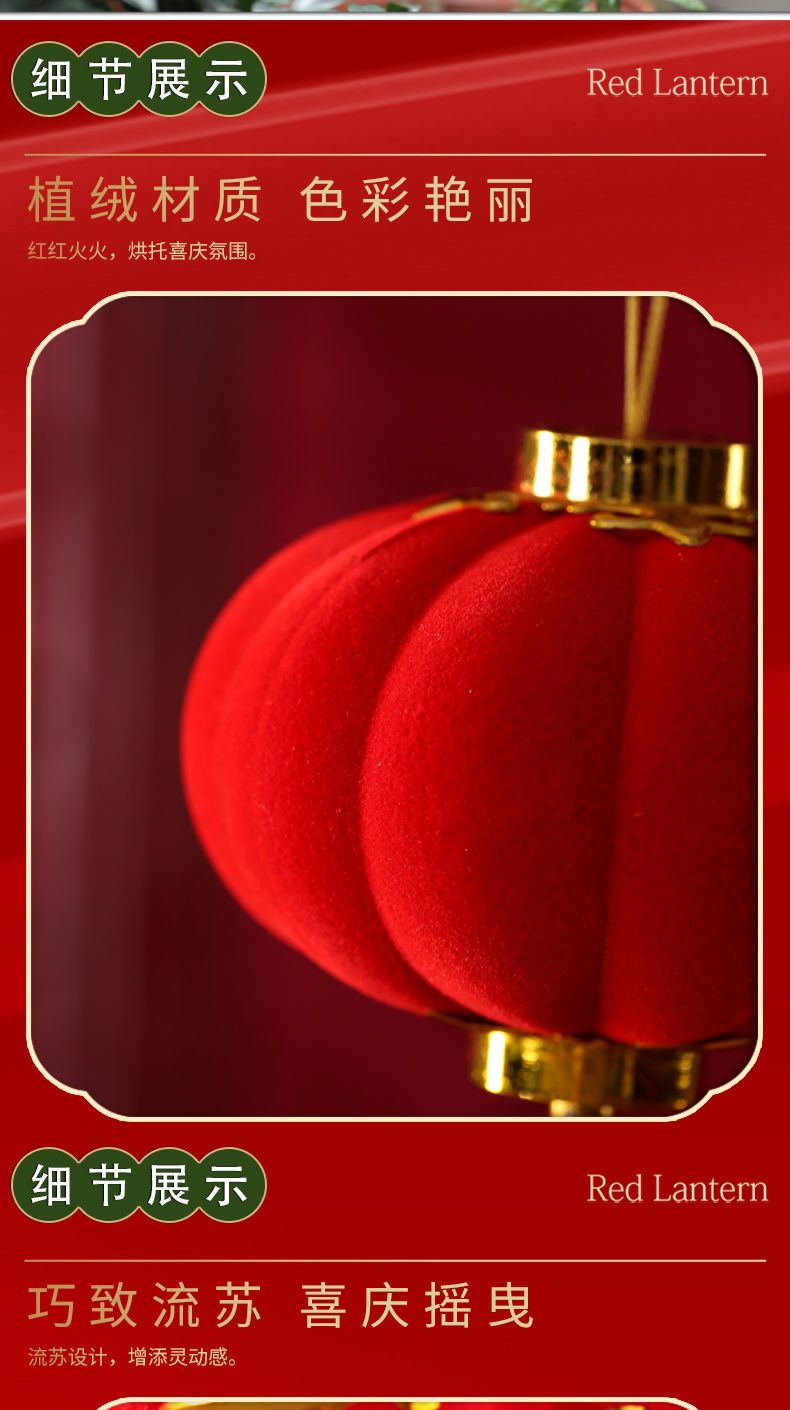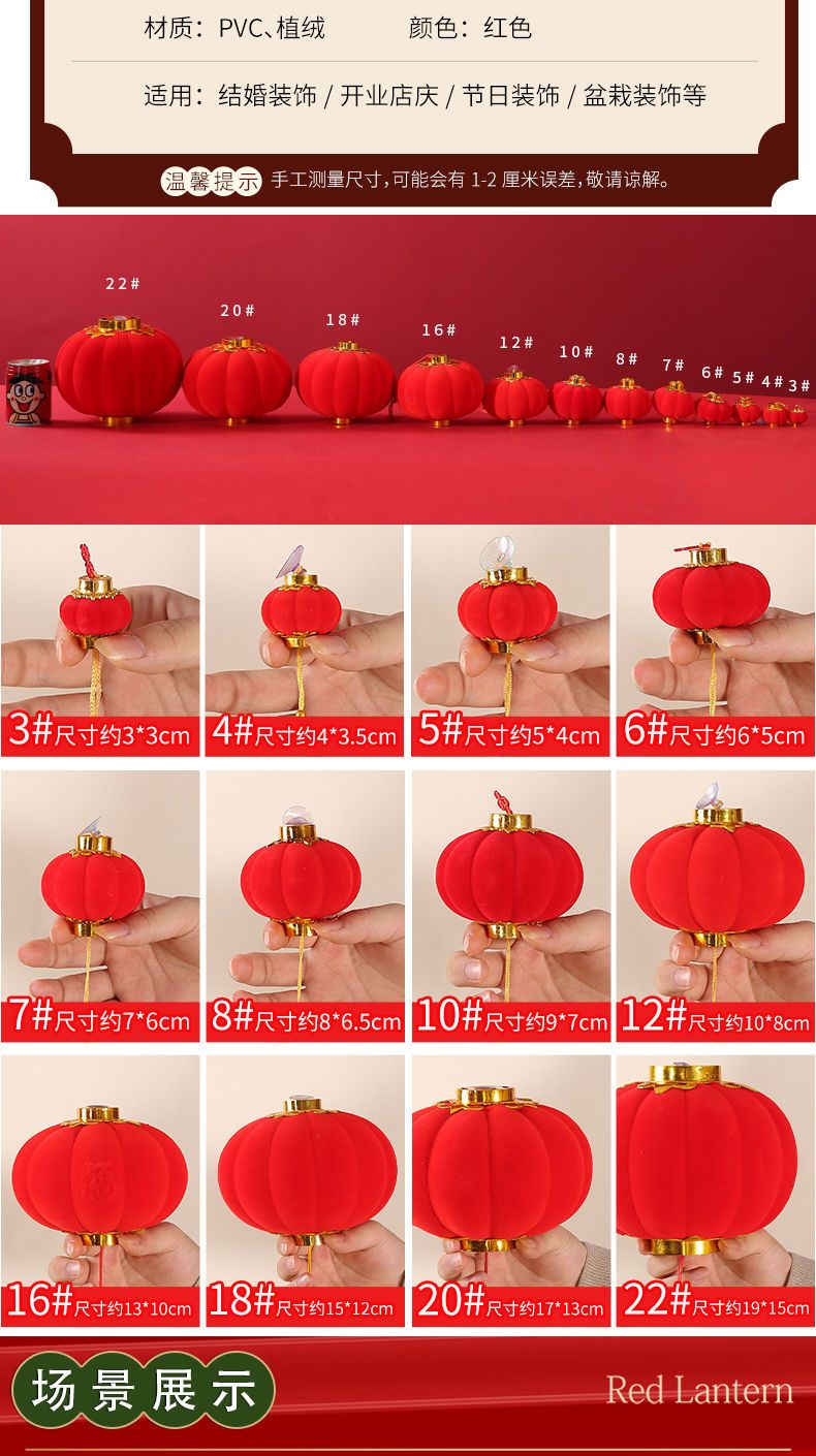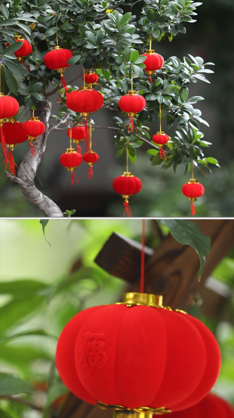 新年植绒小红灯笼树上盆景灯笼挂件小饰品春节室内阳台小灯笼批发