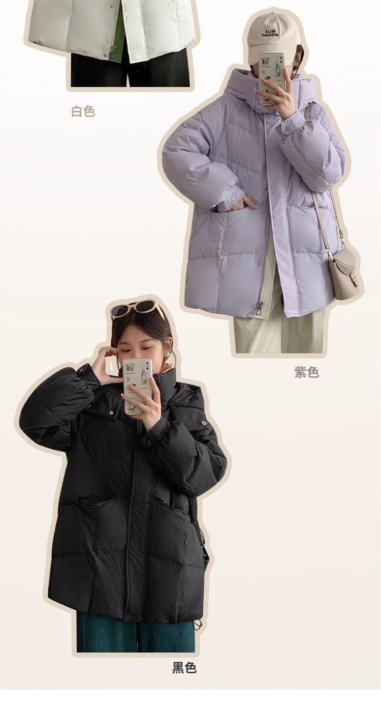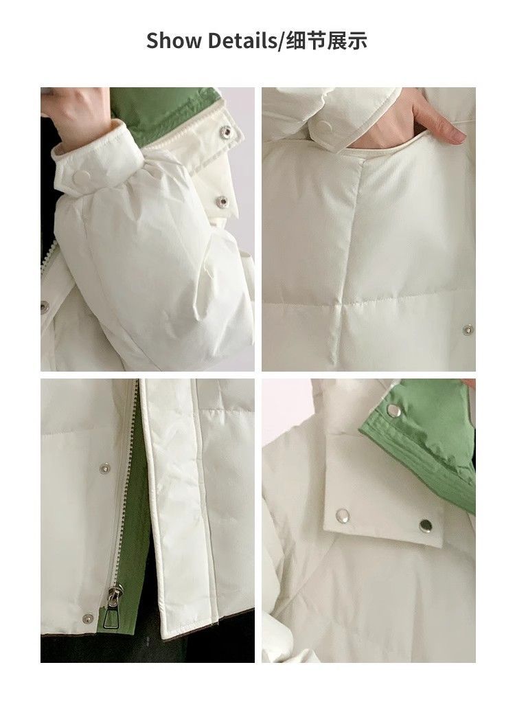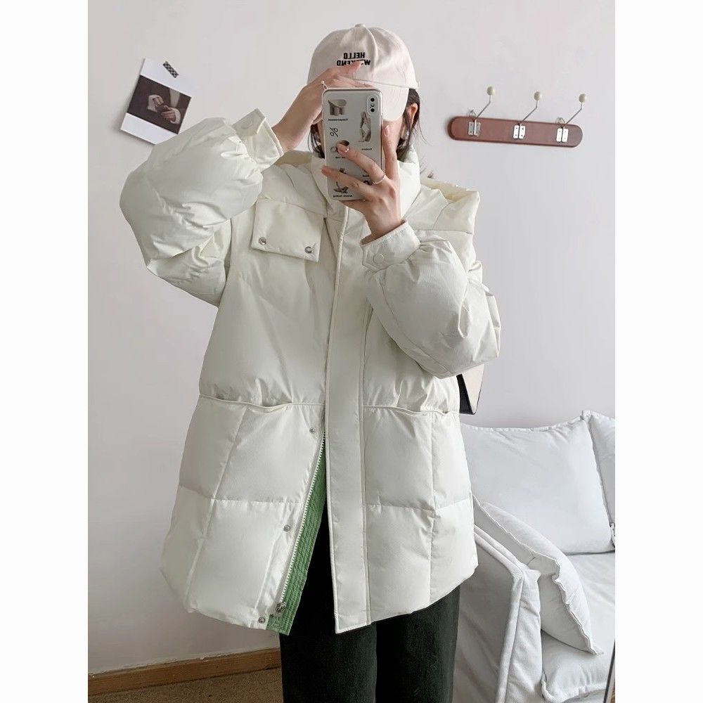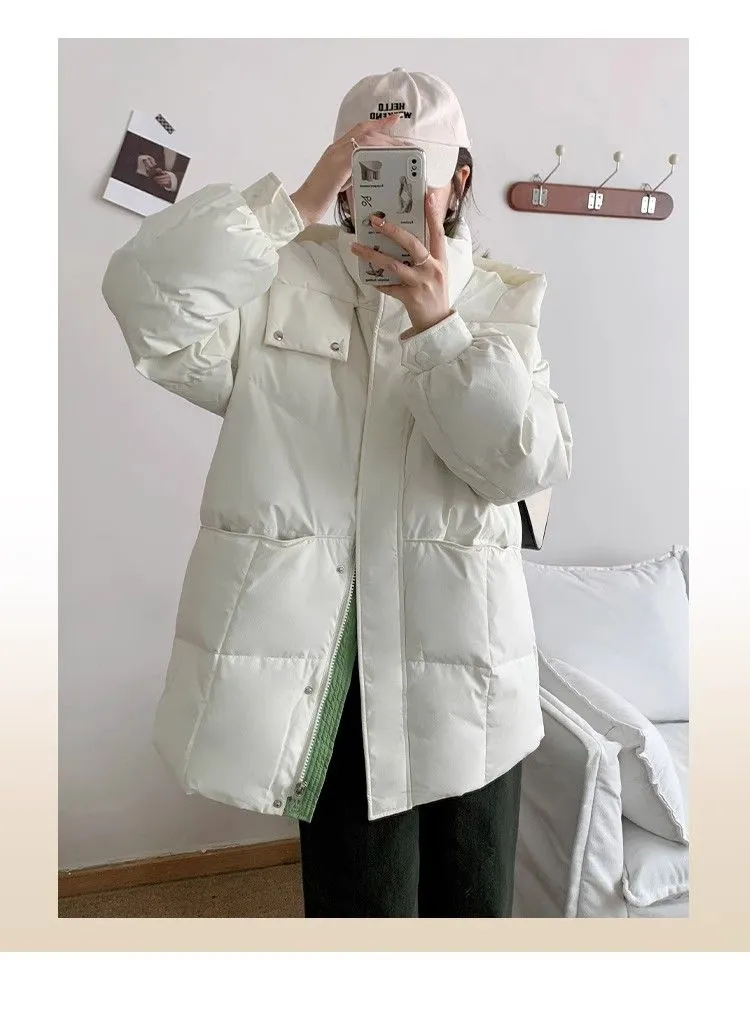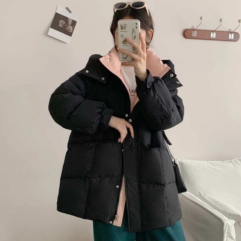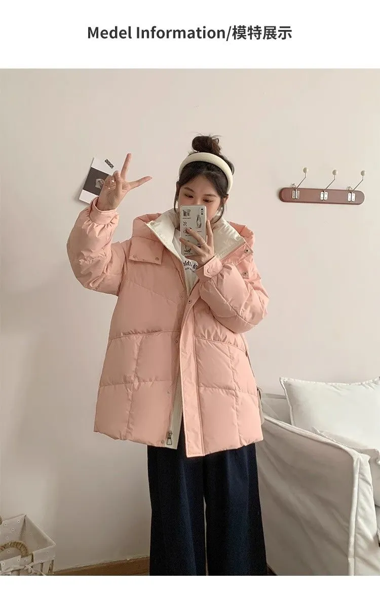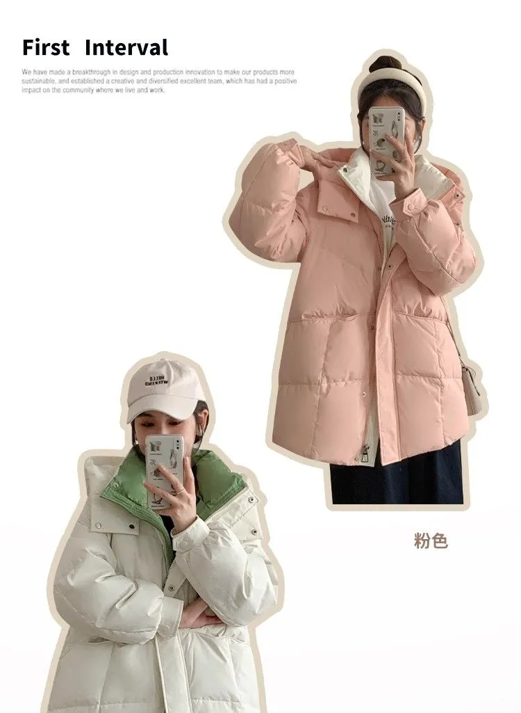 白鸭绒羽绒服女中长款2024新款韩版撞色宽松加厚保暖学生冬季外套