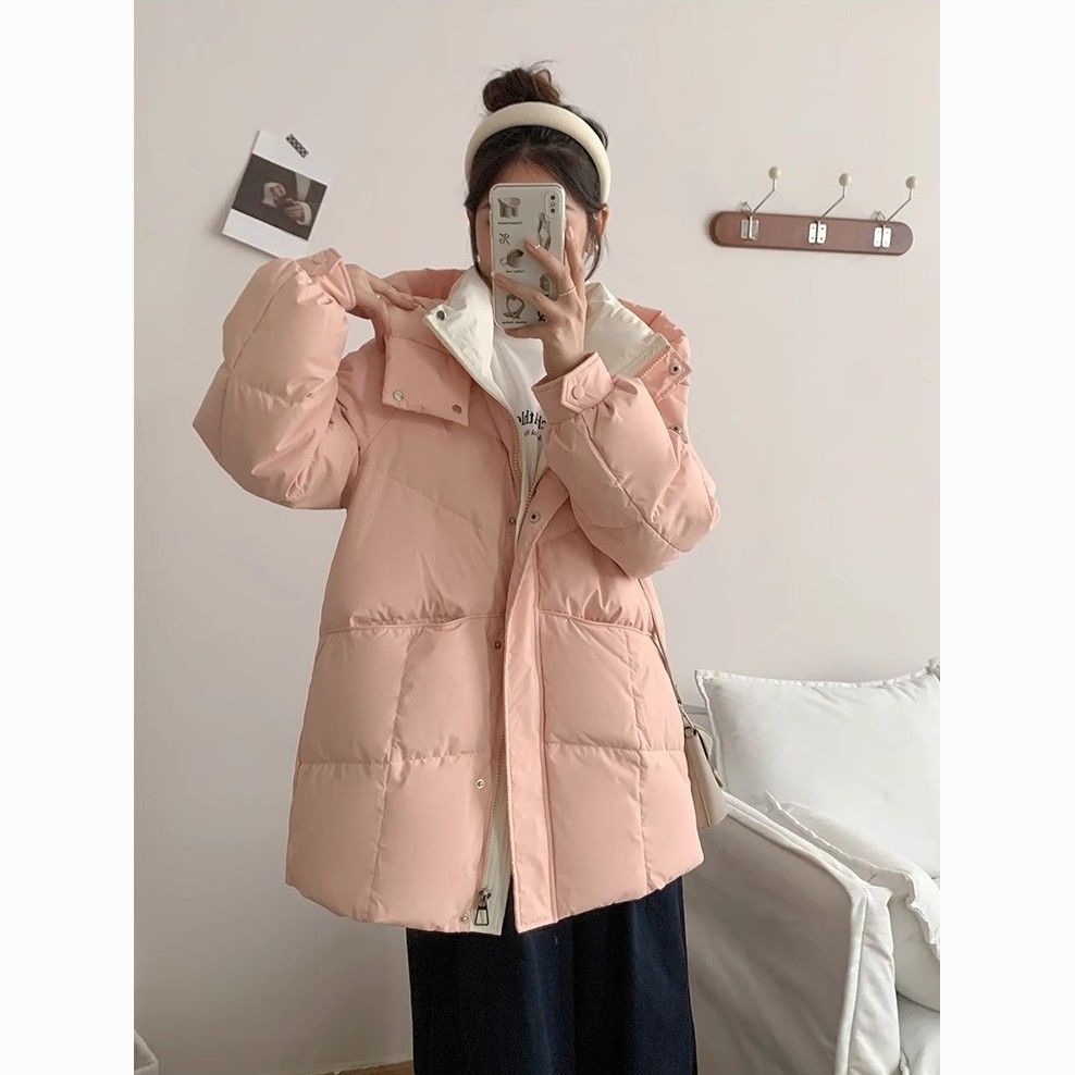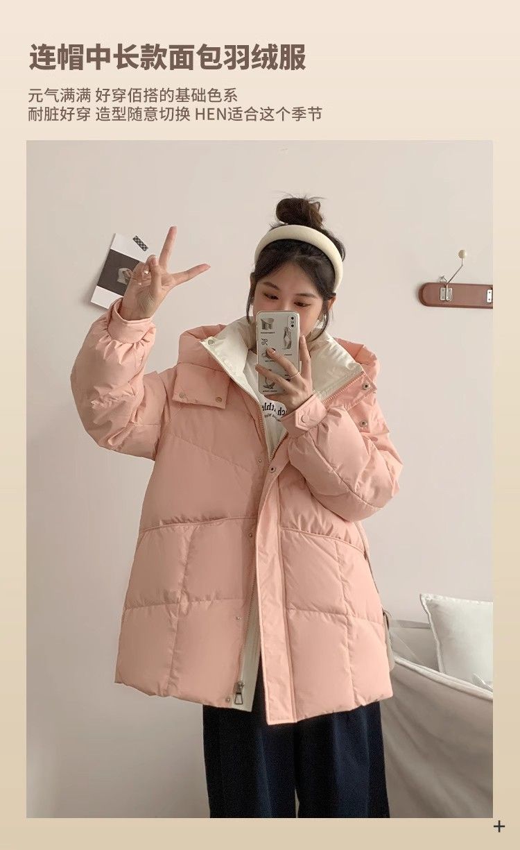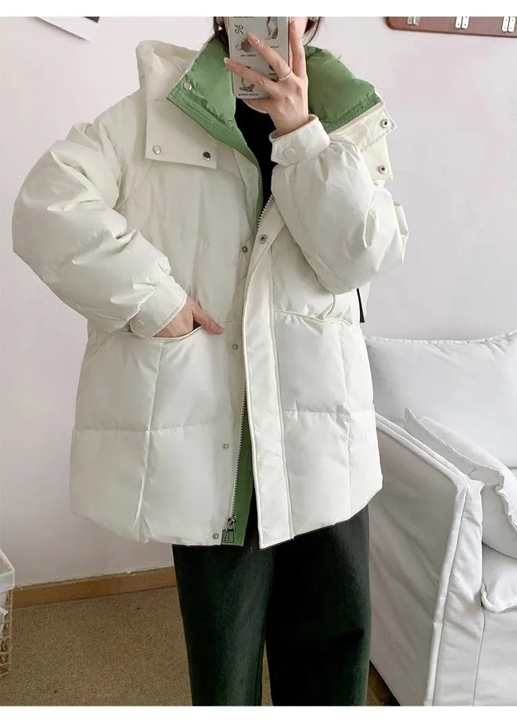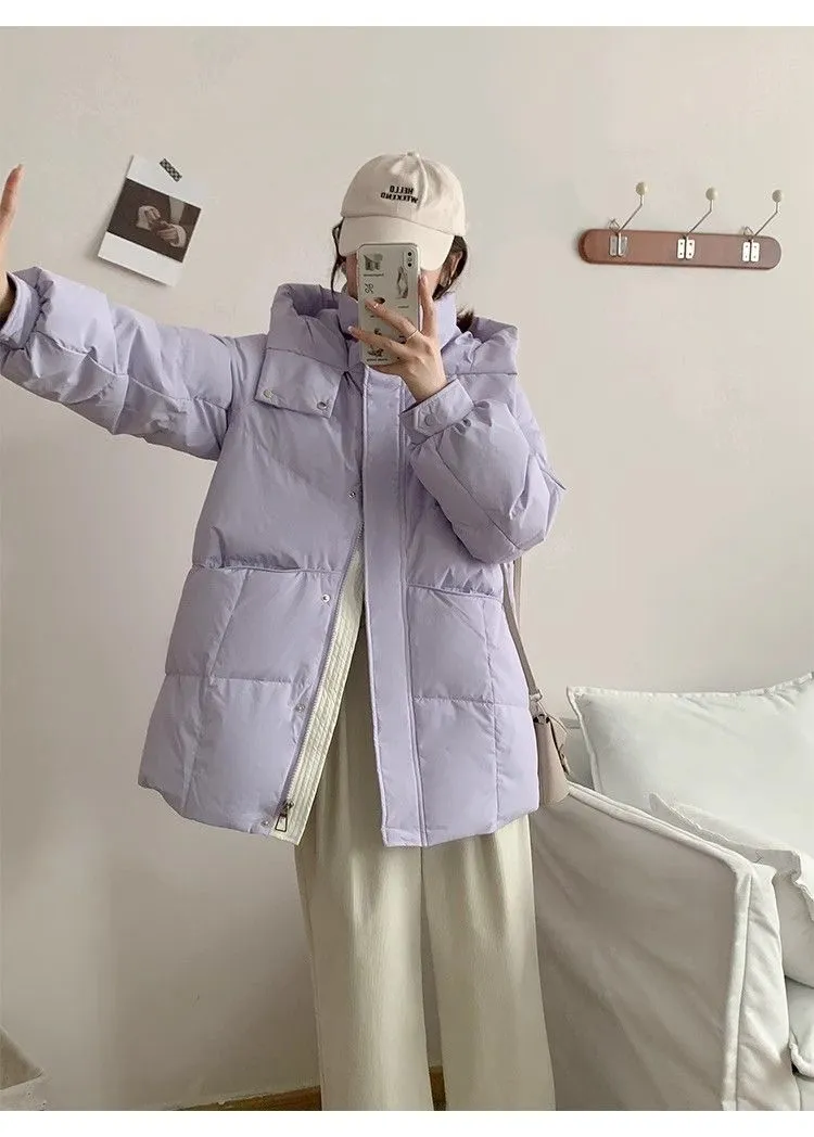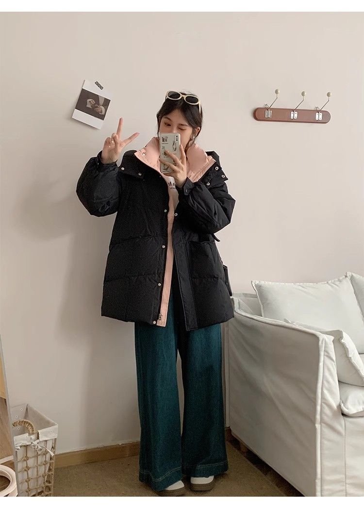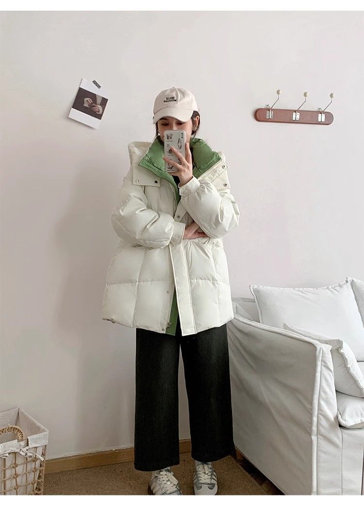 白鸭绒羽绒服女中长款2024新款韩版撞色宽松加厚保暖学生冬季外套