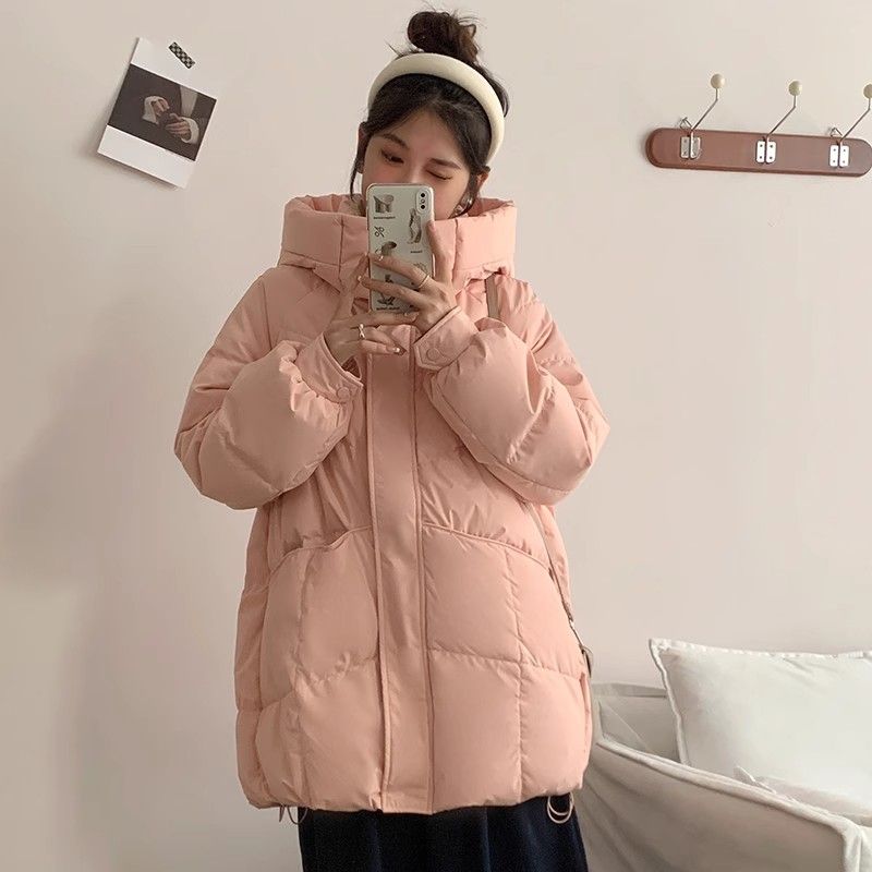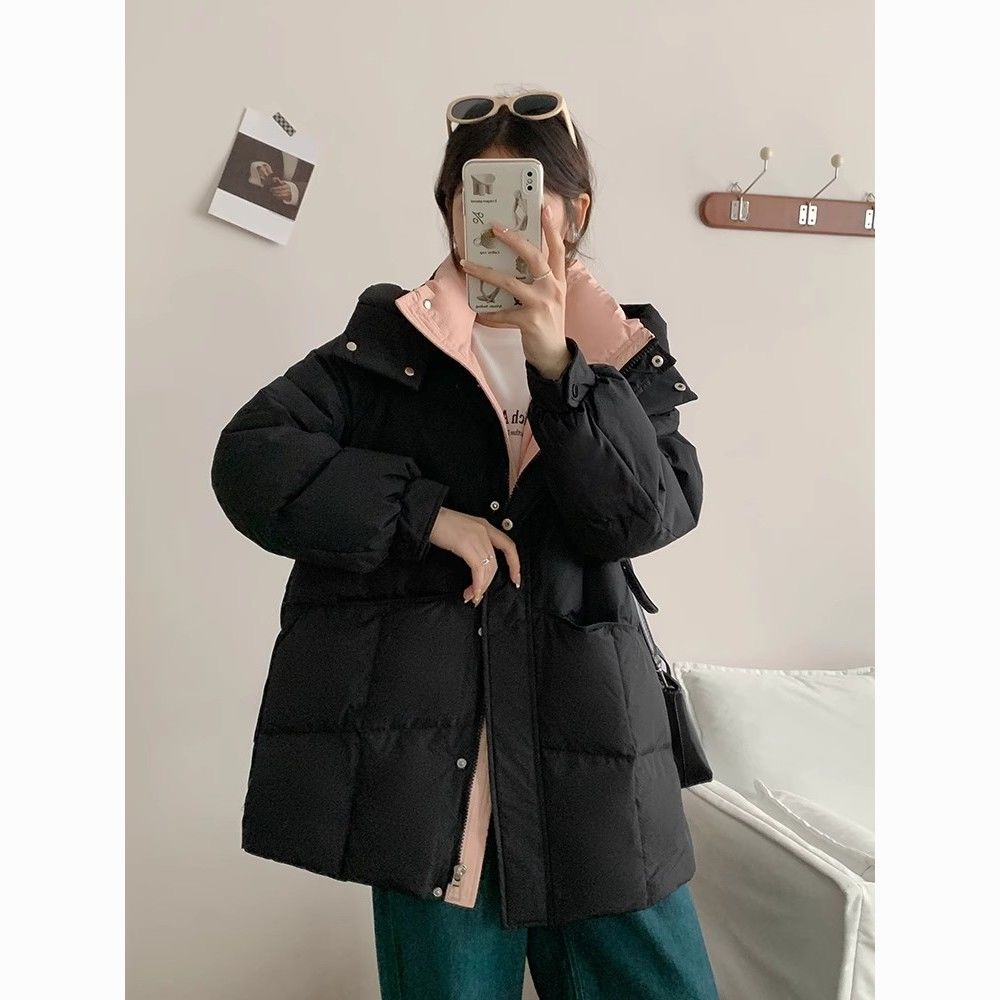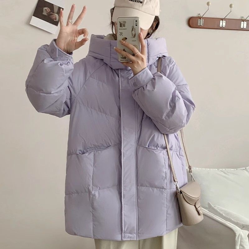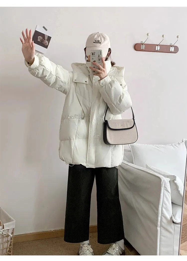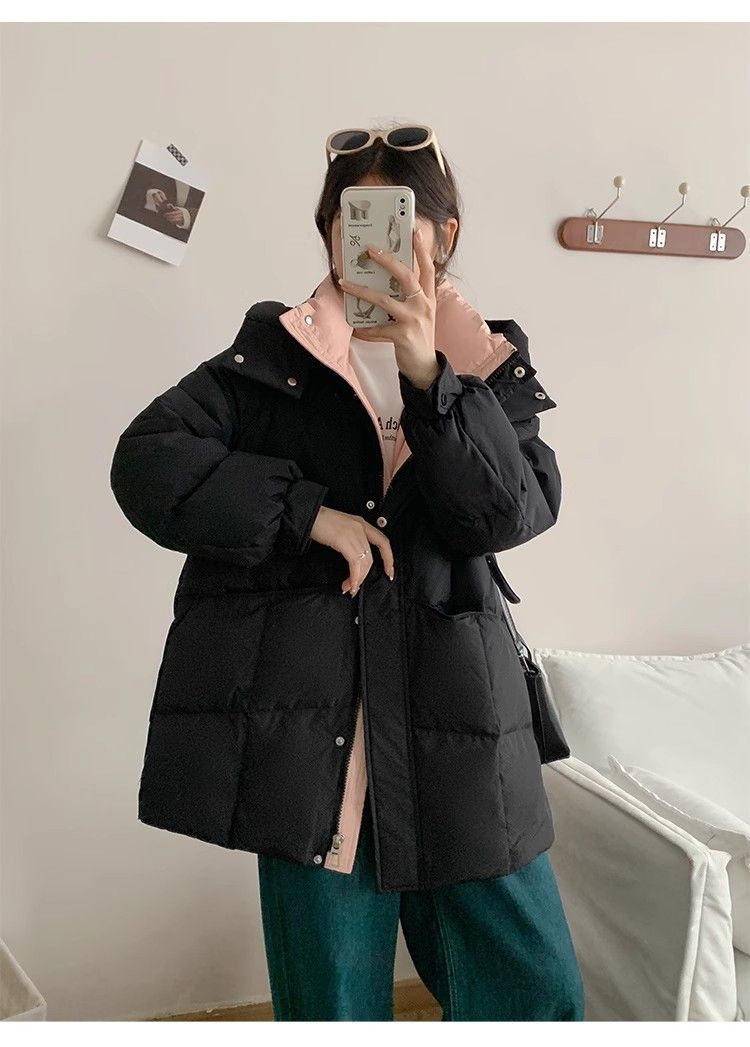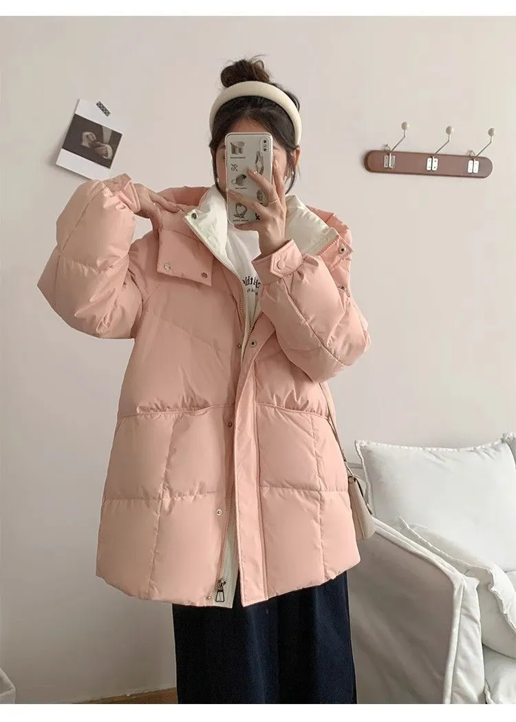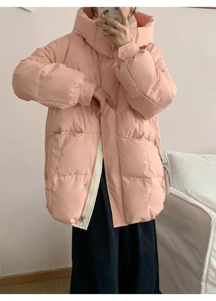 白鸭绒羽绒服女中长款2024新款韩版撞色宽松加厚保暖学生冬季外套
