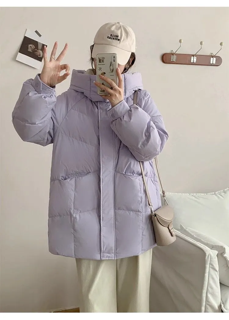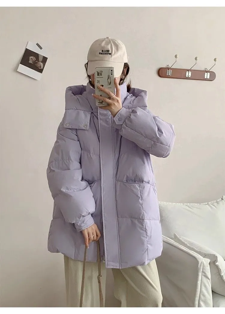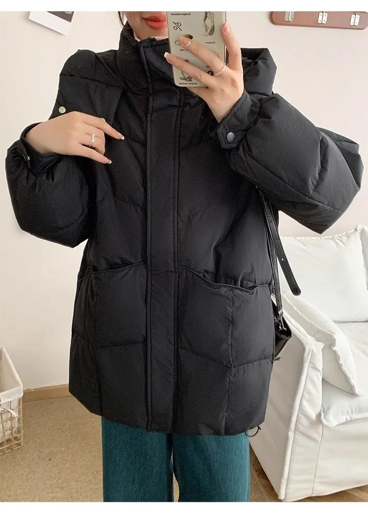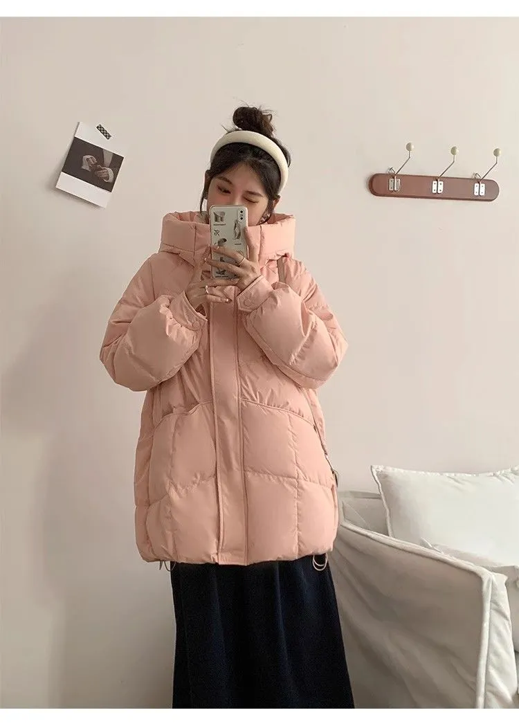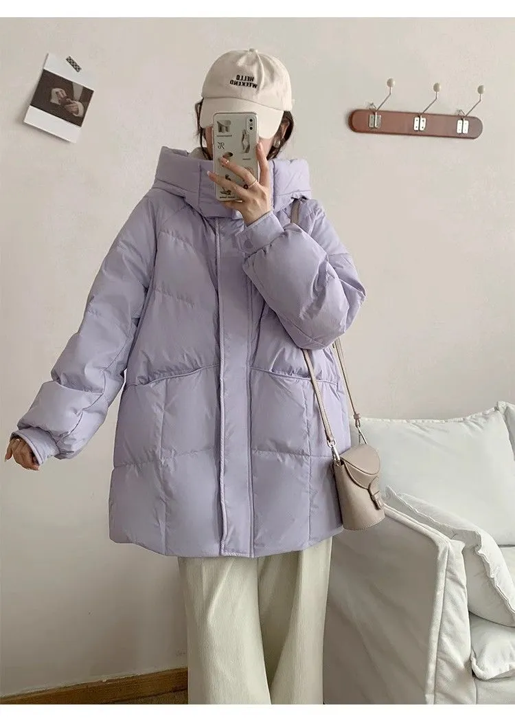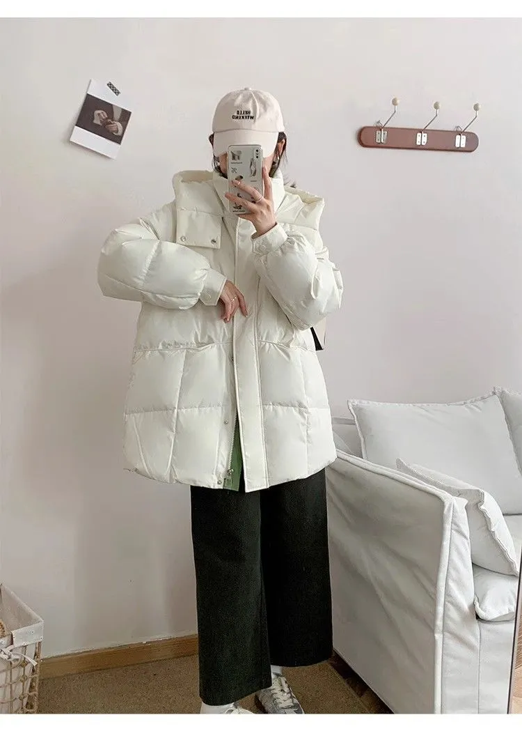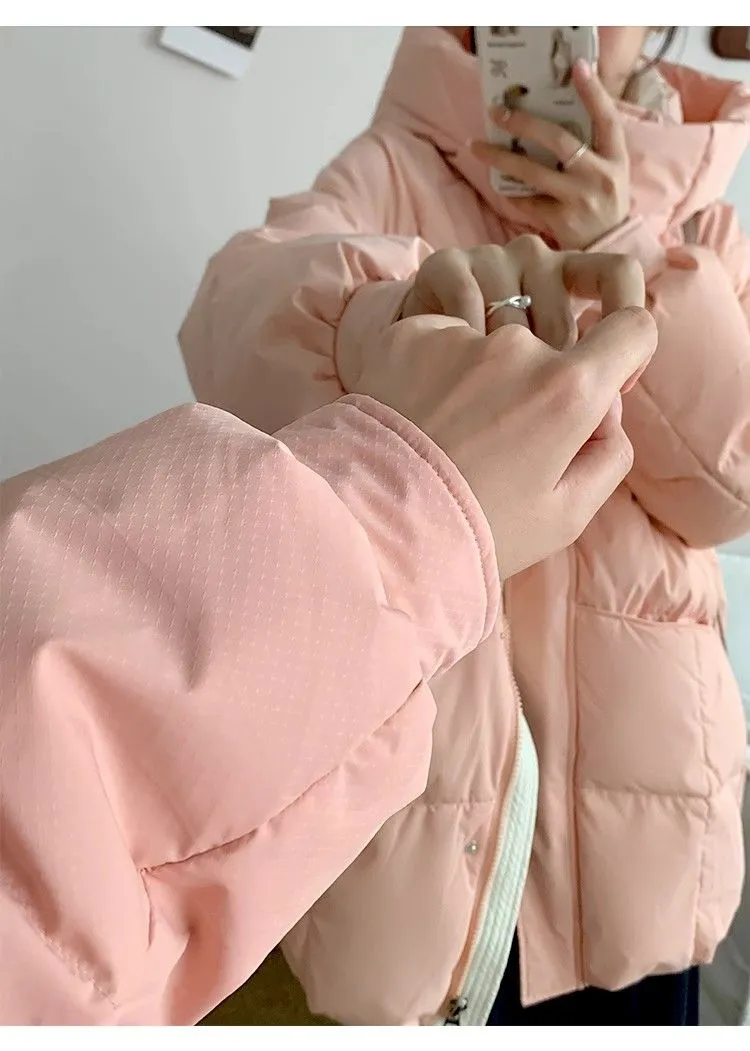 白鸭绒羽绒服女中长款2024新款韩版撞色宽松加厚保暖学生冬季外套