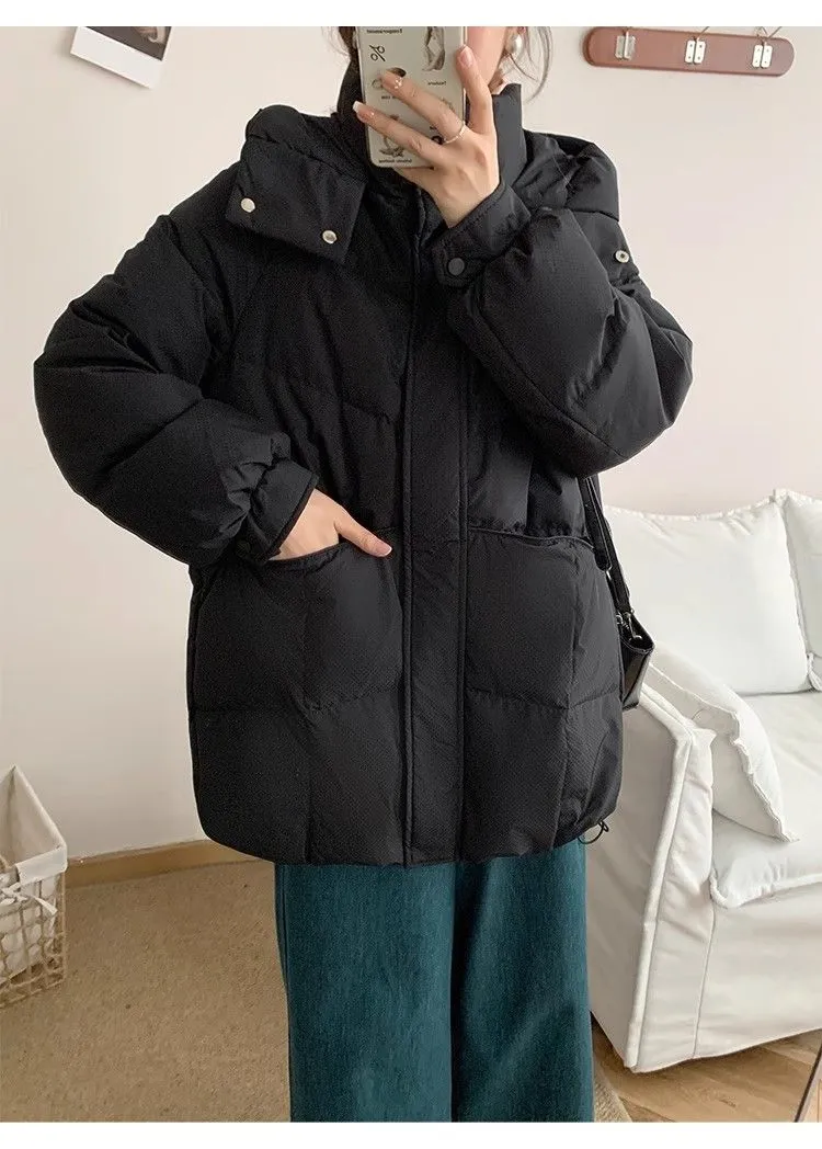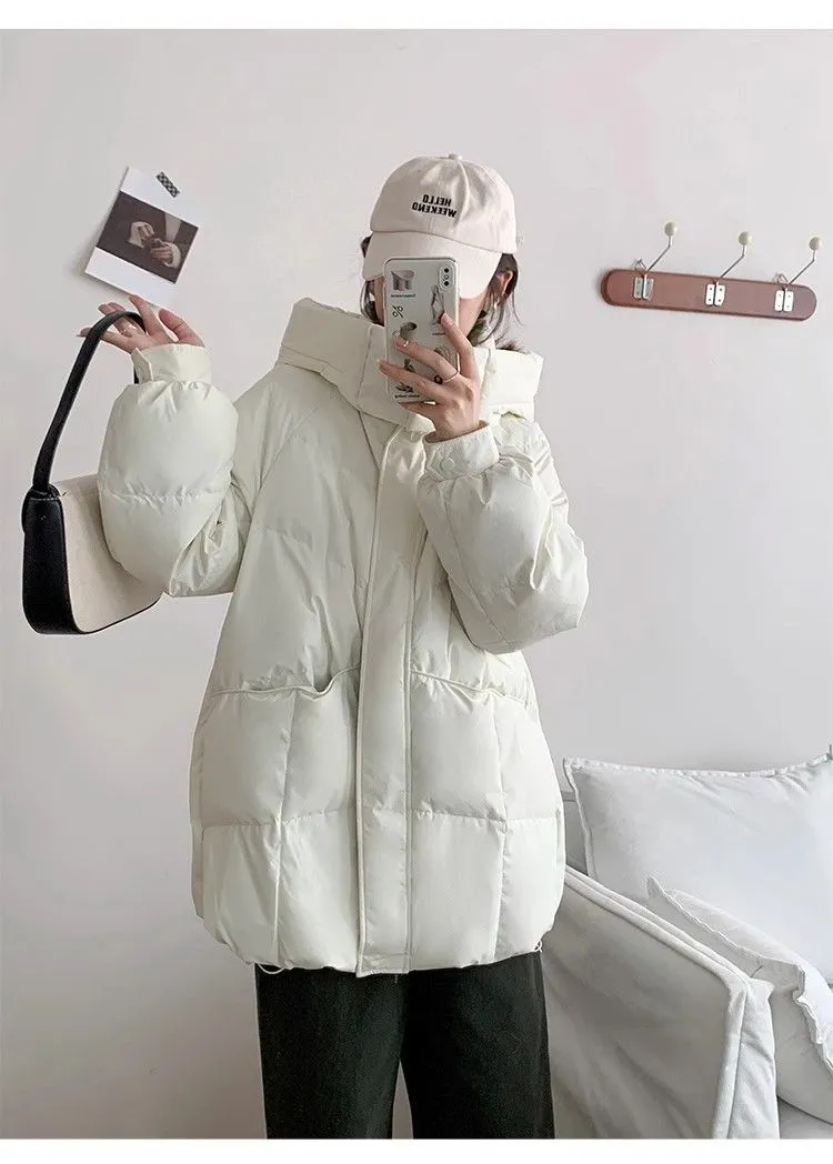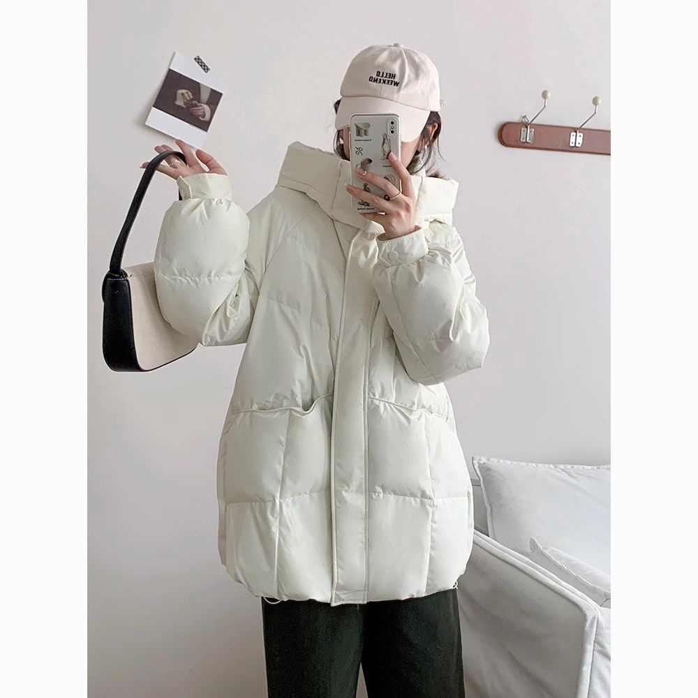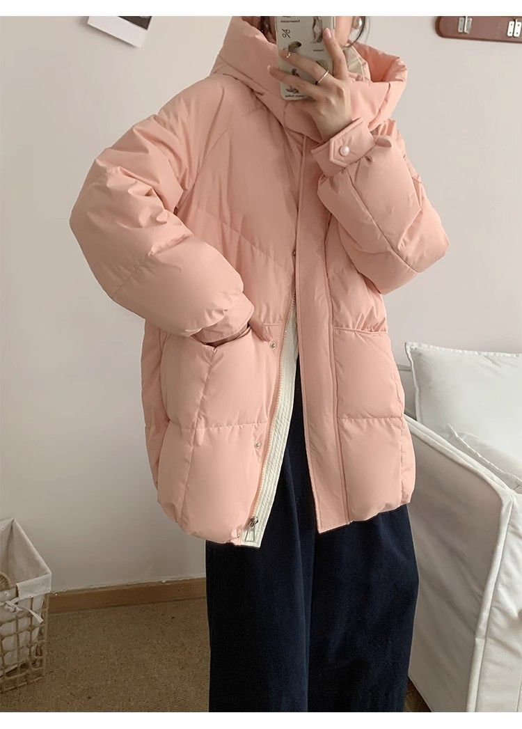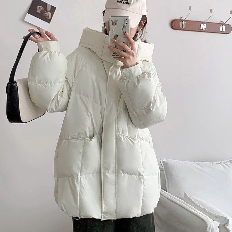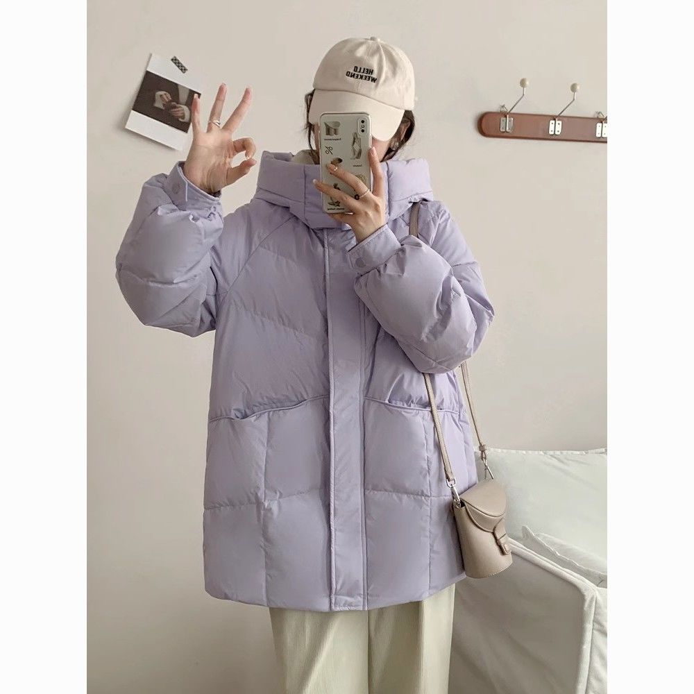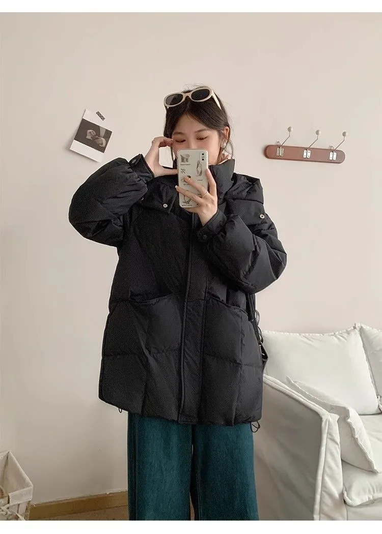 白鸭绒羽绒服女中长款2024新款韩版撞色宽松加厚保暖学生冬季外套