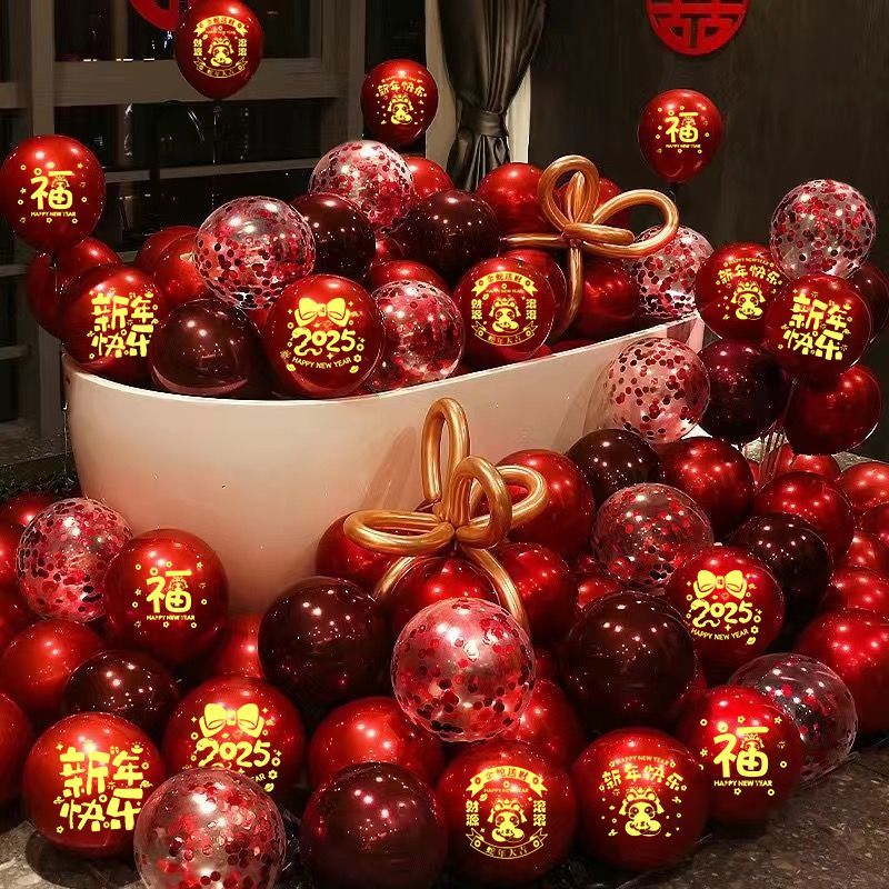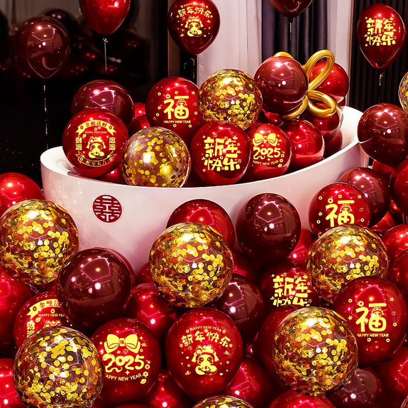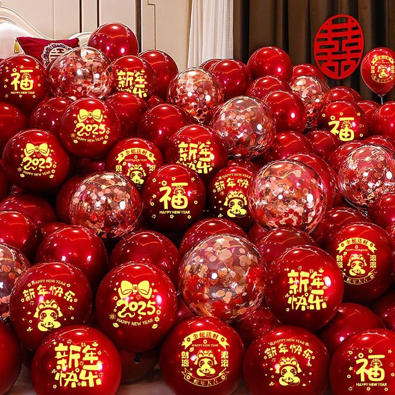 2025蛇年新年气球装饰红色元旦跨年幼儿园店铺活动氛围场景布置
