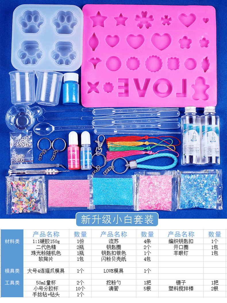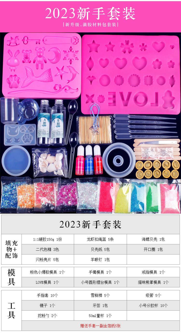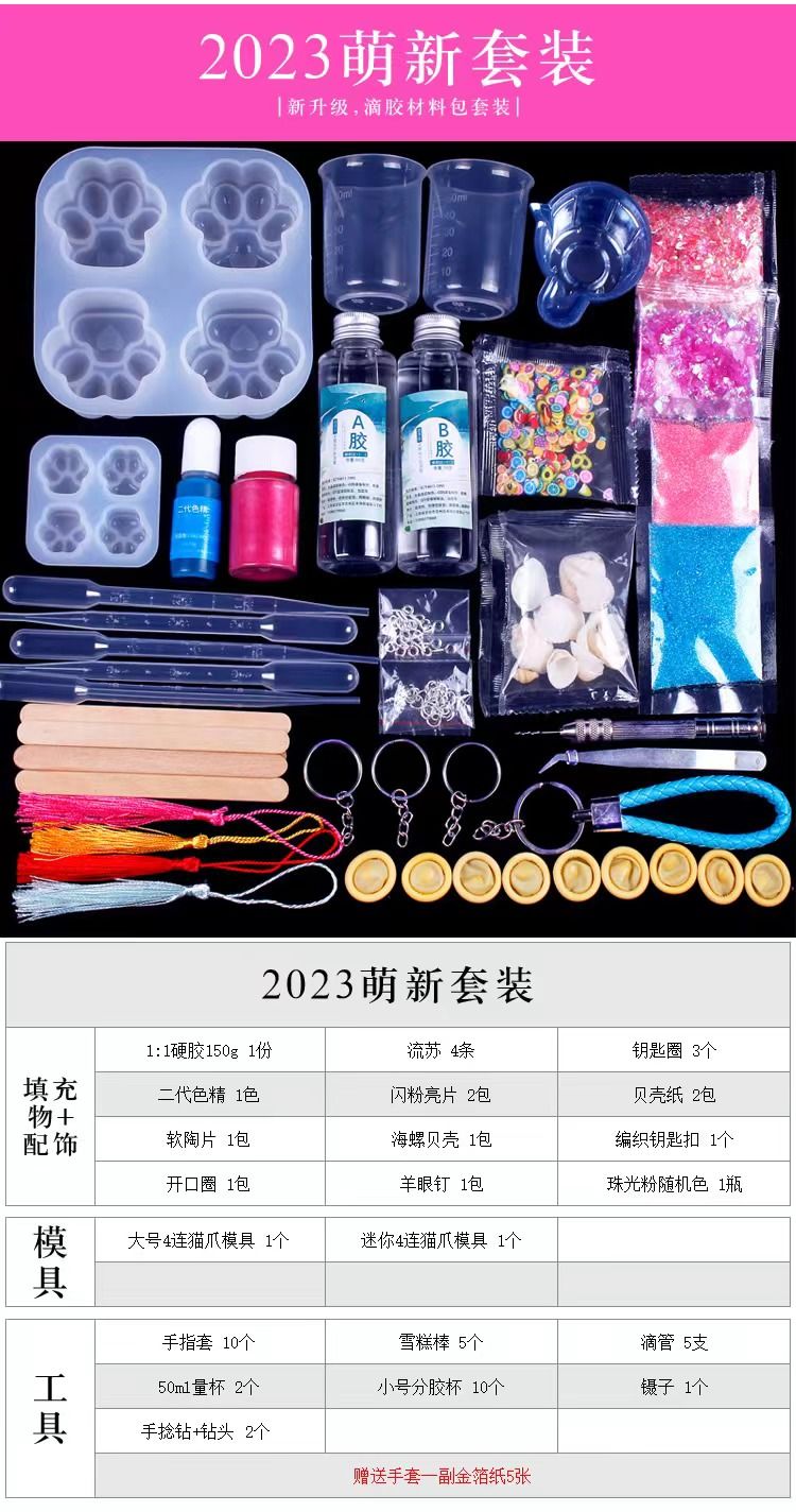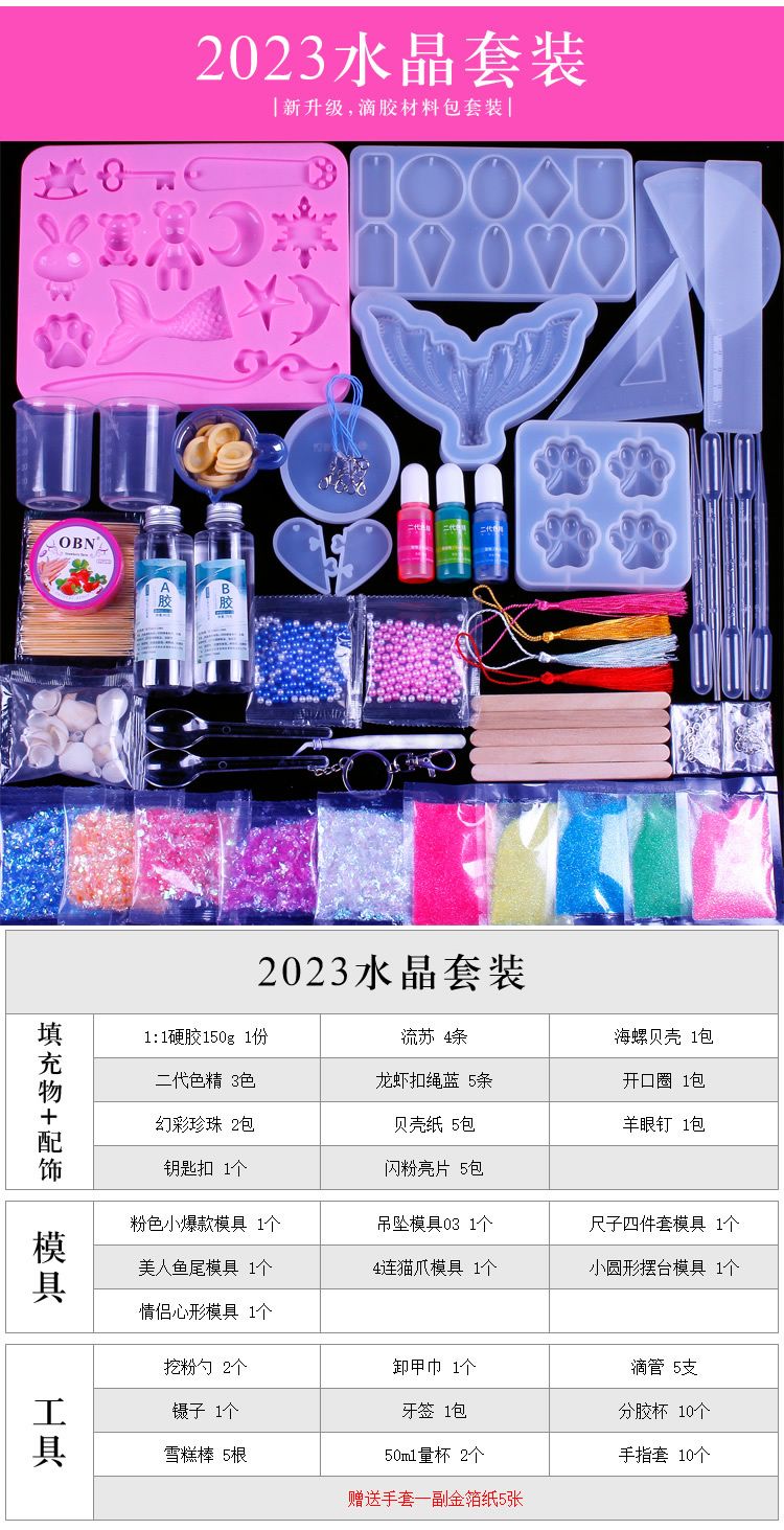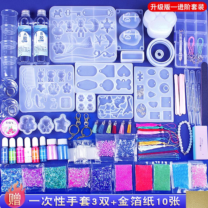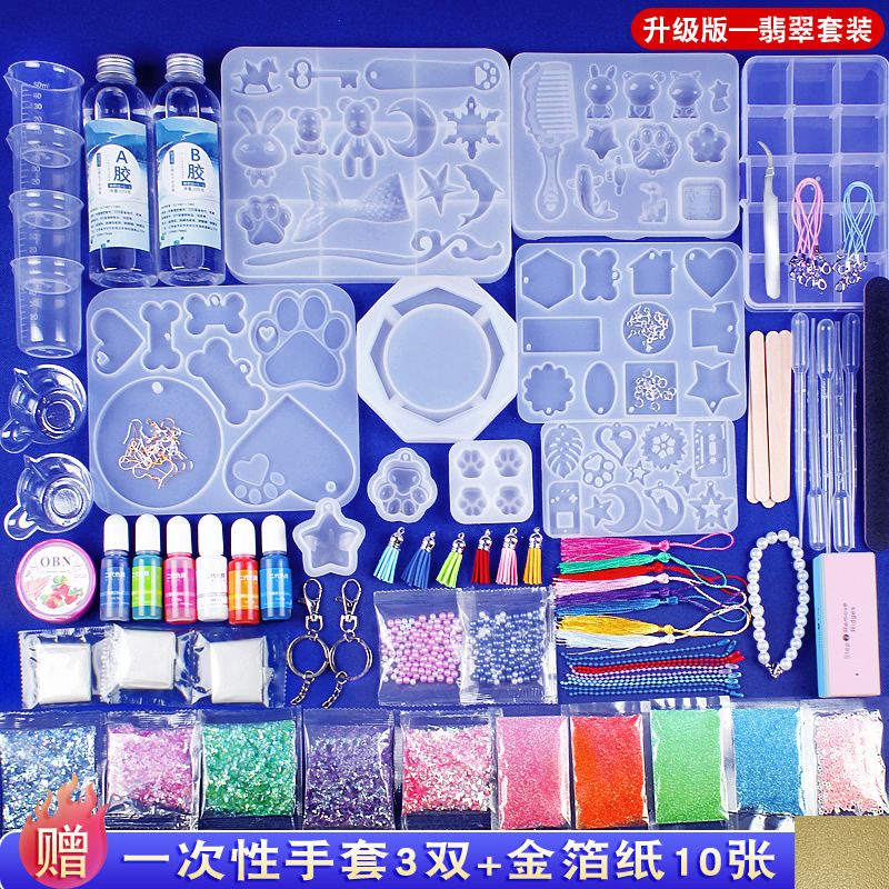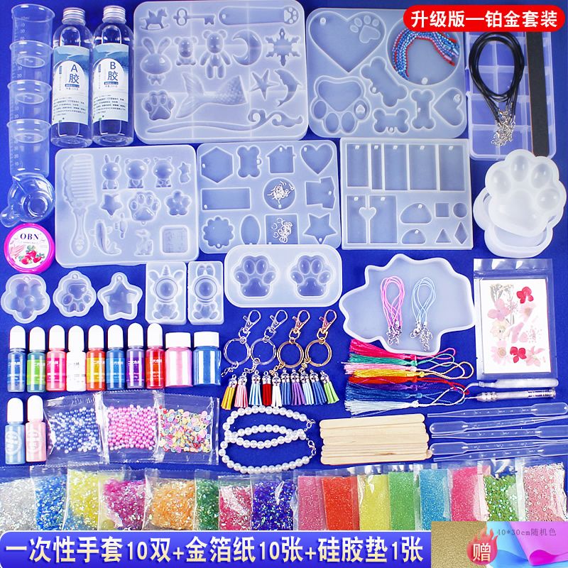 水晶滴胶diy材料包套装手工制作ab树脂胶手镯猫爪烟灰缸硅胶模具