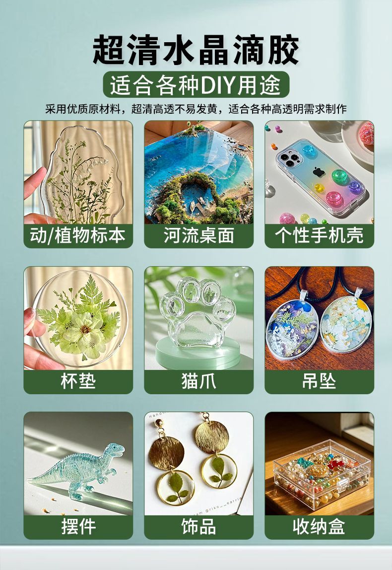 透明树脂AB水晶滴胶手工diy套装环氧树脂快干标本河流桌材料配件